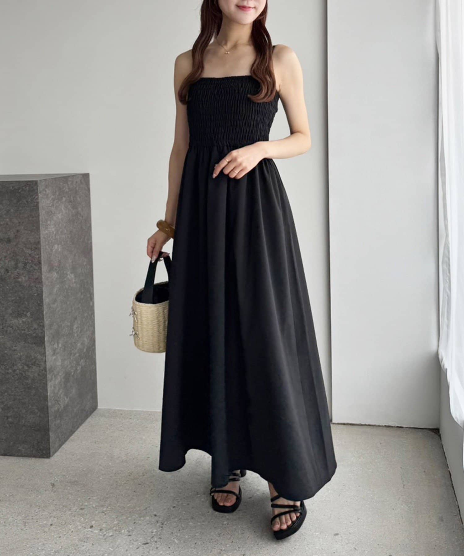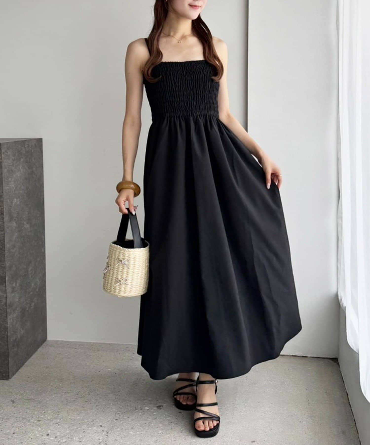 ワンピのみなら、シアートップと合わせた着こなしも◎