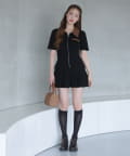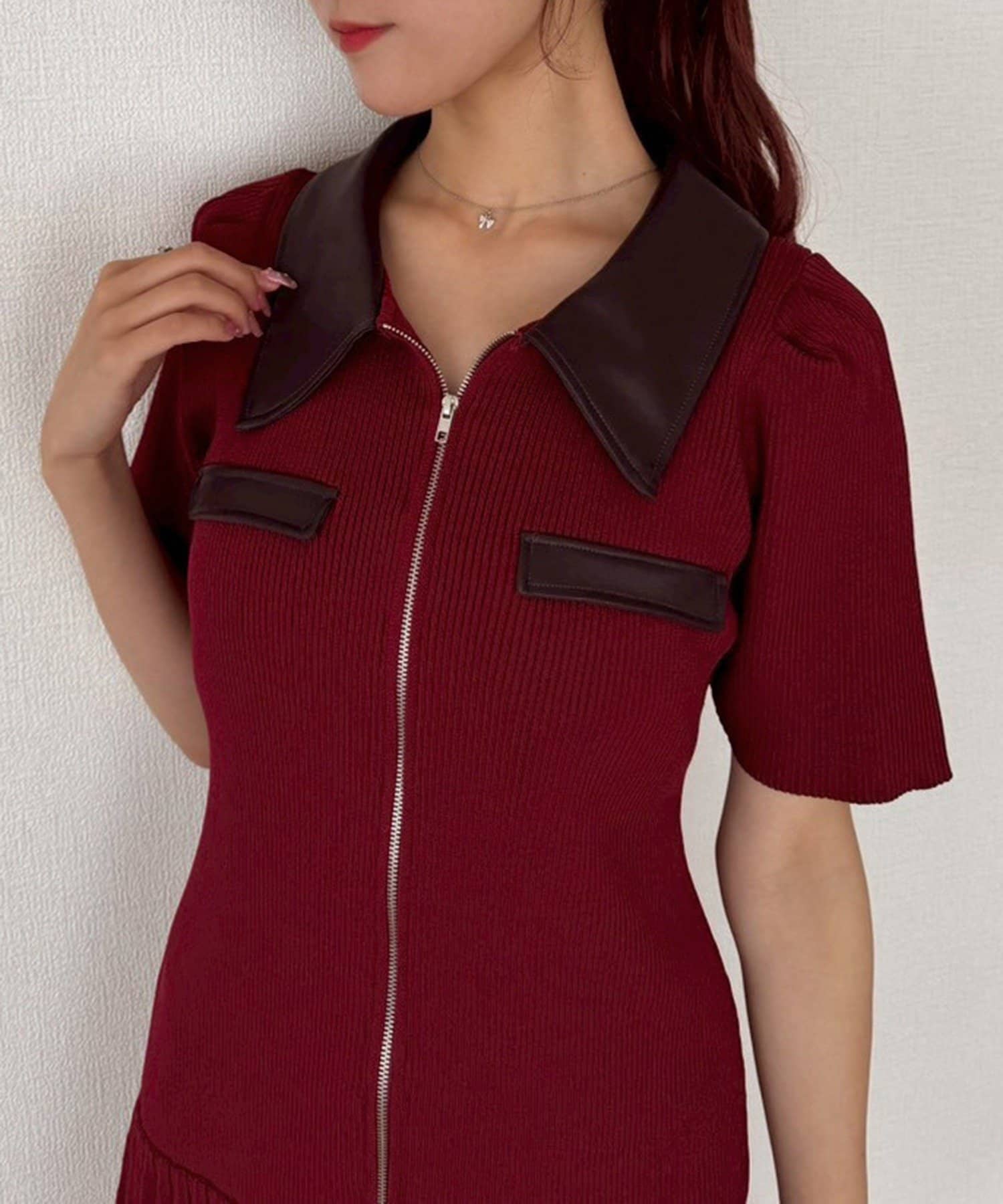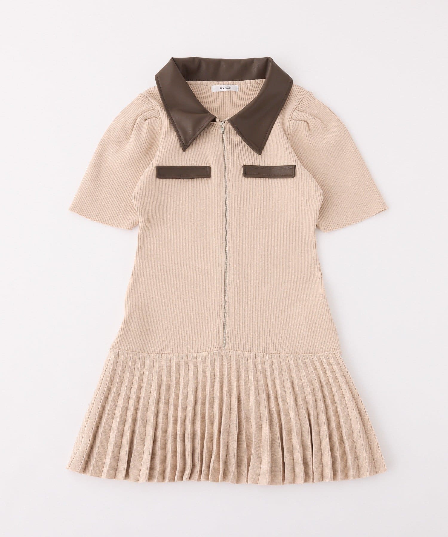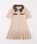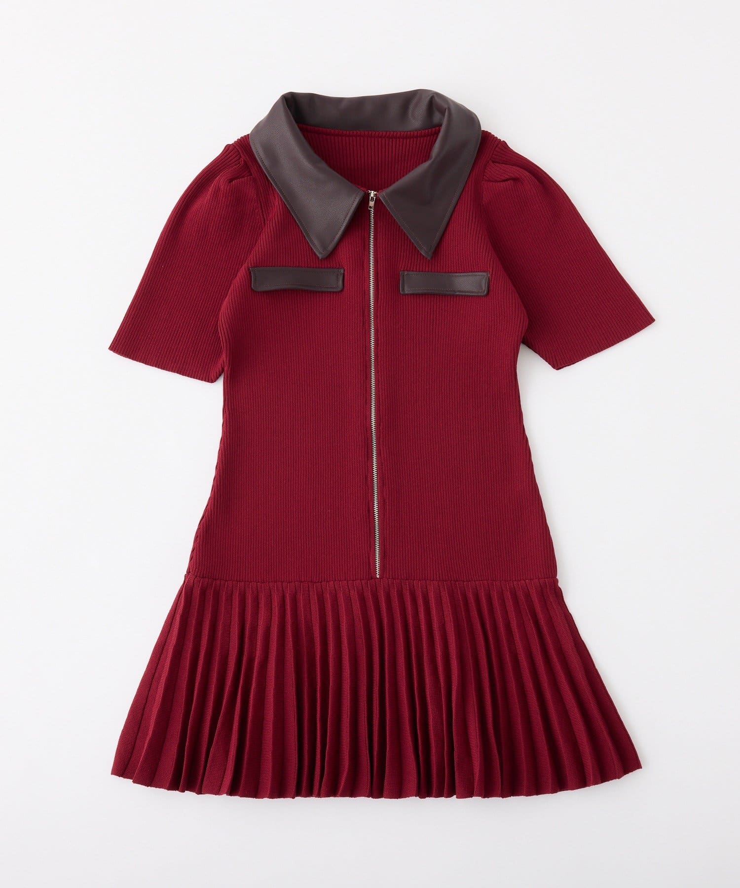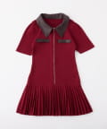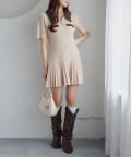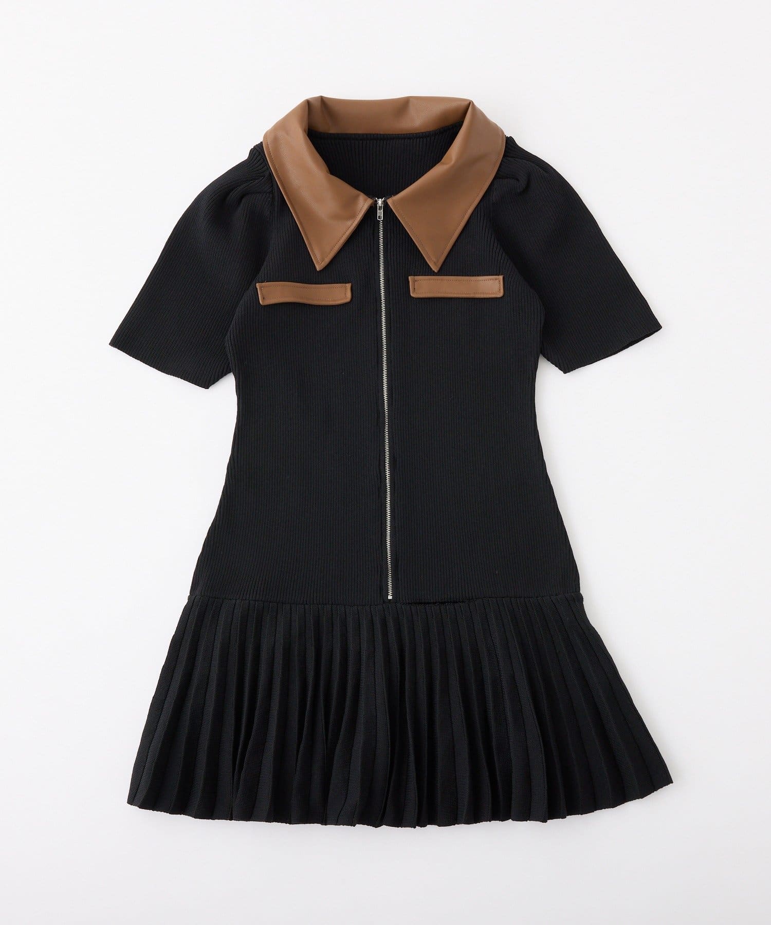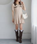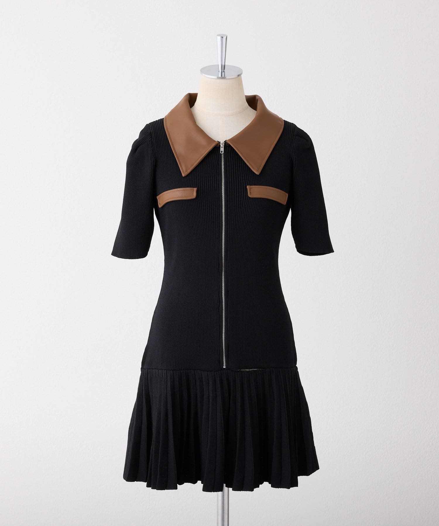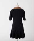合皮衿ニットミニワンピ