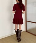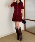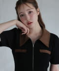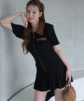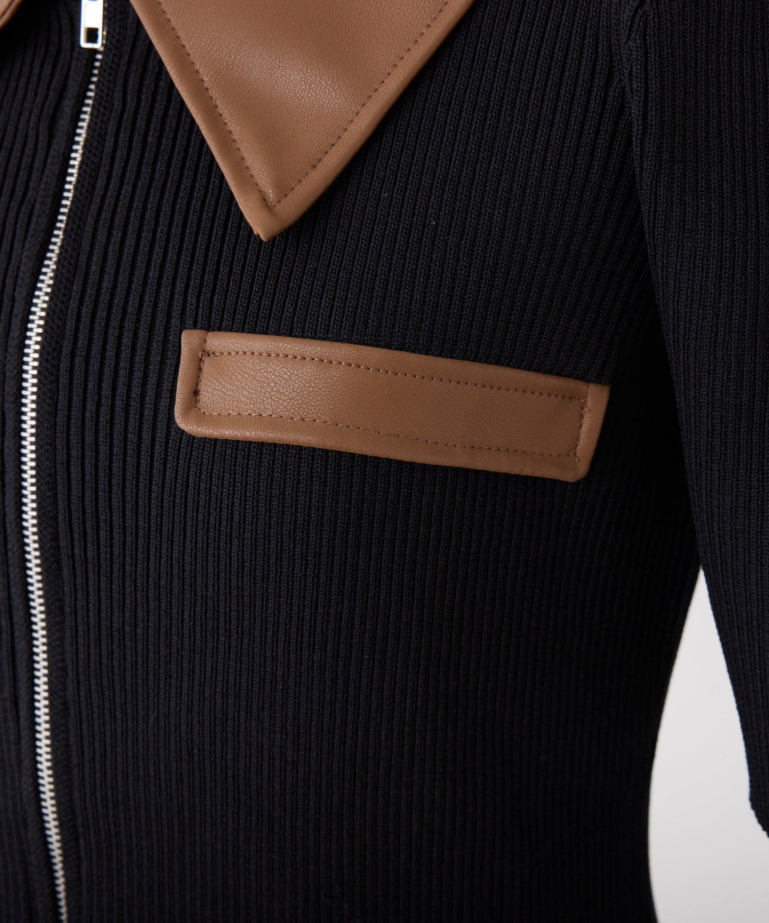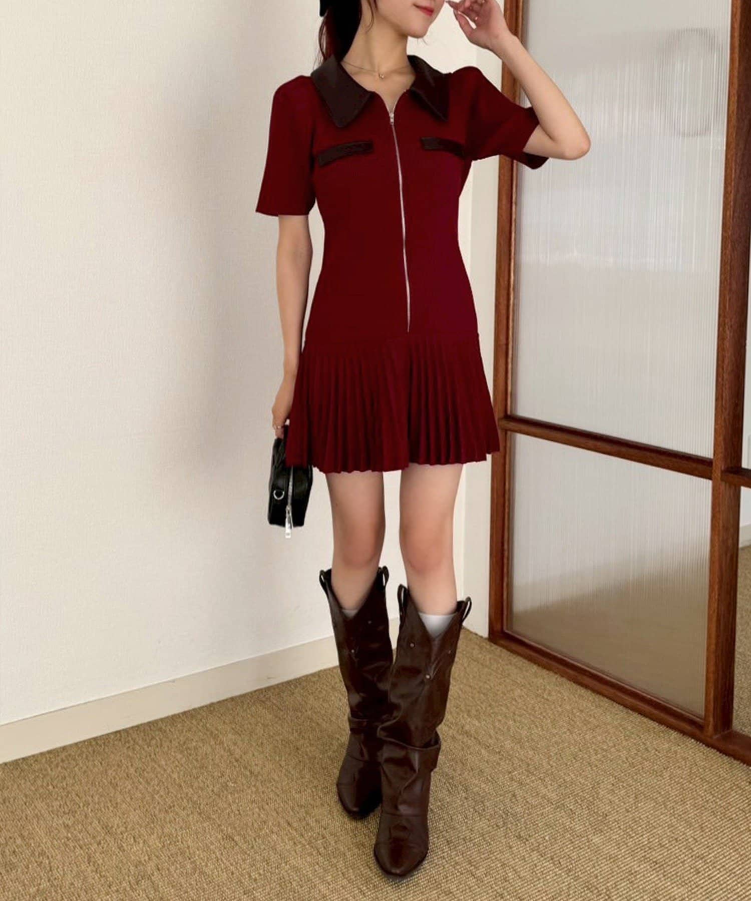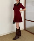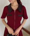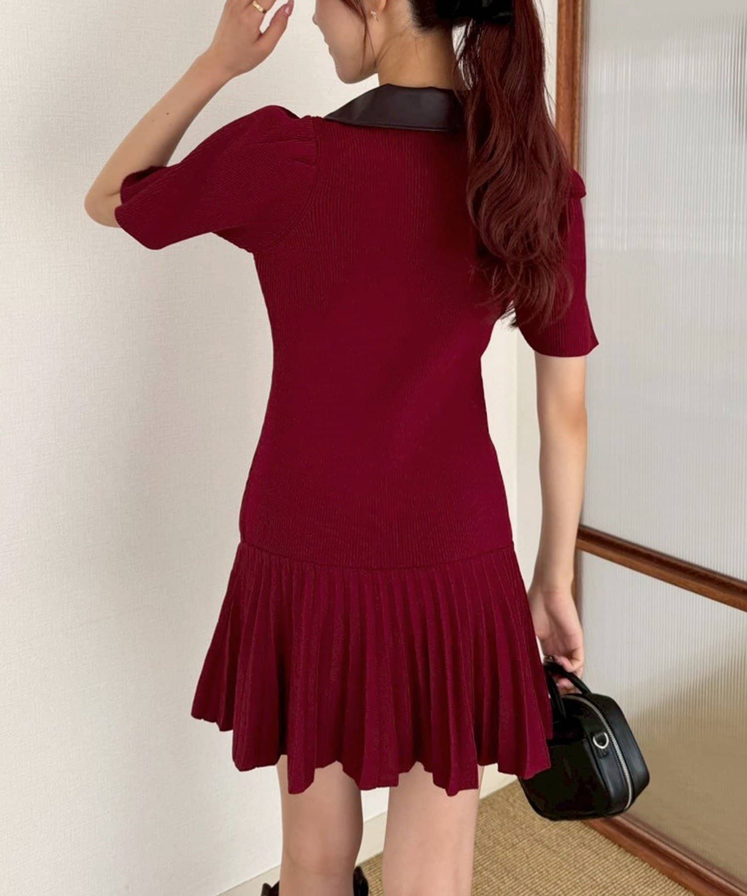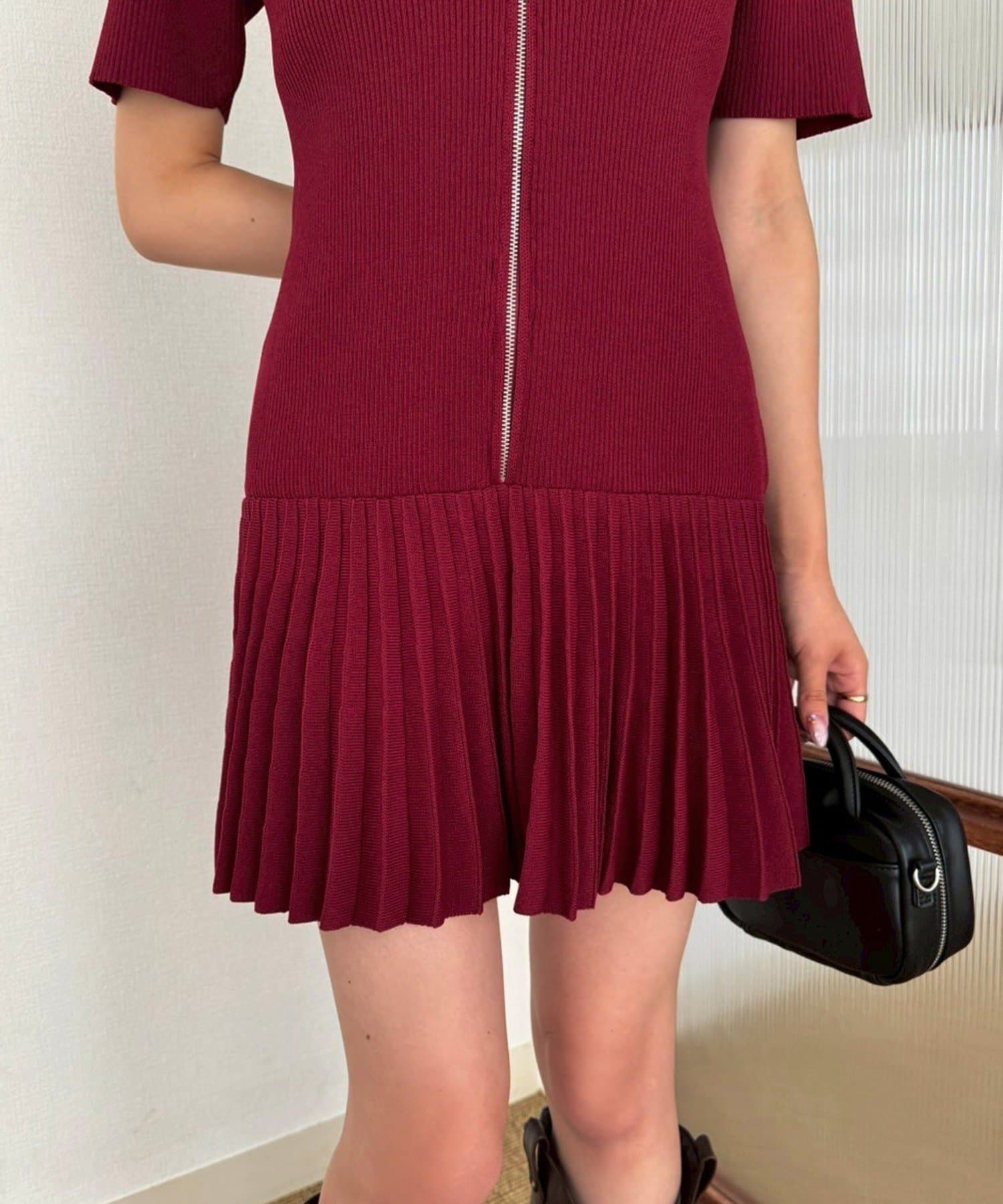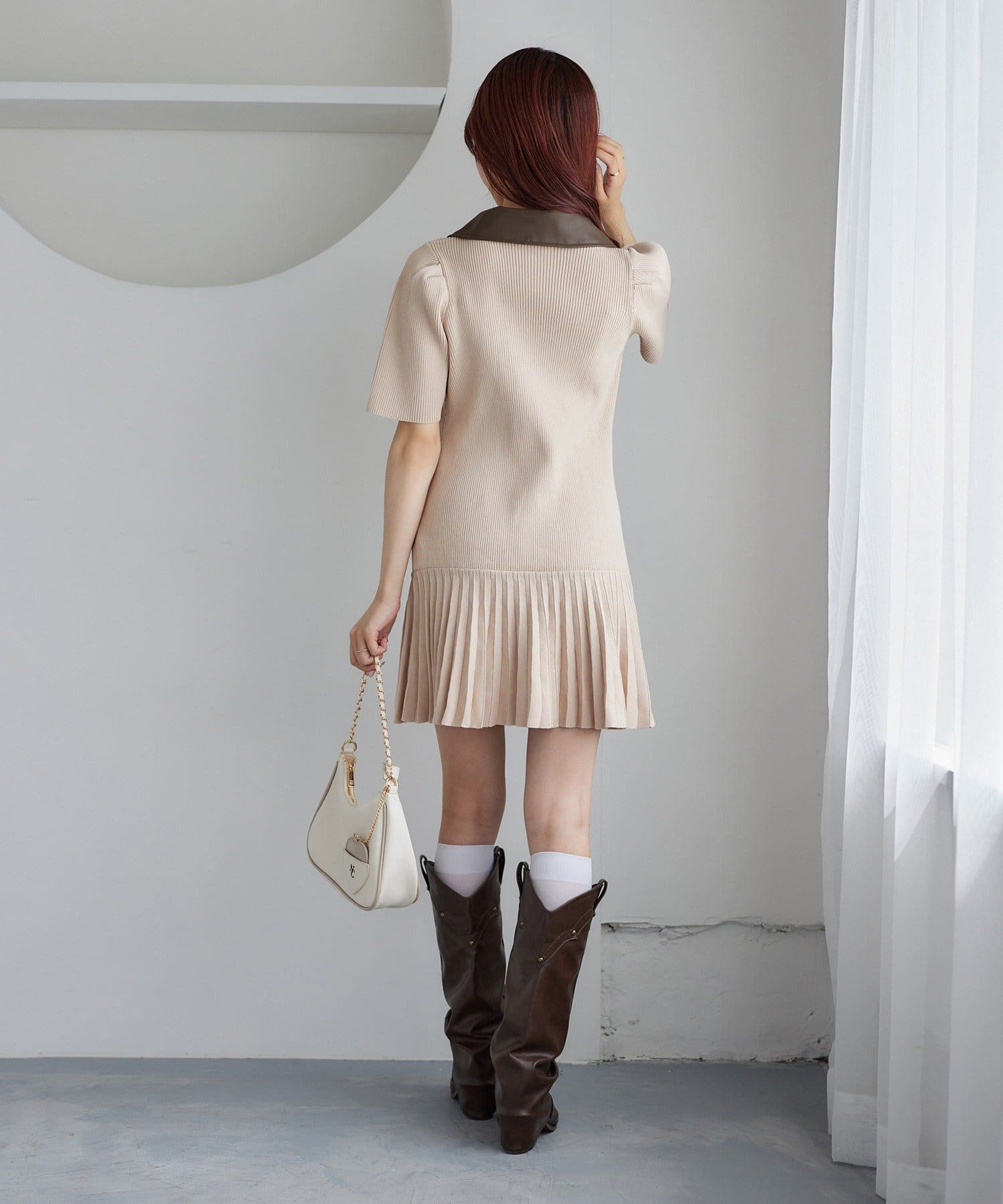合皮衿ニットミニワンピ