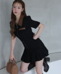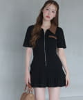ふんわりとしたパフスリーブに、裾には細プリーツをあしらったミニワンピース。