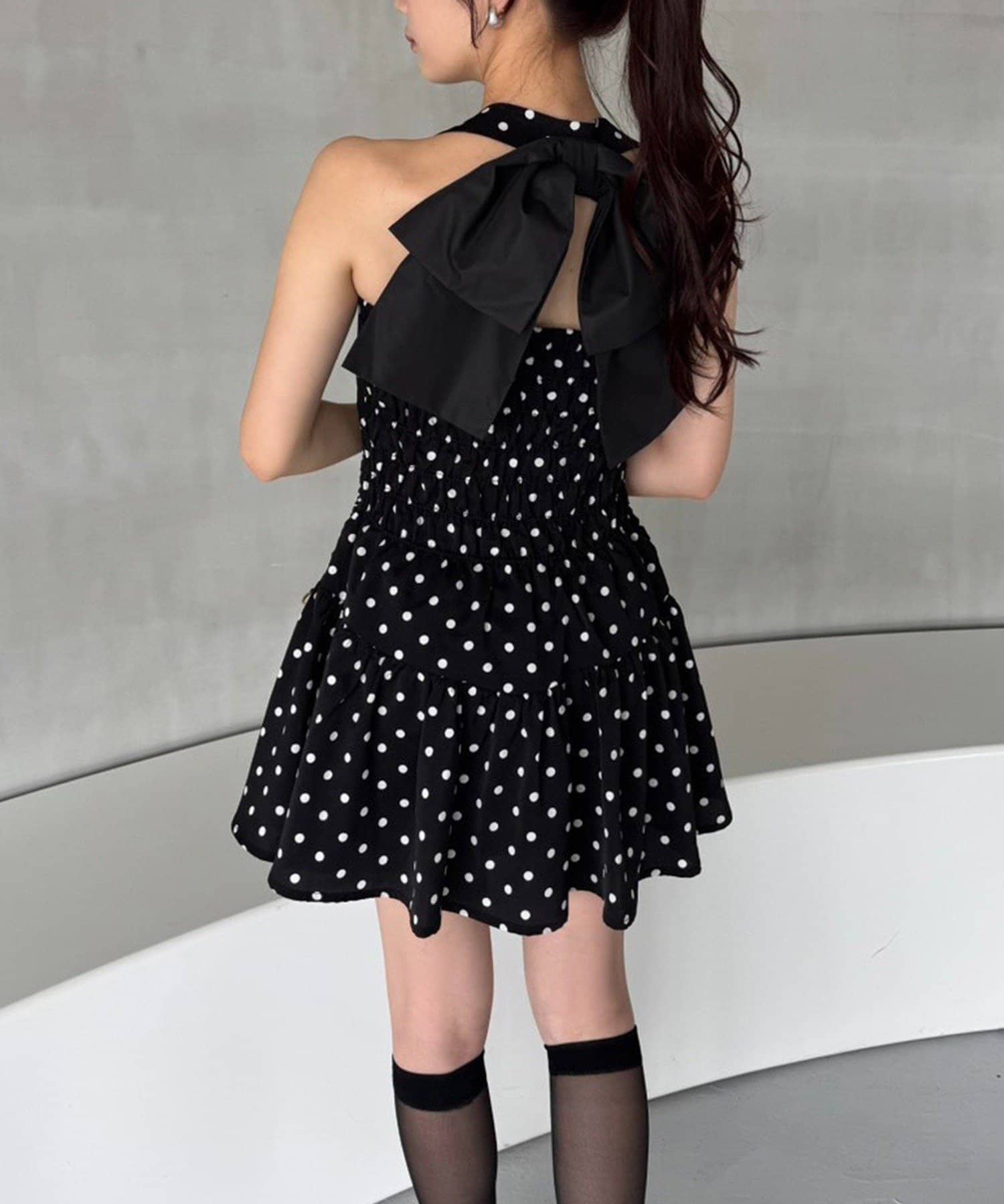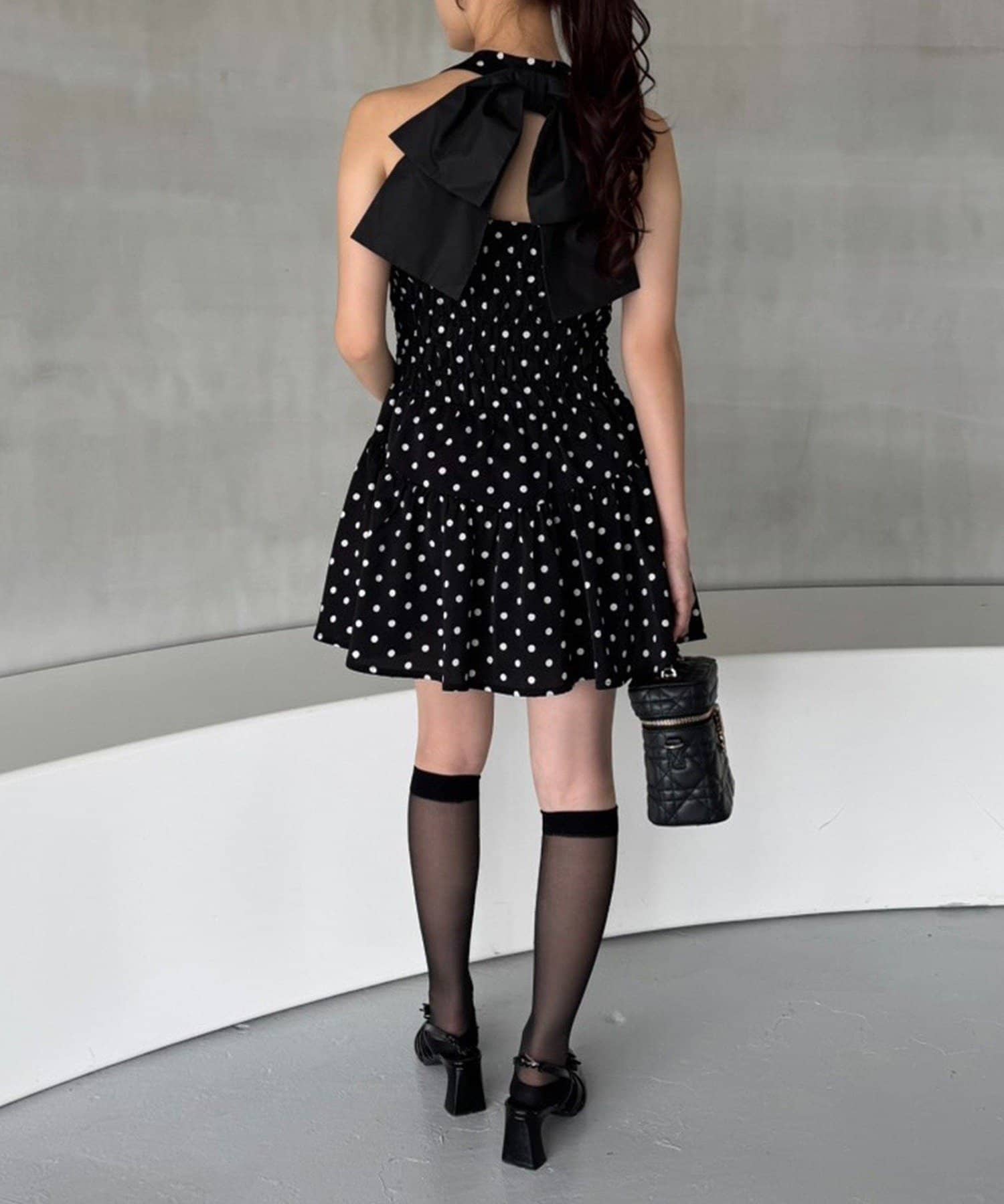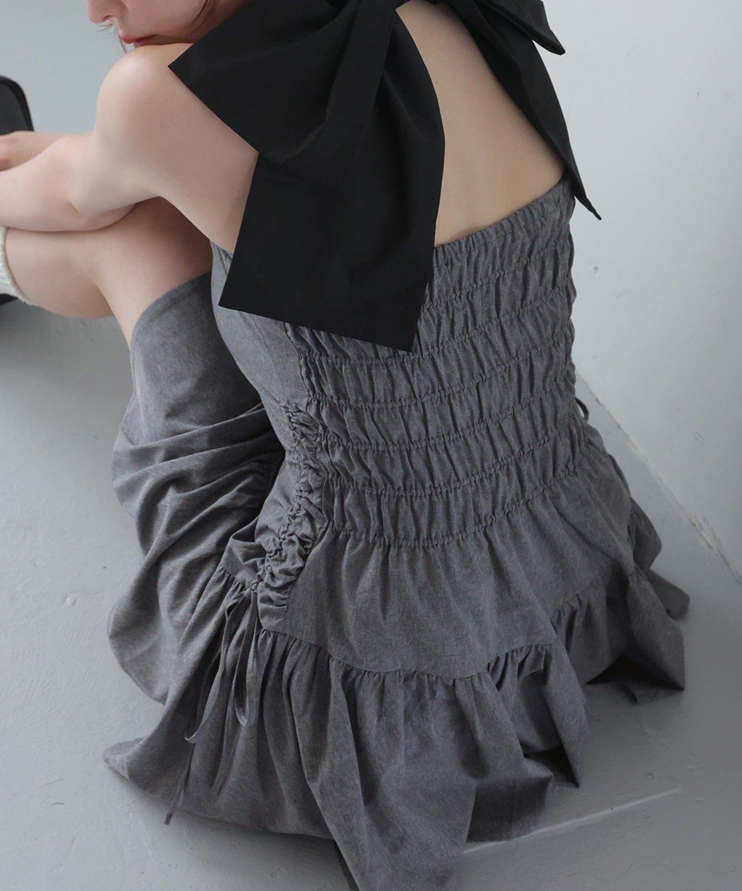 バックスタイルには大きめのリボンが施され、コーデの主役になる華やかさをプラス◎