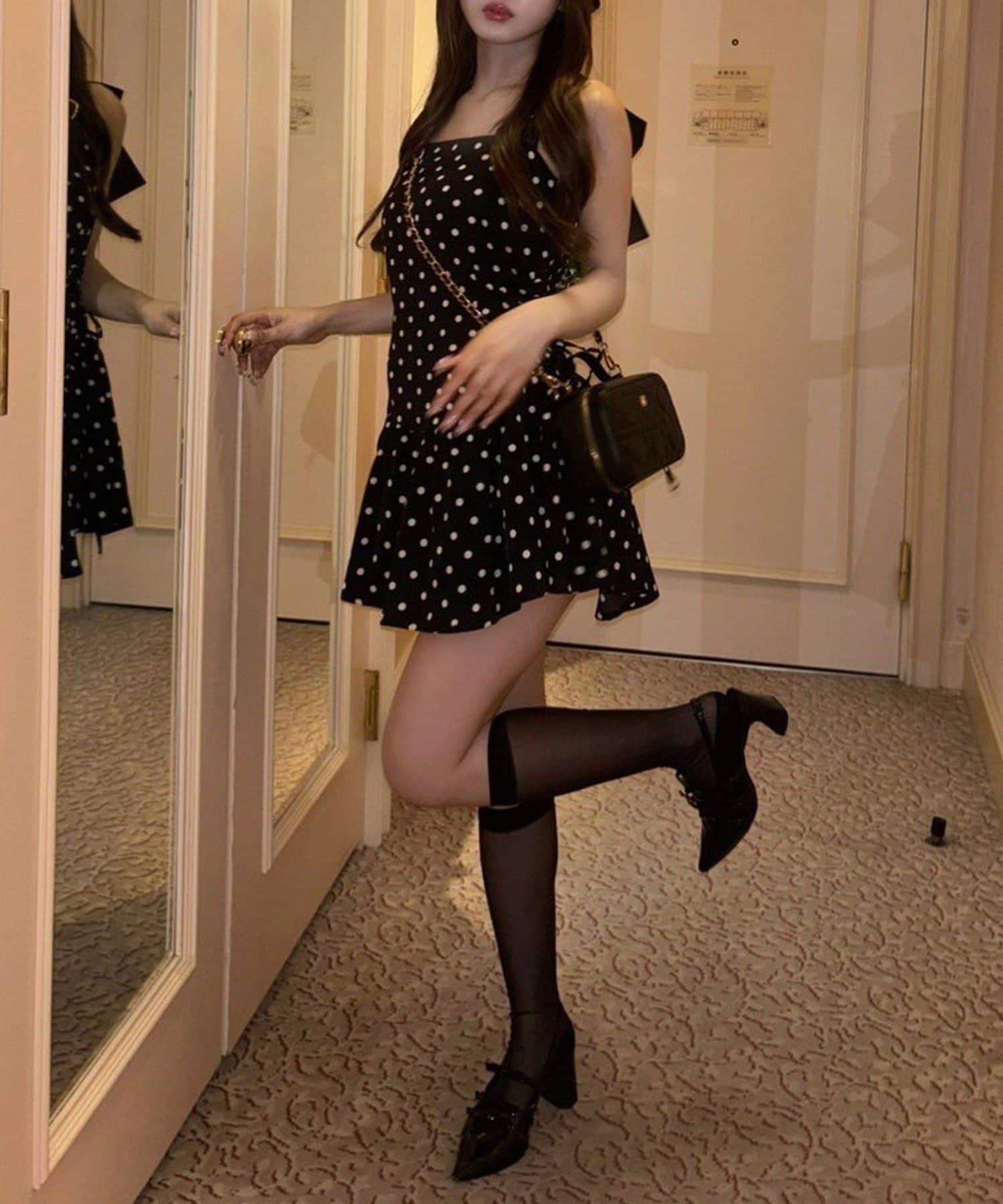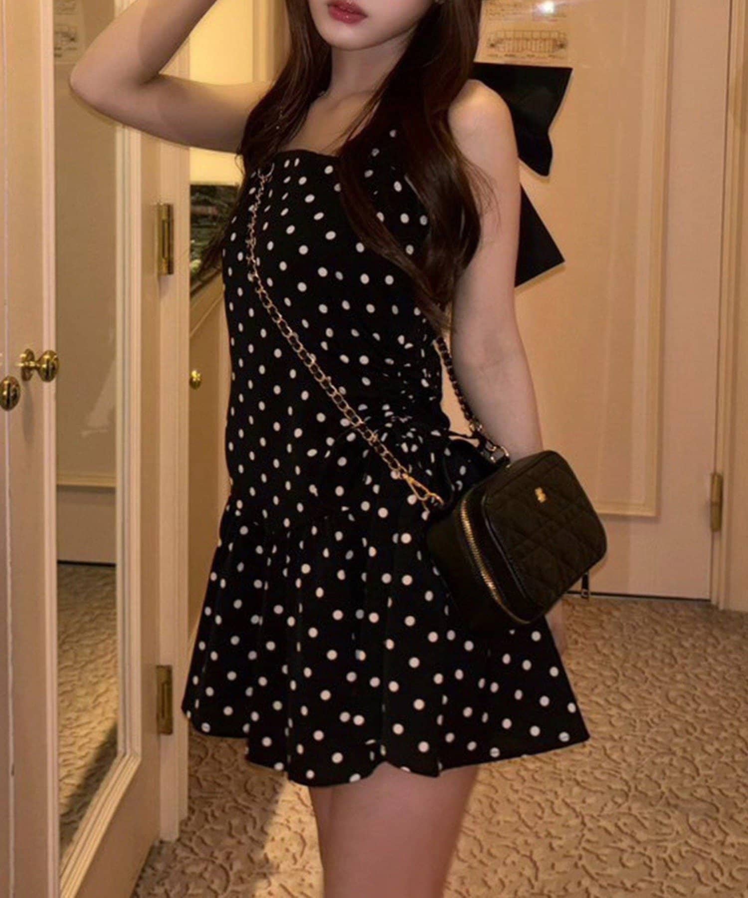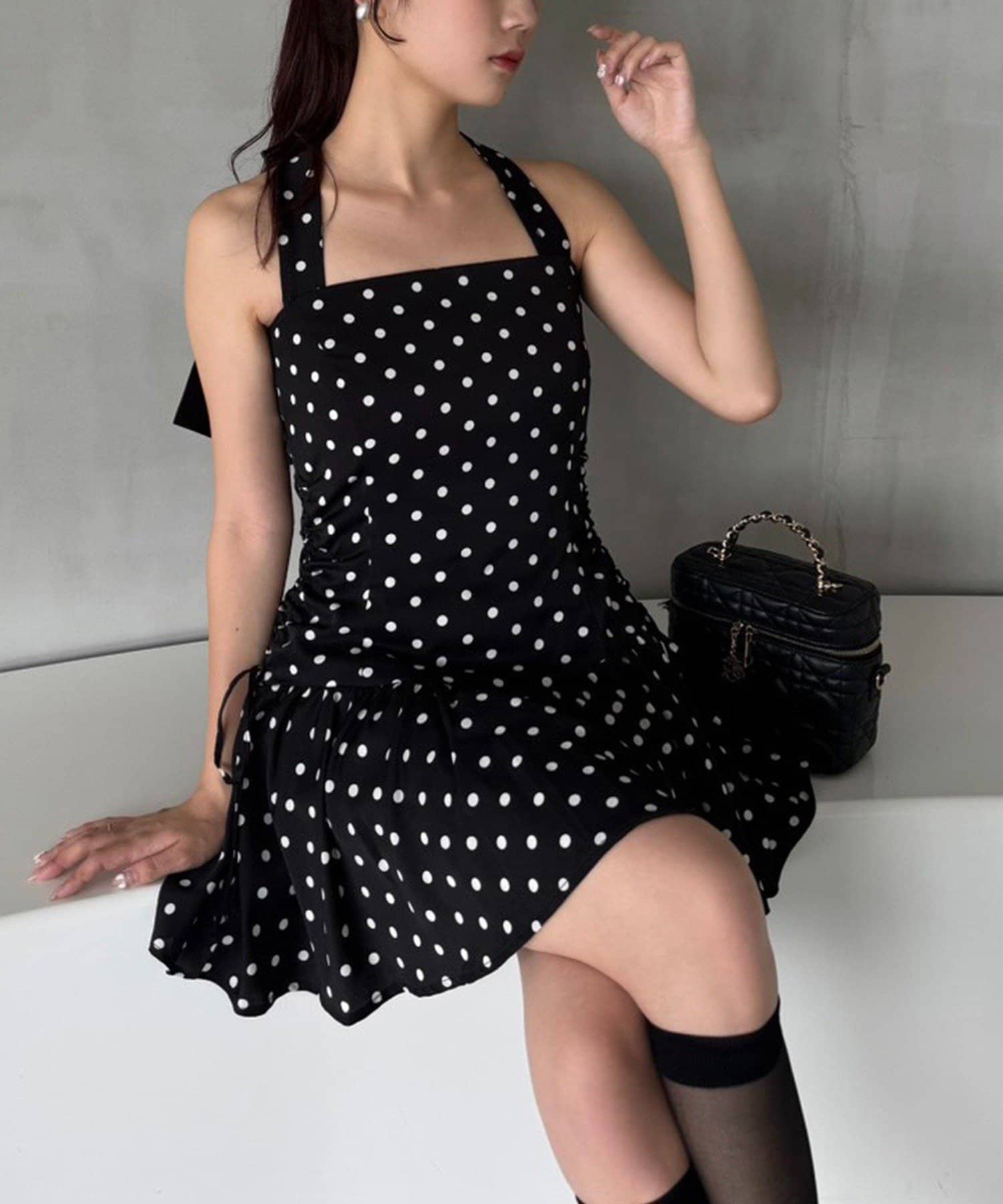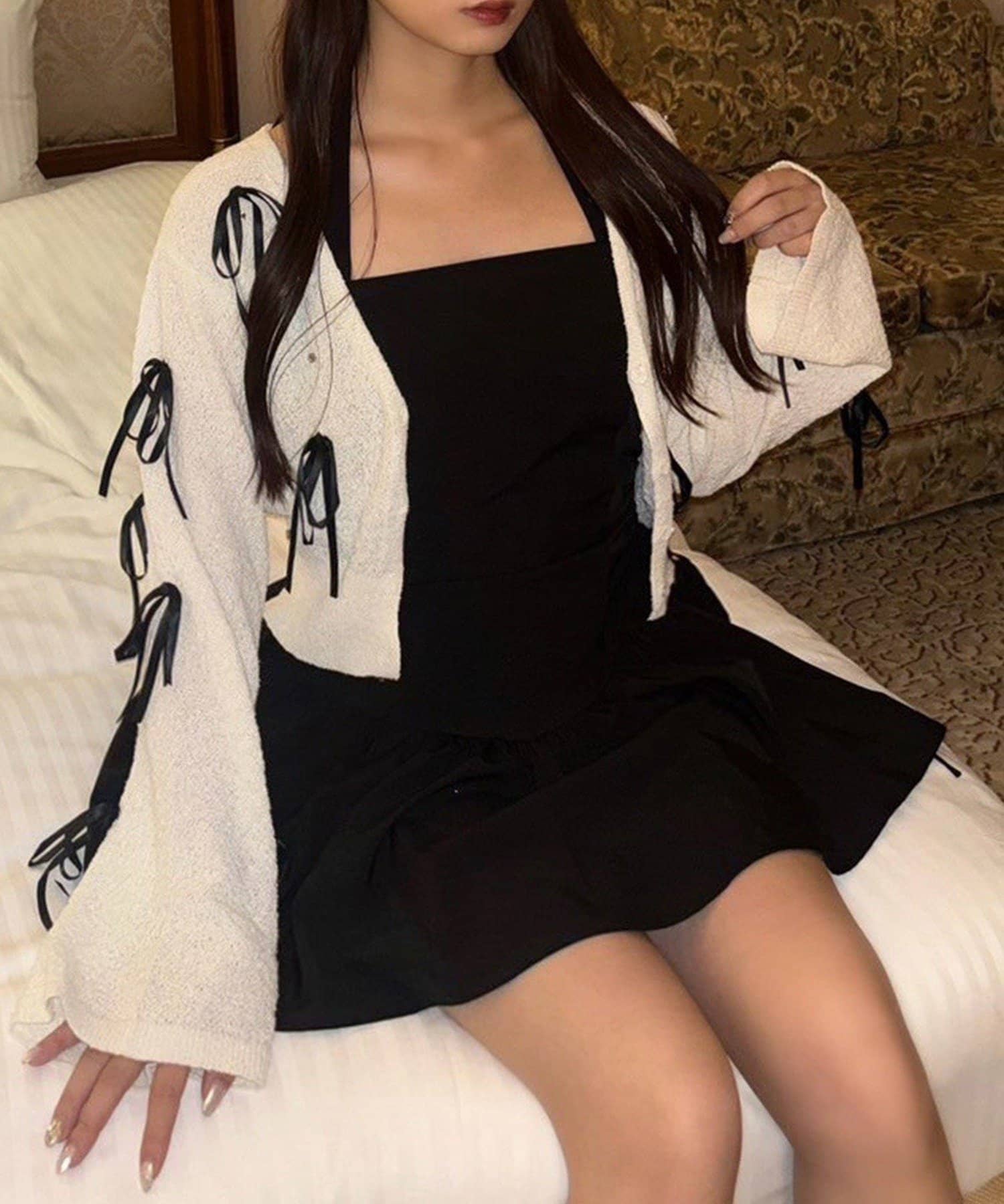 バックスタイルには大きめのリボンが施され、コーデの主役になる華やかさをプラス◎