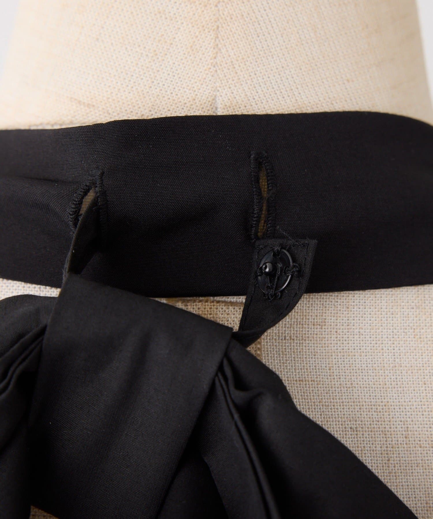 素材 【チャコール・ブラック】表地:ポリエステル92% ポリウレタン8% 裏地:ポリエステル100% リボン部分:ポリエステル80% コットン20%