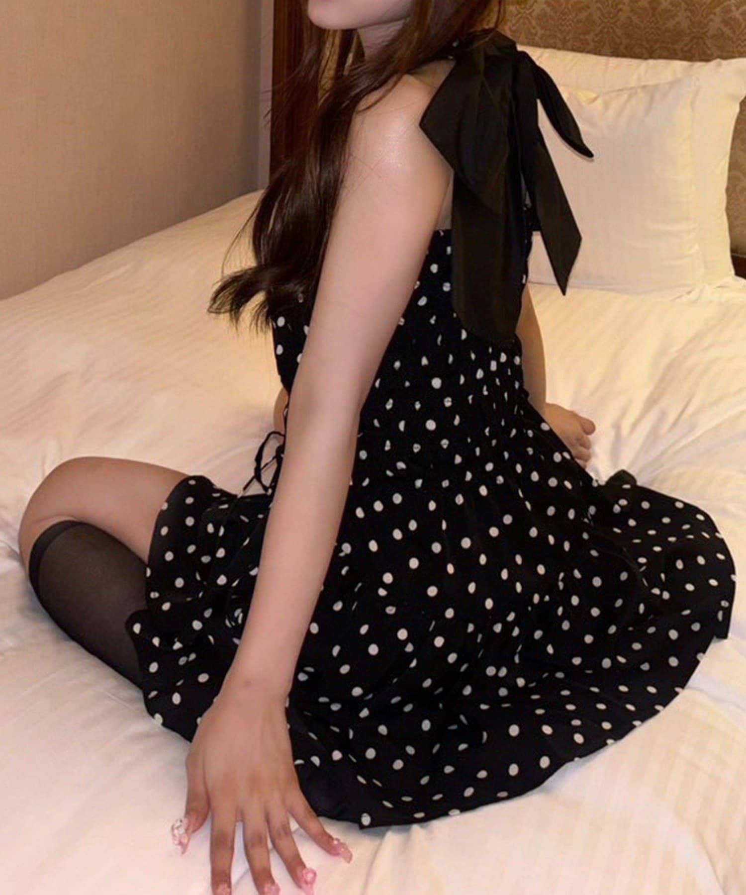 【ドット】表地/裏地:ポリエステル100% リボン部分:ポリエステル80% コットン20%