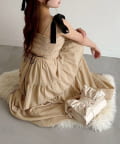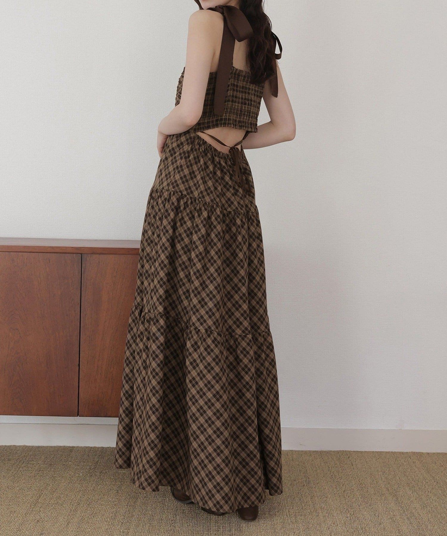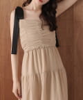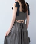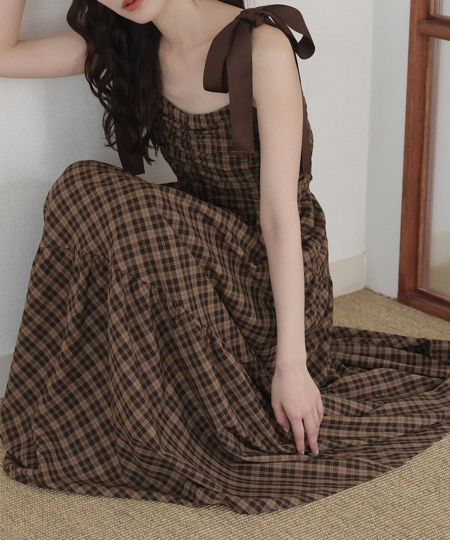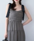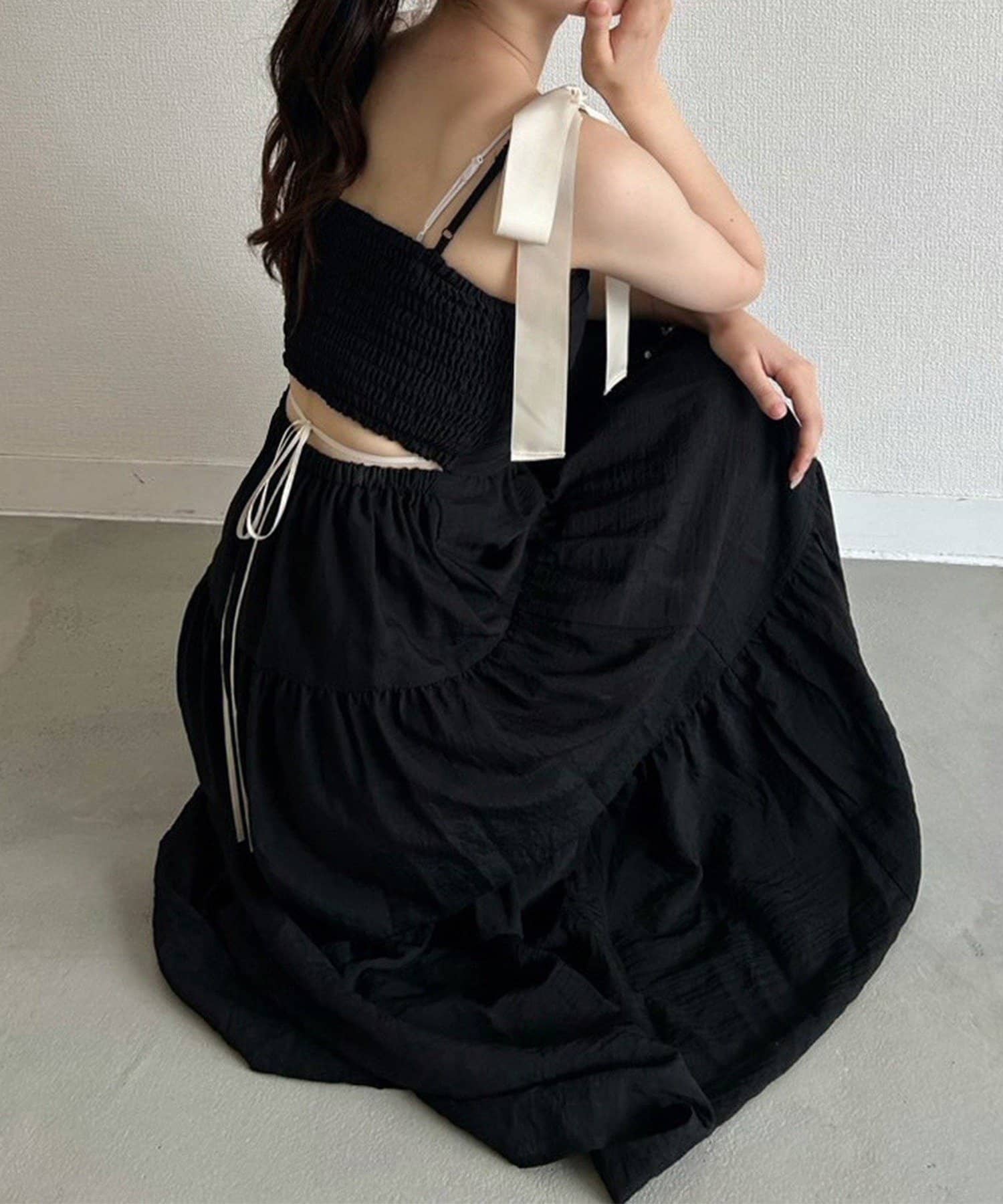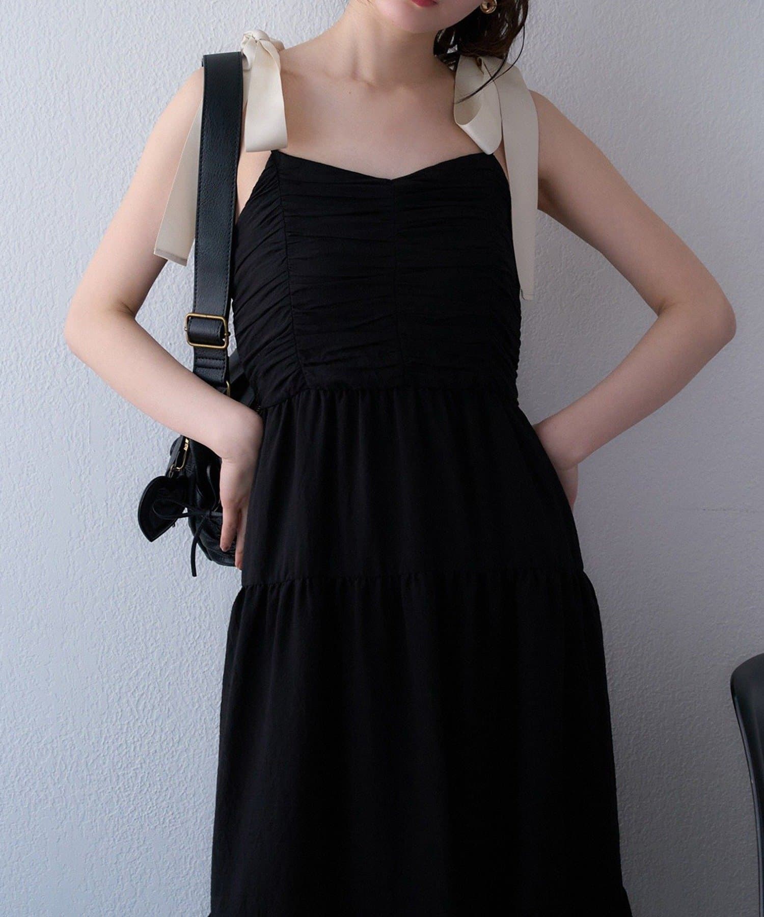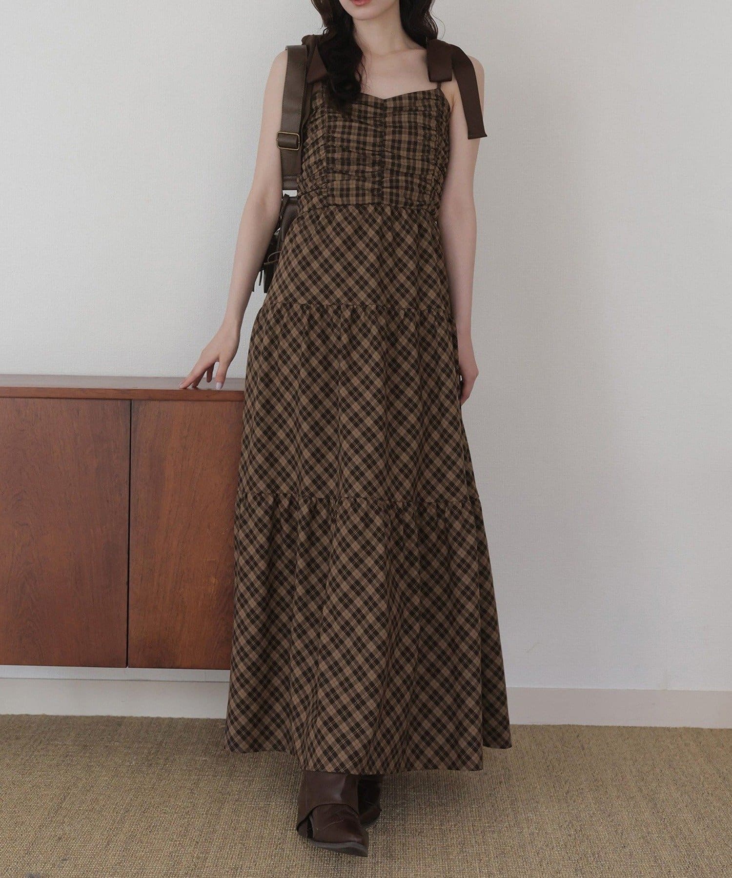 肩のリボンデザインがポイントのティアードロングワンピース。