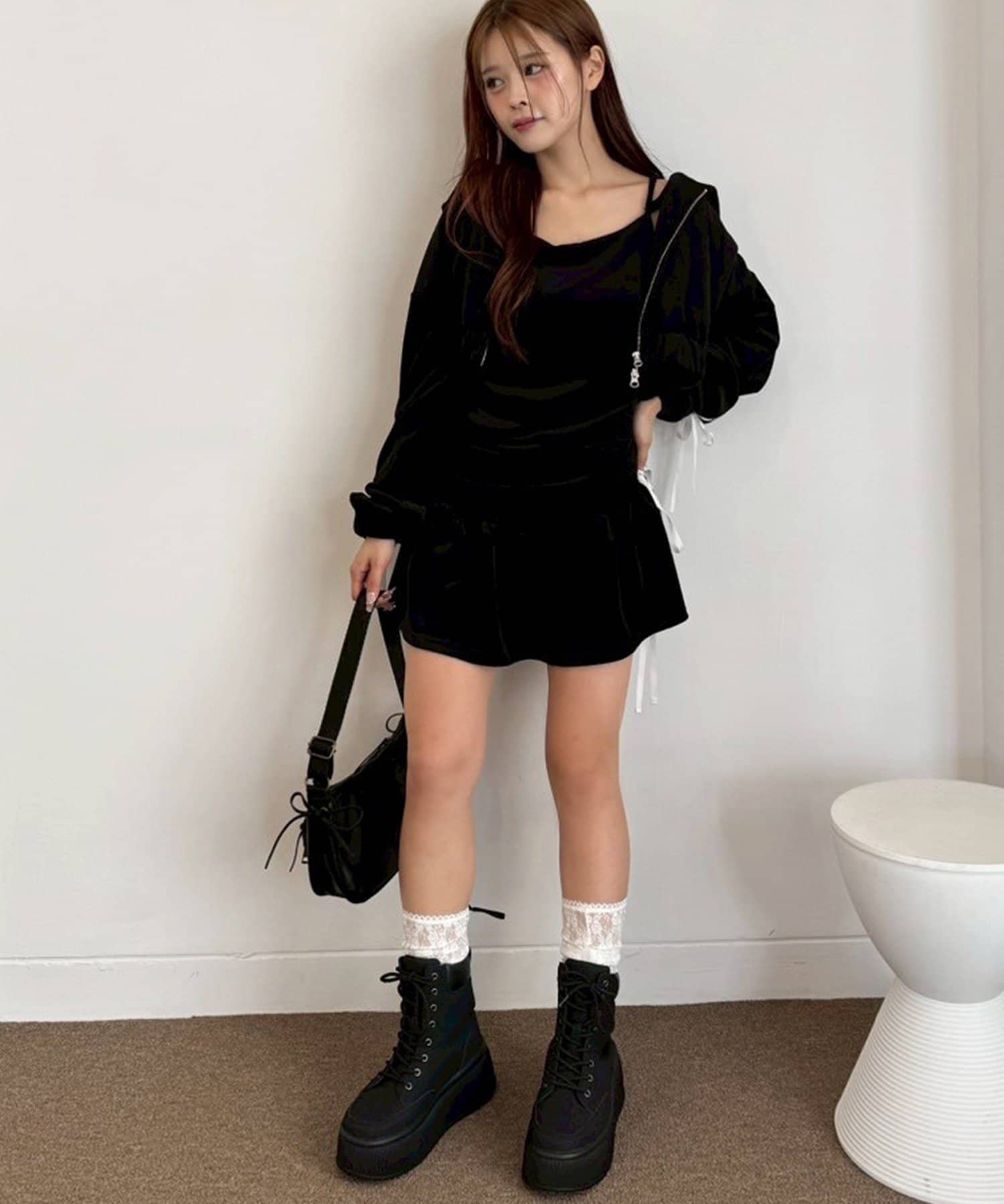 ガーリーに着こなすなら下にショートパンツを穿いて、着るのがオススメです。