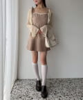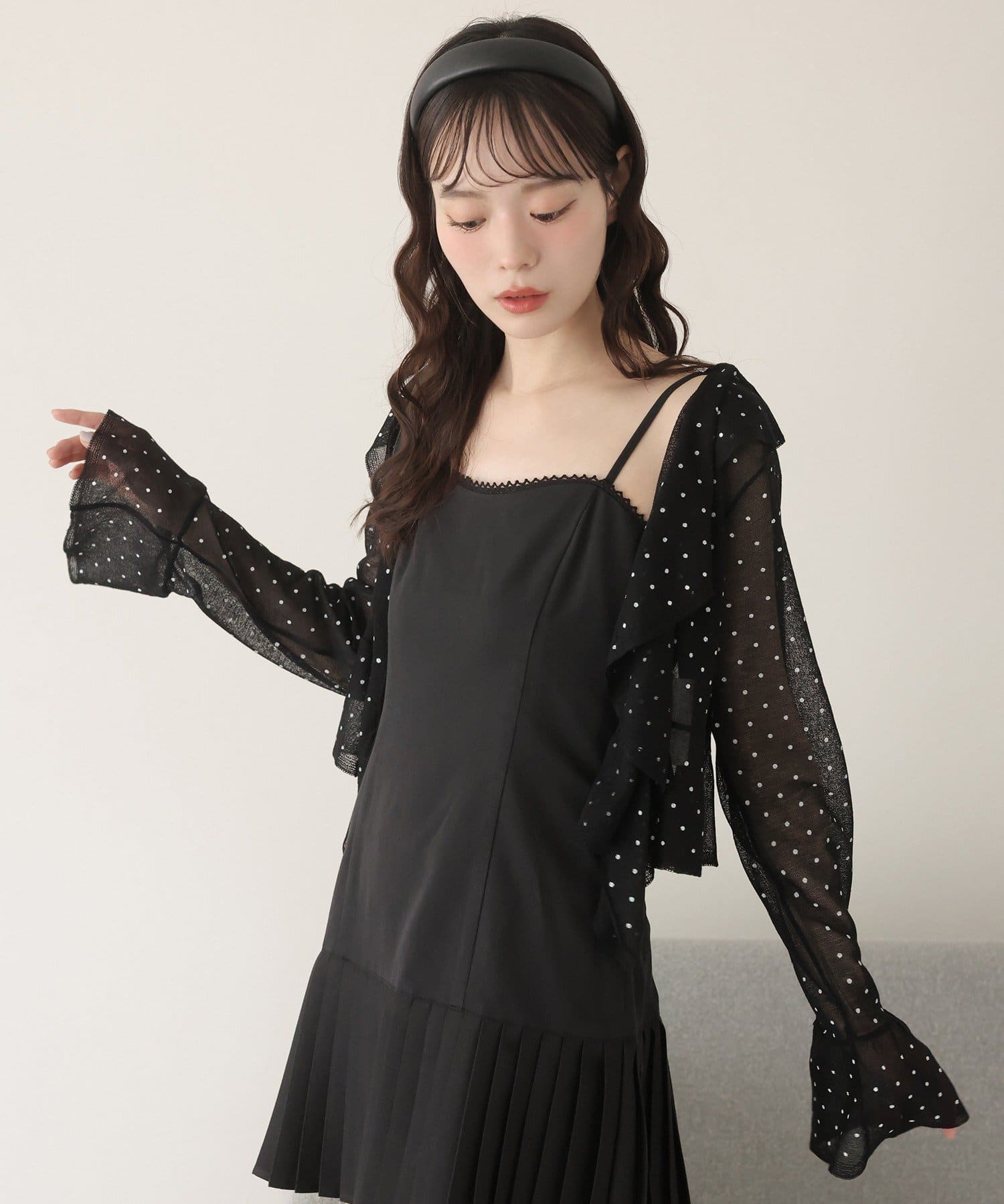 ショート丈のカーディガンやボレロを羽織って甘めにまとめるのが王道スタイル。