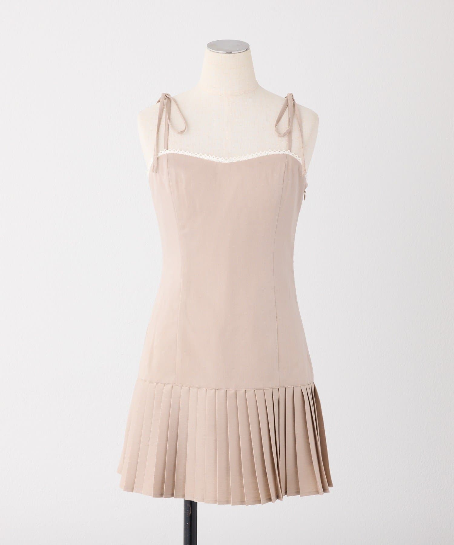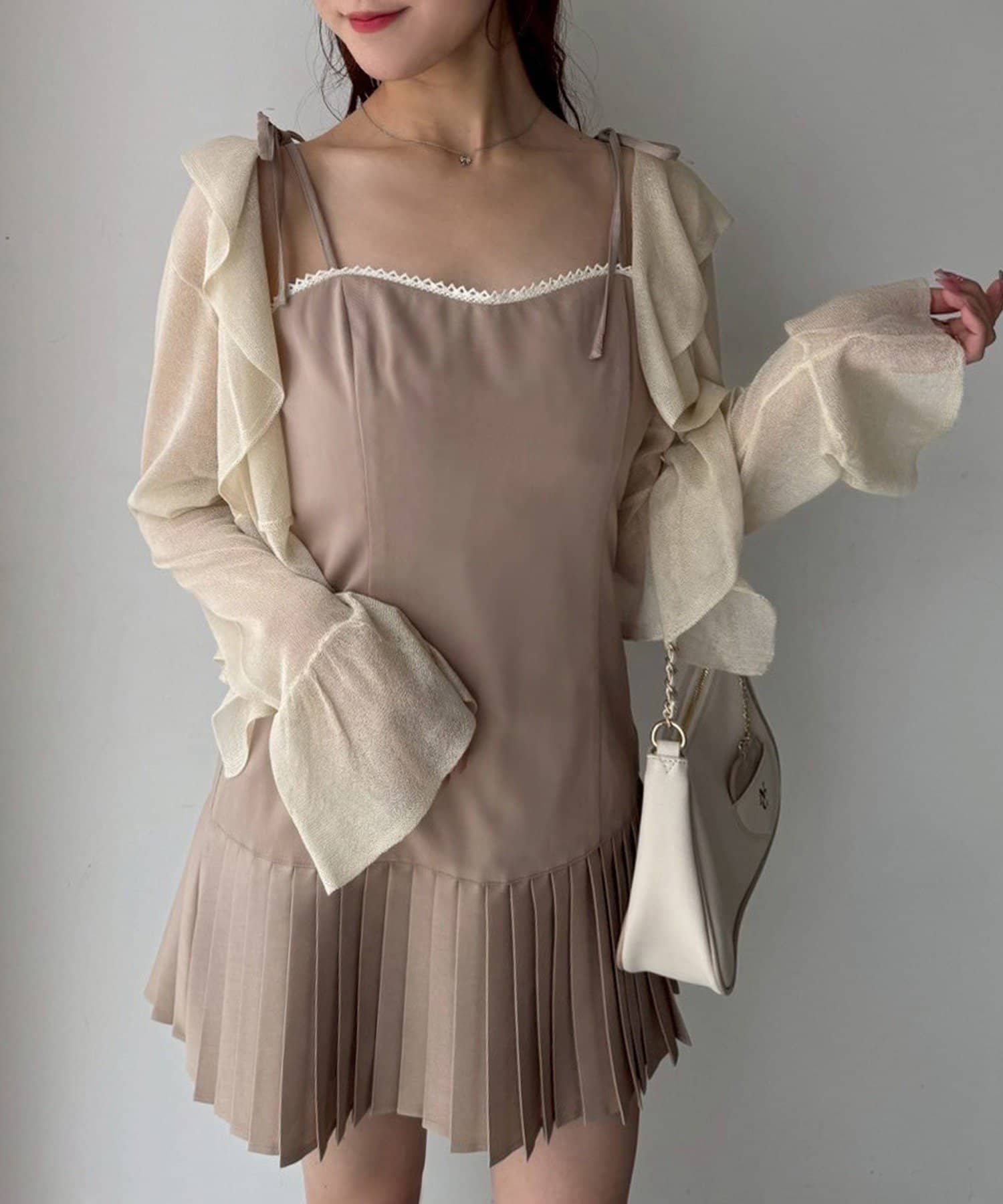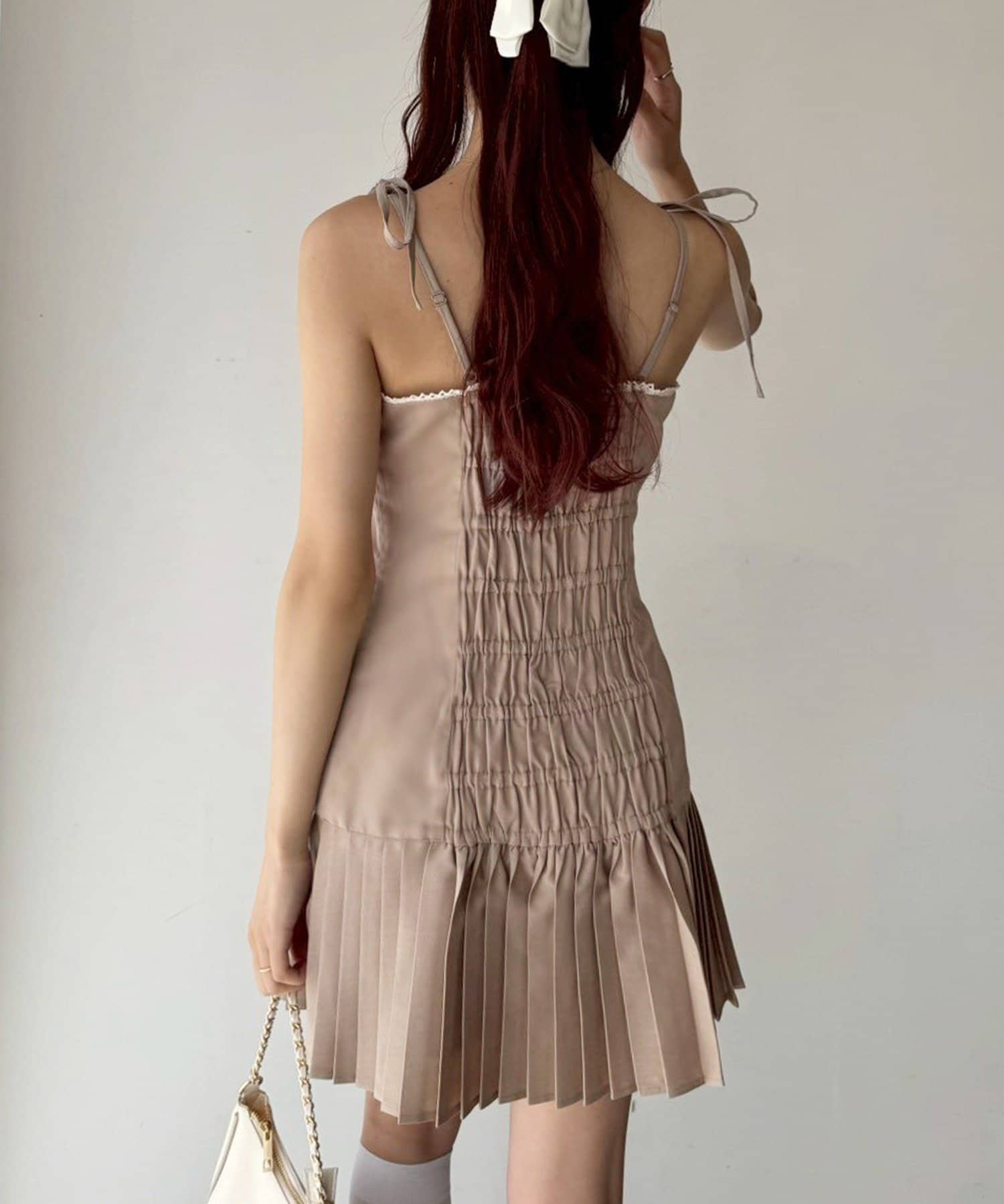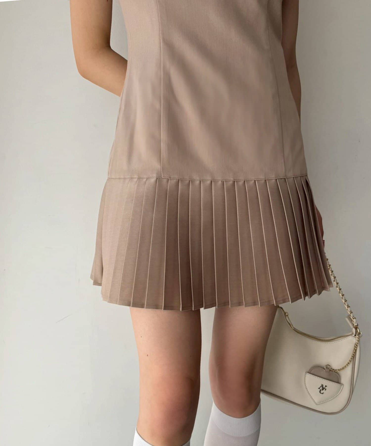 裾に細かいプリーツを施した、動くたびにふんわり揺れるミニワンピース。