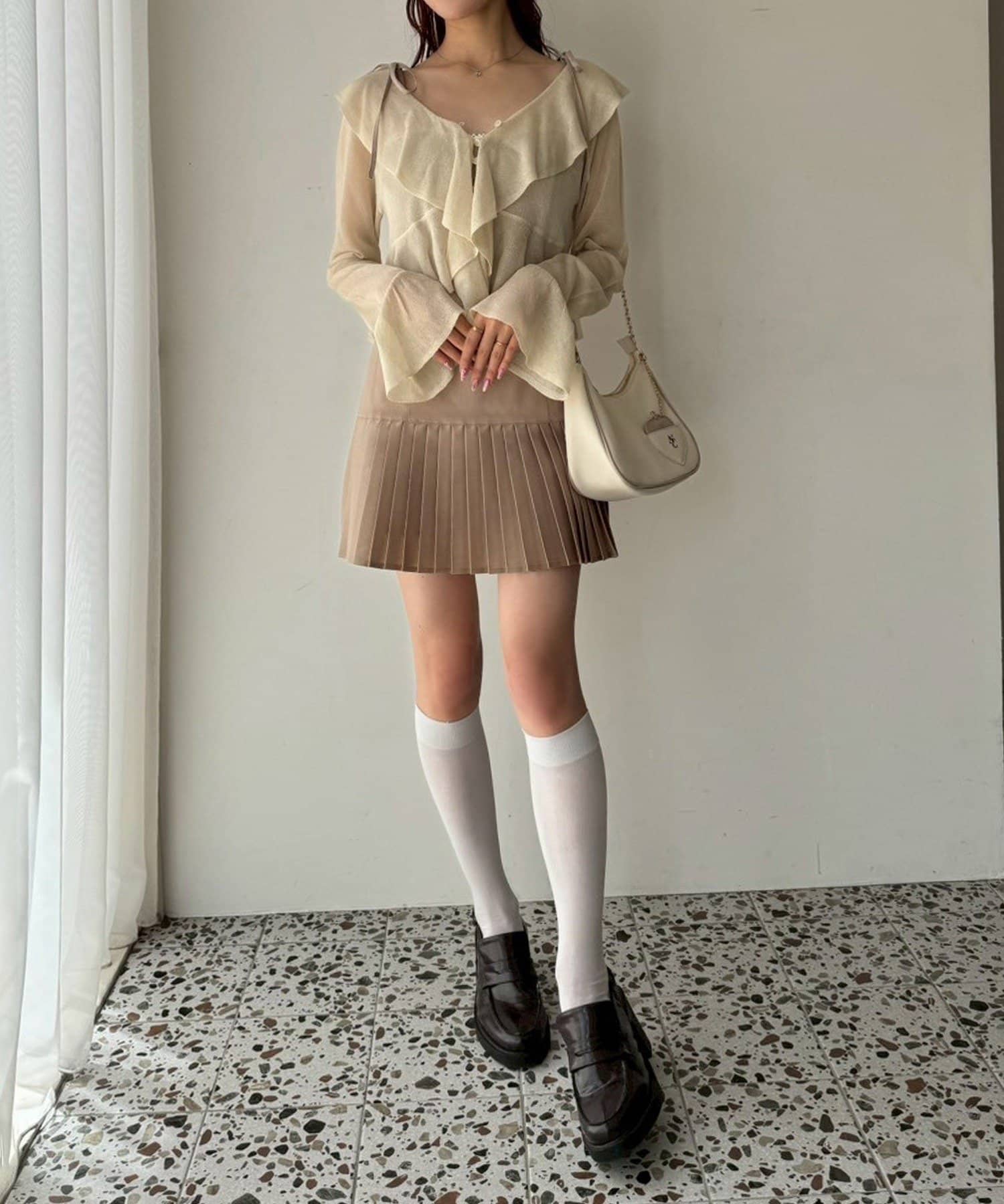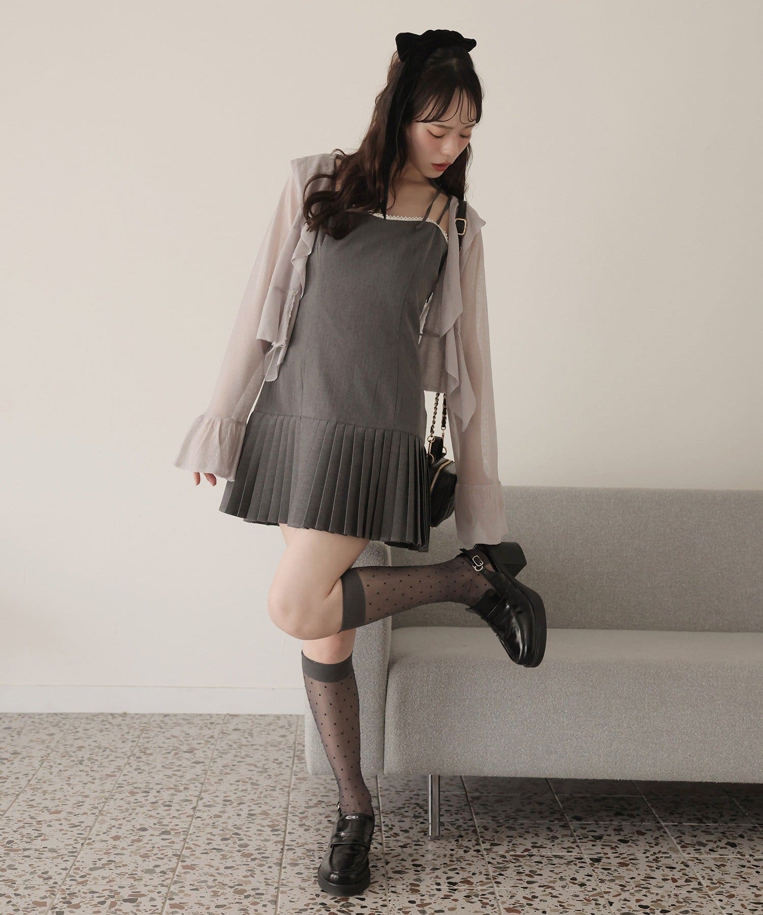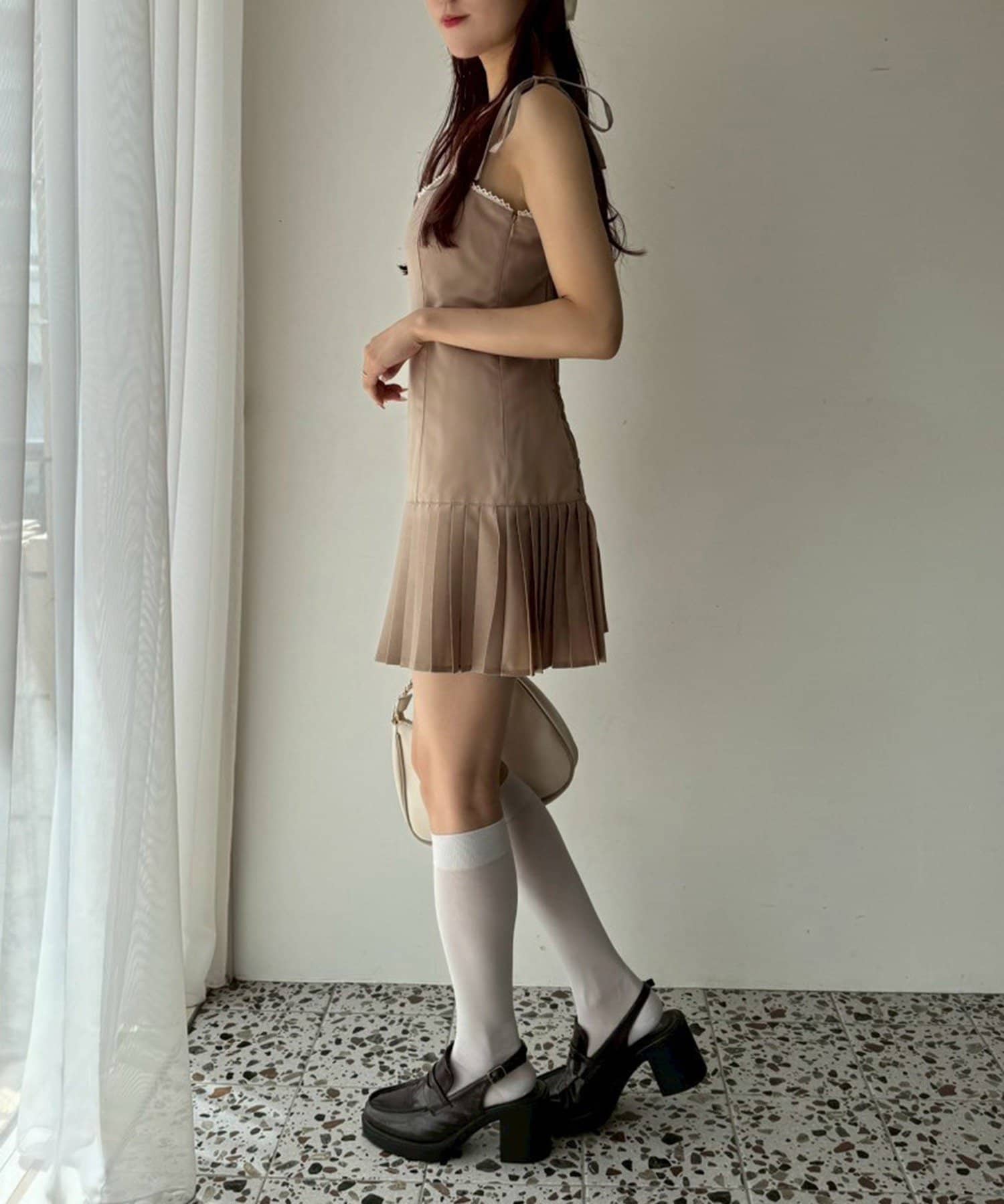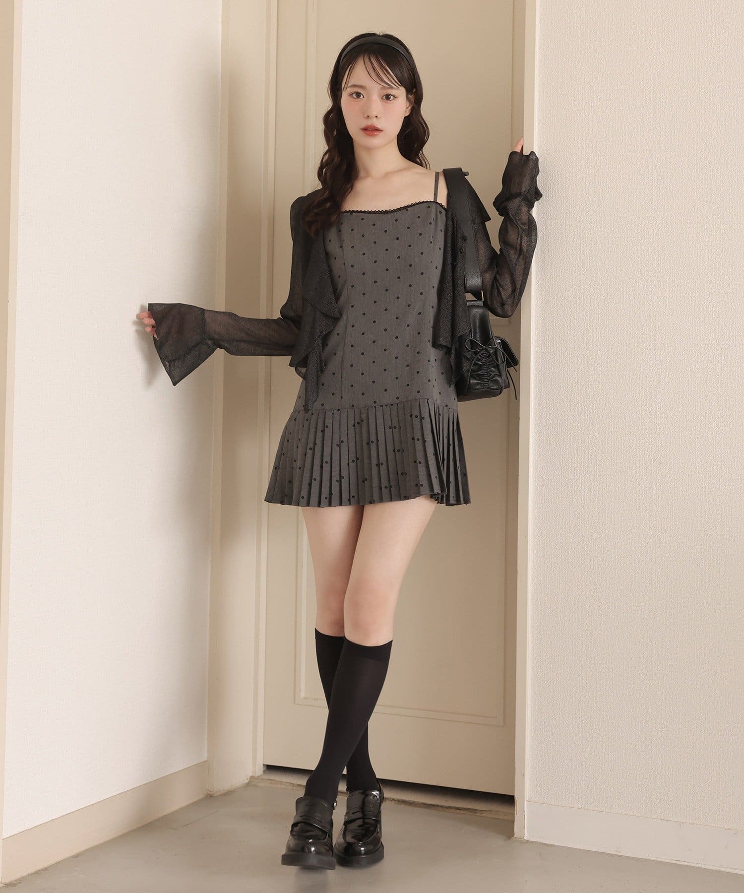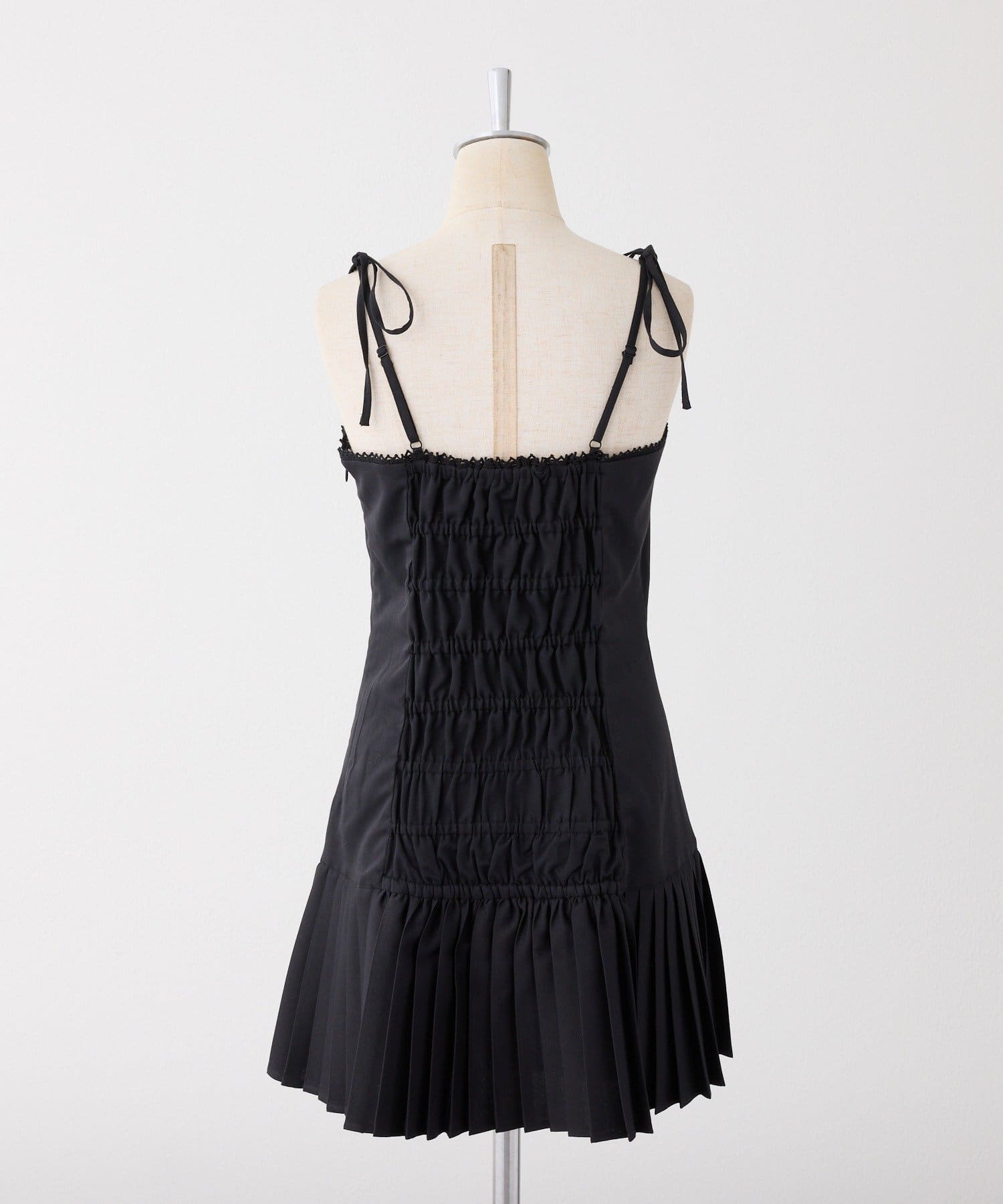 裾に細かいプリーツを施した、動くたびにふんわり揺れるミニワンピース。