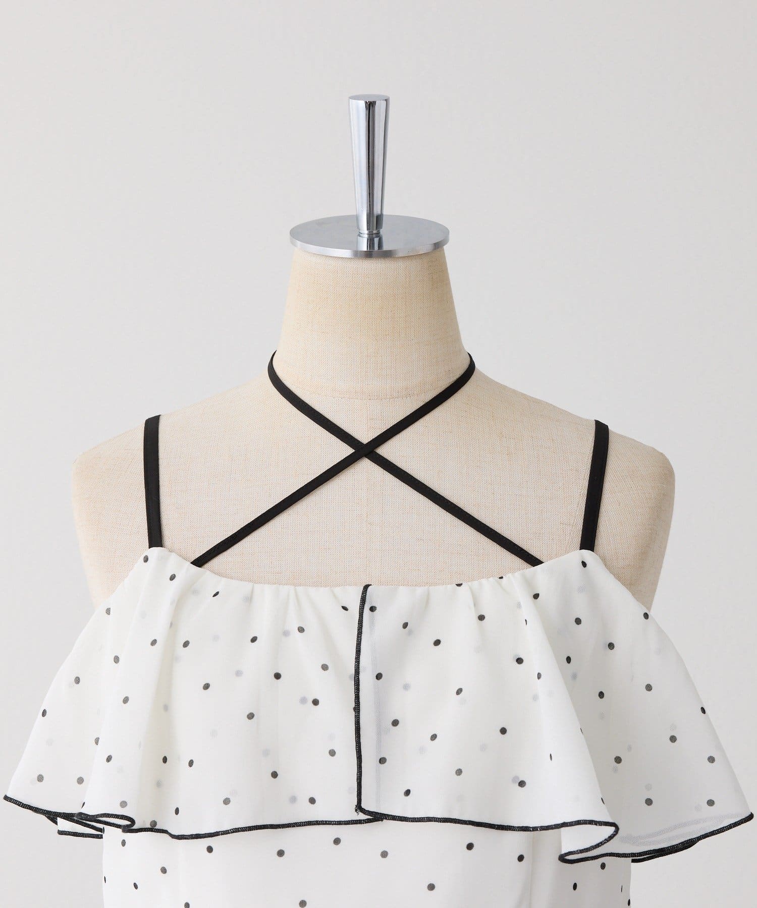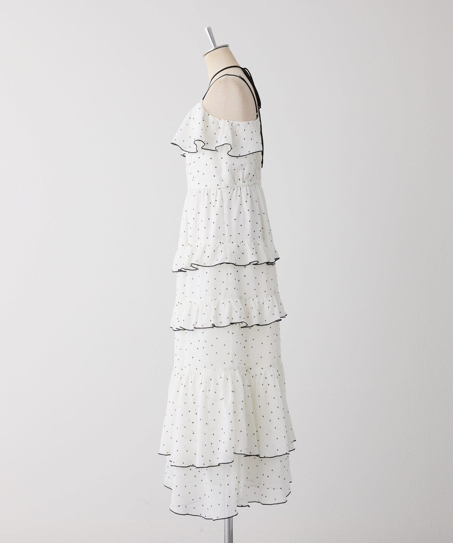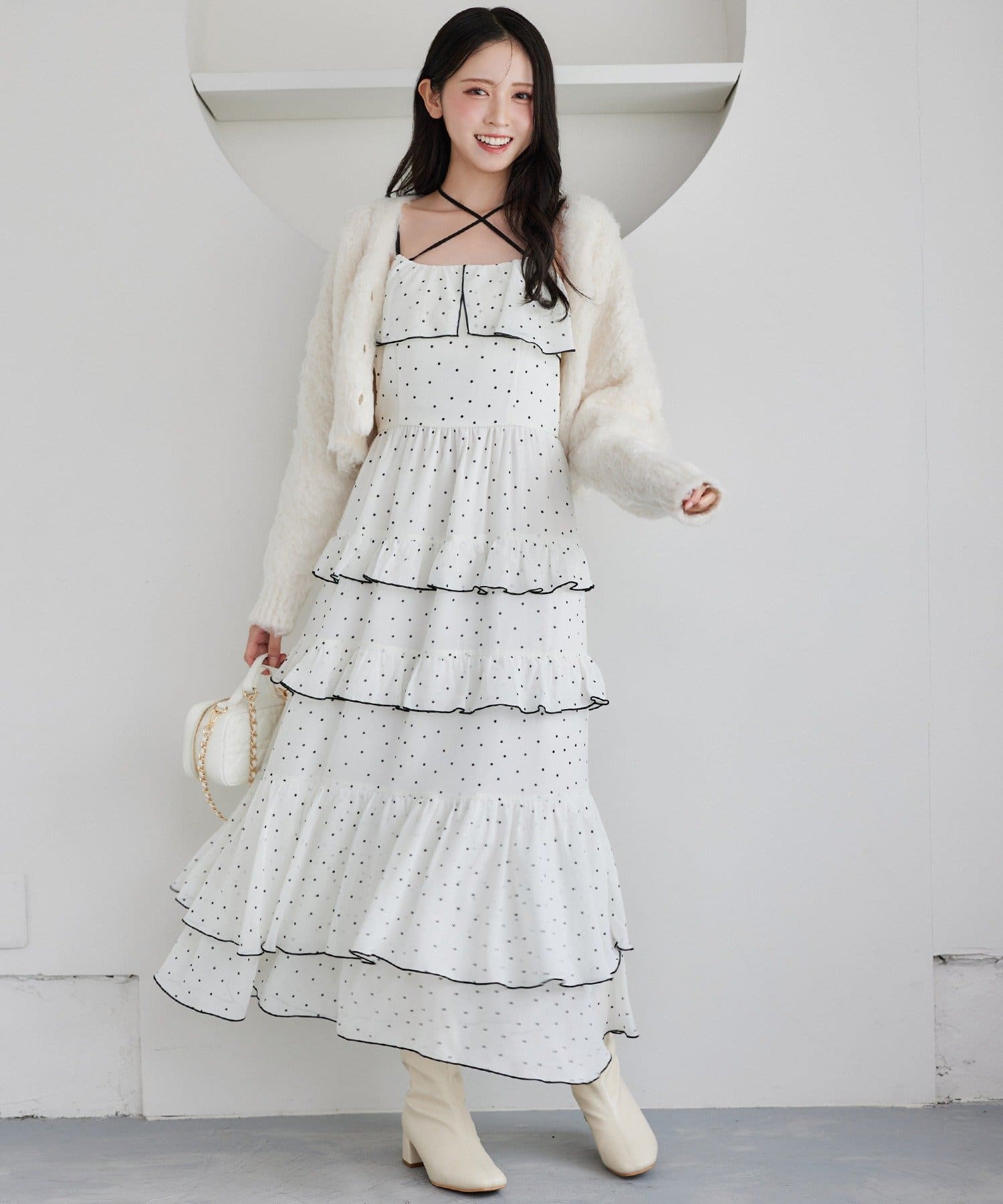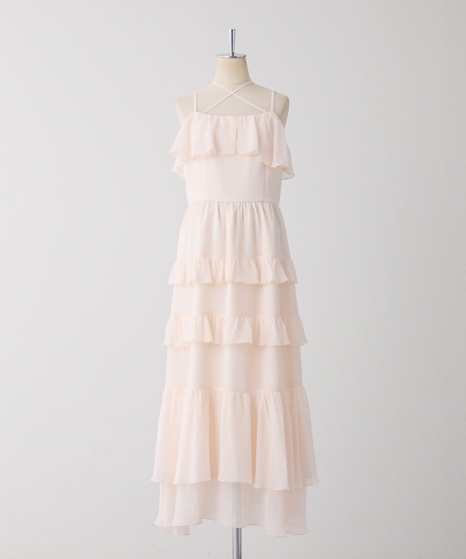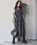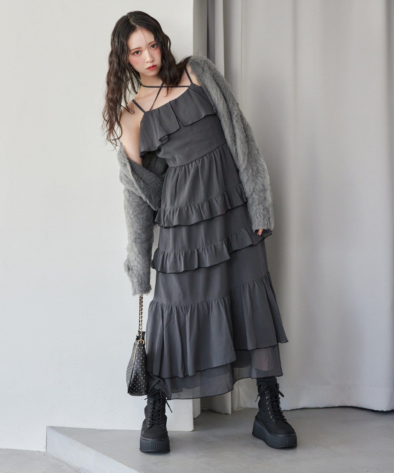 贅沢にあしらわれたフリルが目を惹くキャミワンピース。