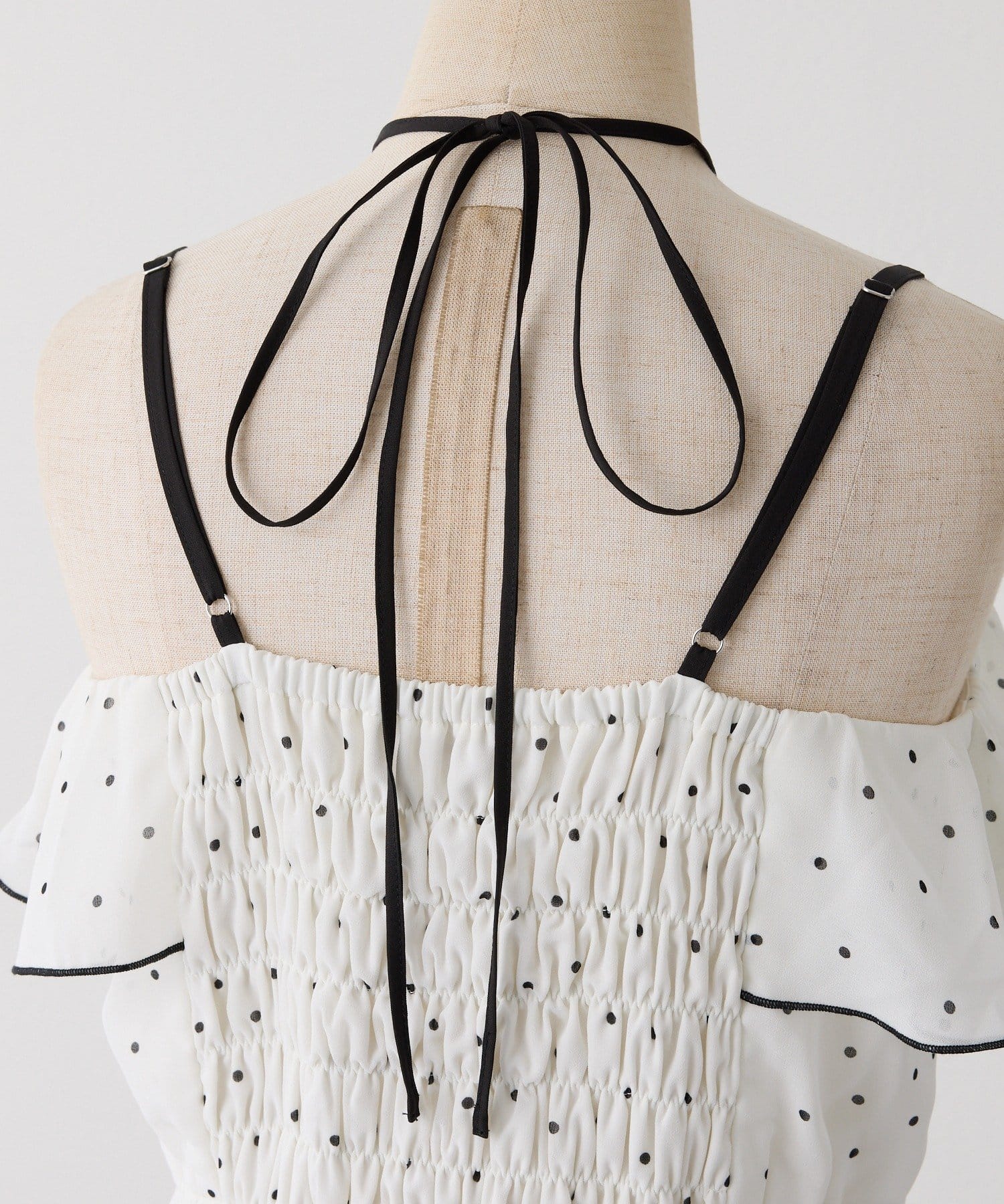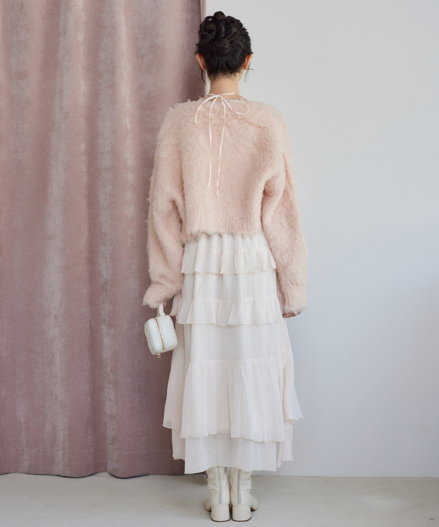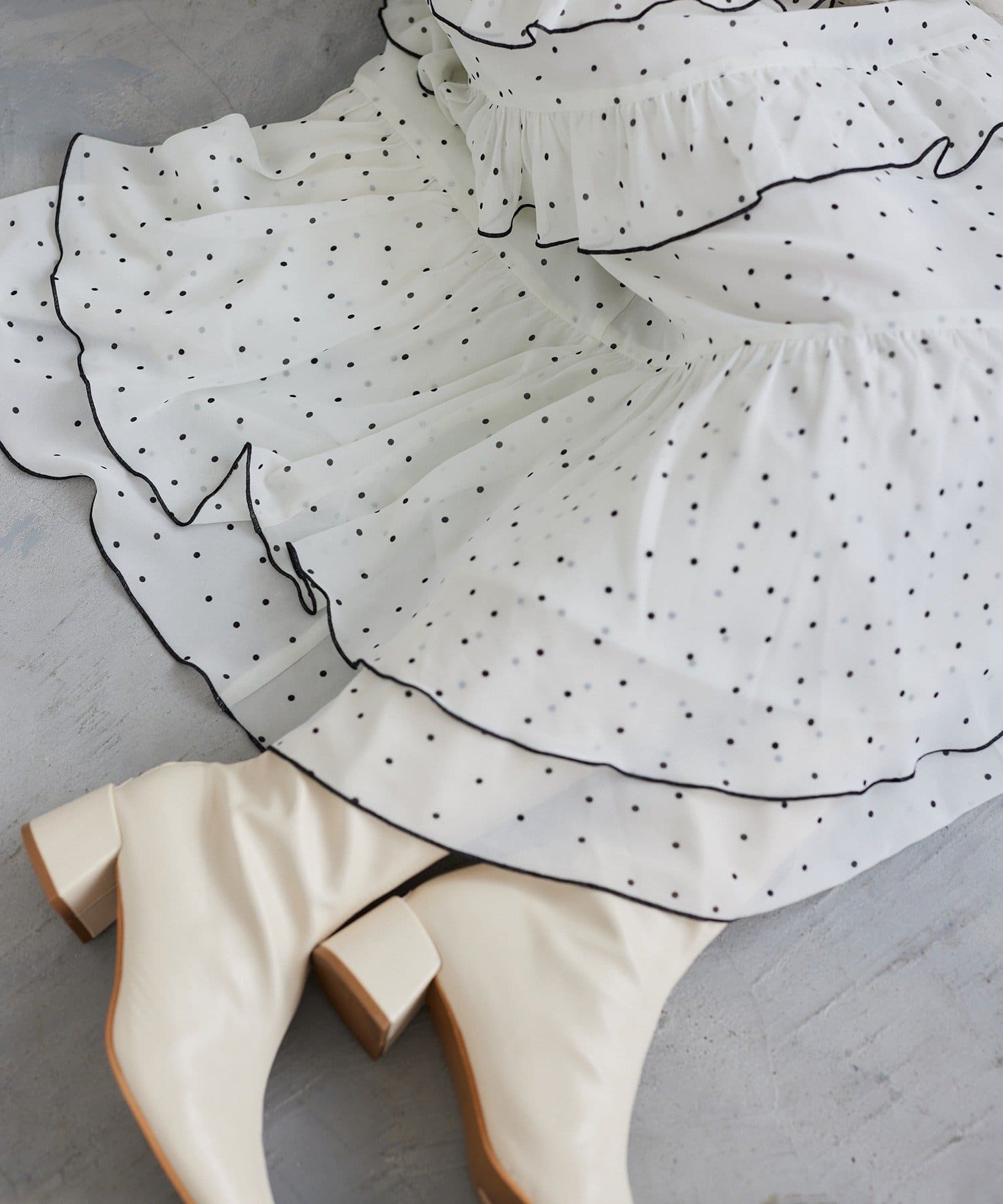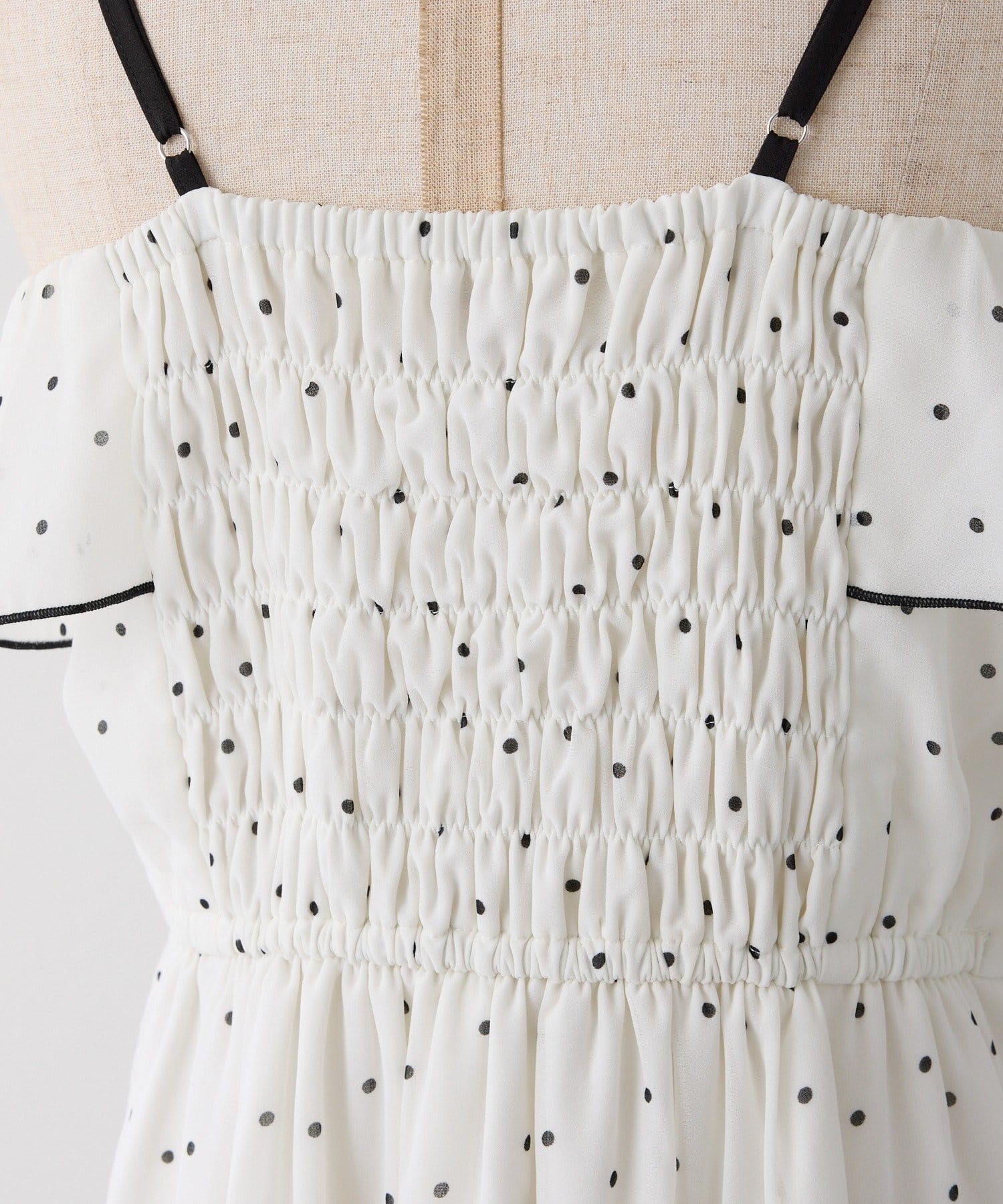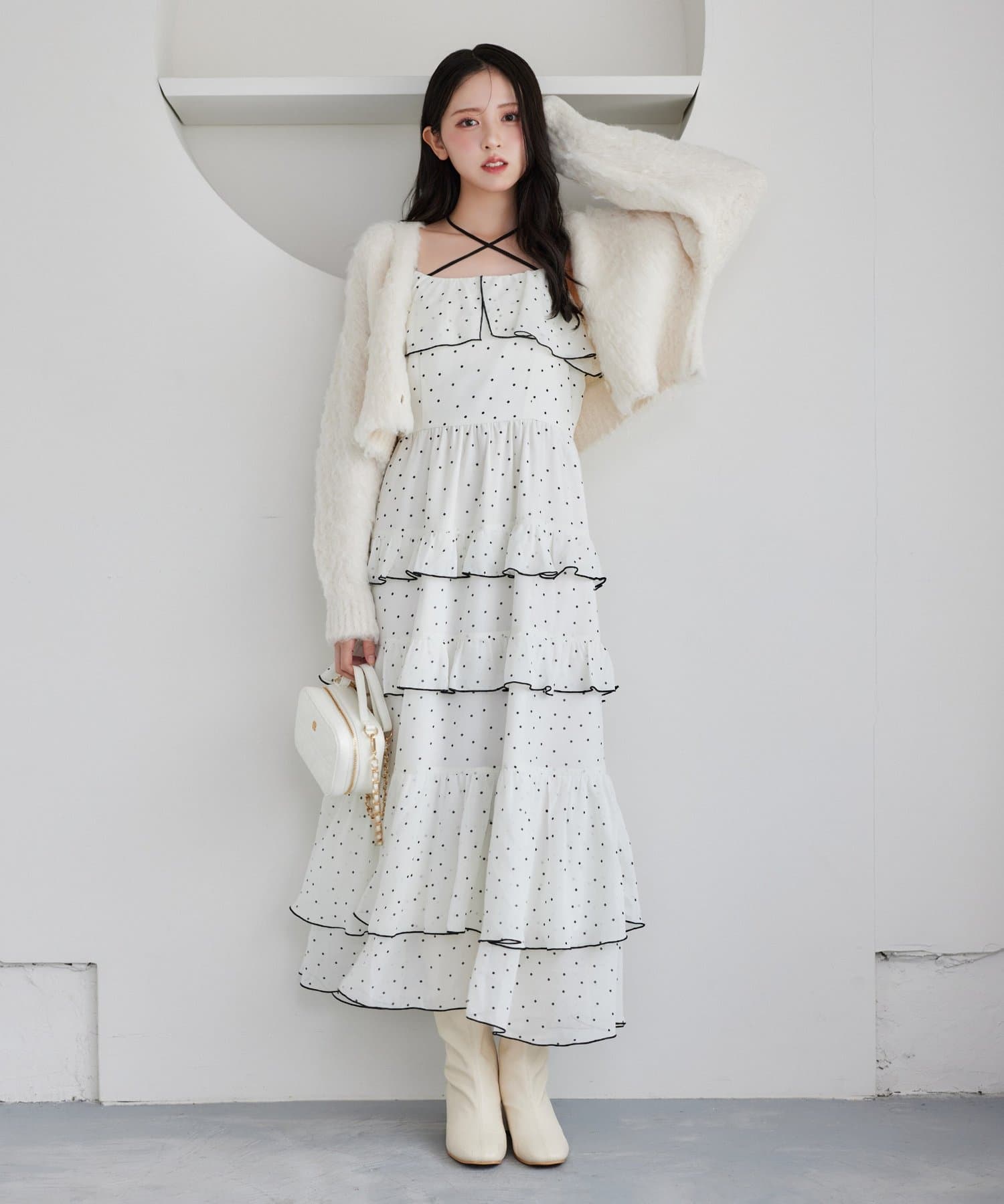 贅沢にあしらわれたフリルが目を惹くキャミワンピース。