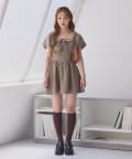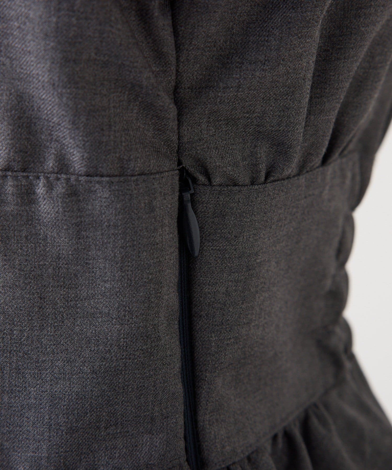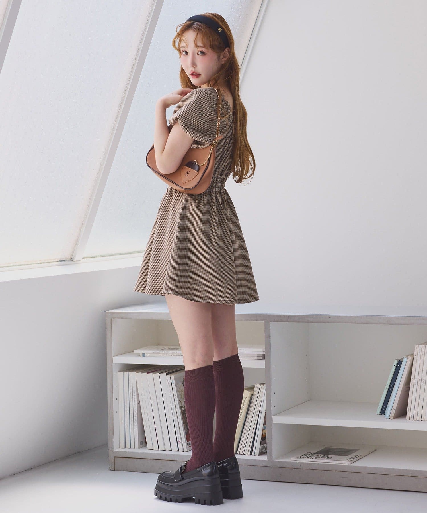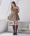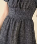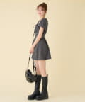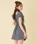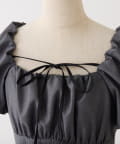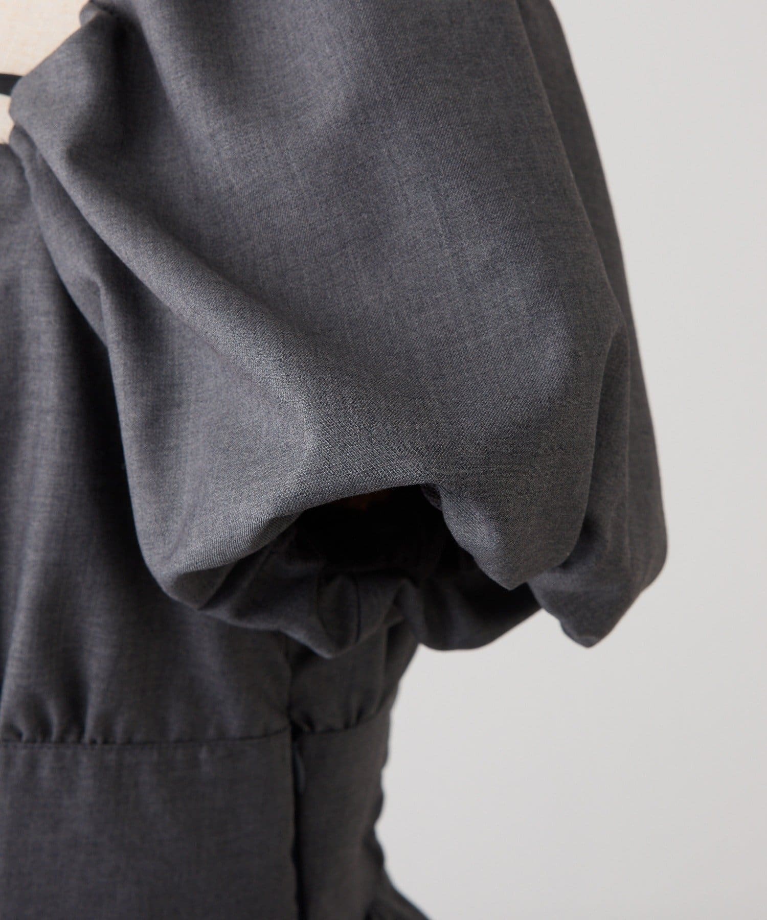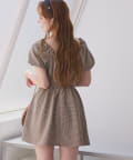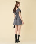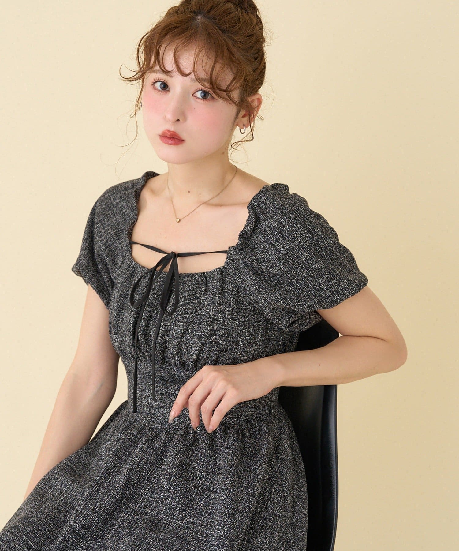 ふんわりとしたパフスリーブに、ウエストのコルセット風デザインを掛け合わせたミニワンピース。