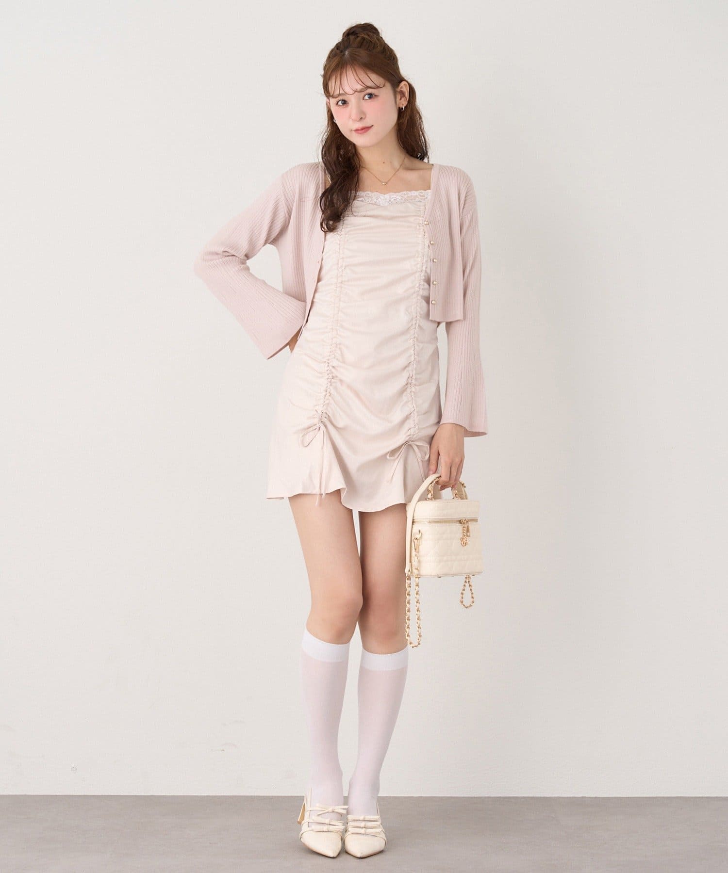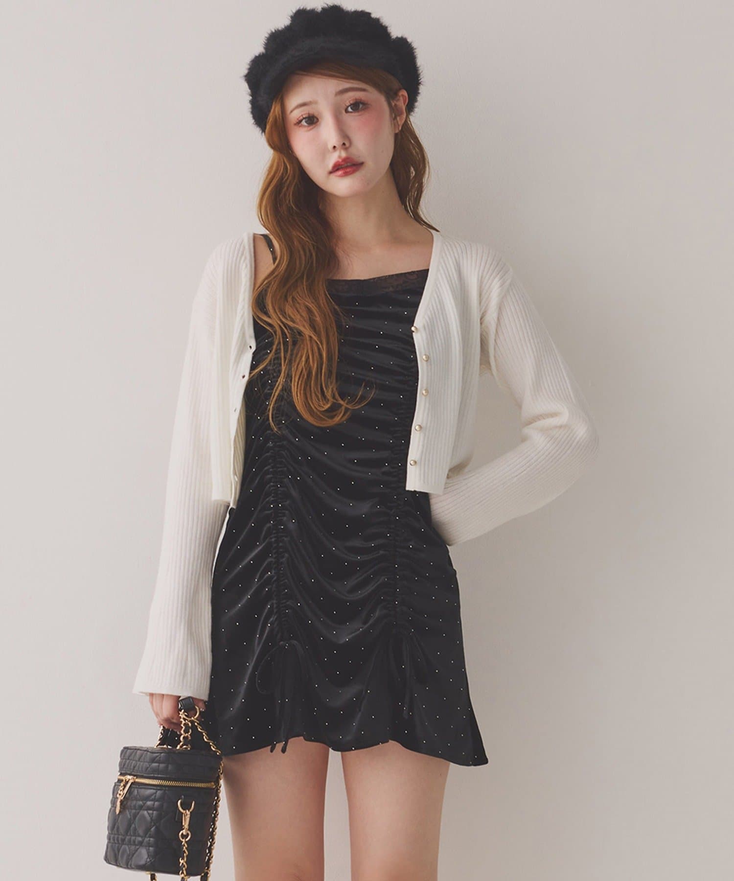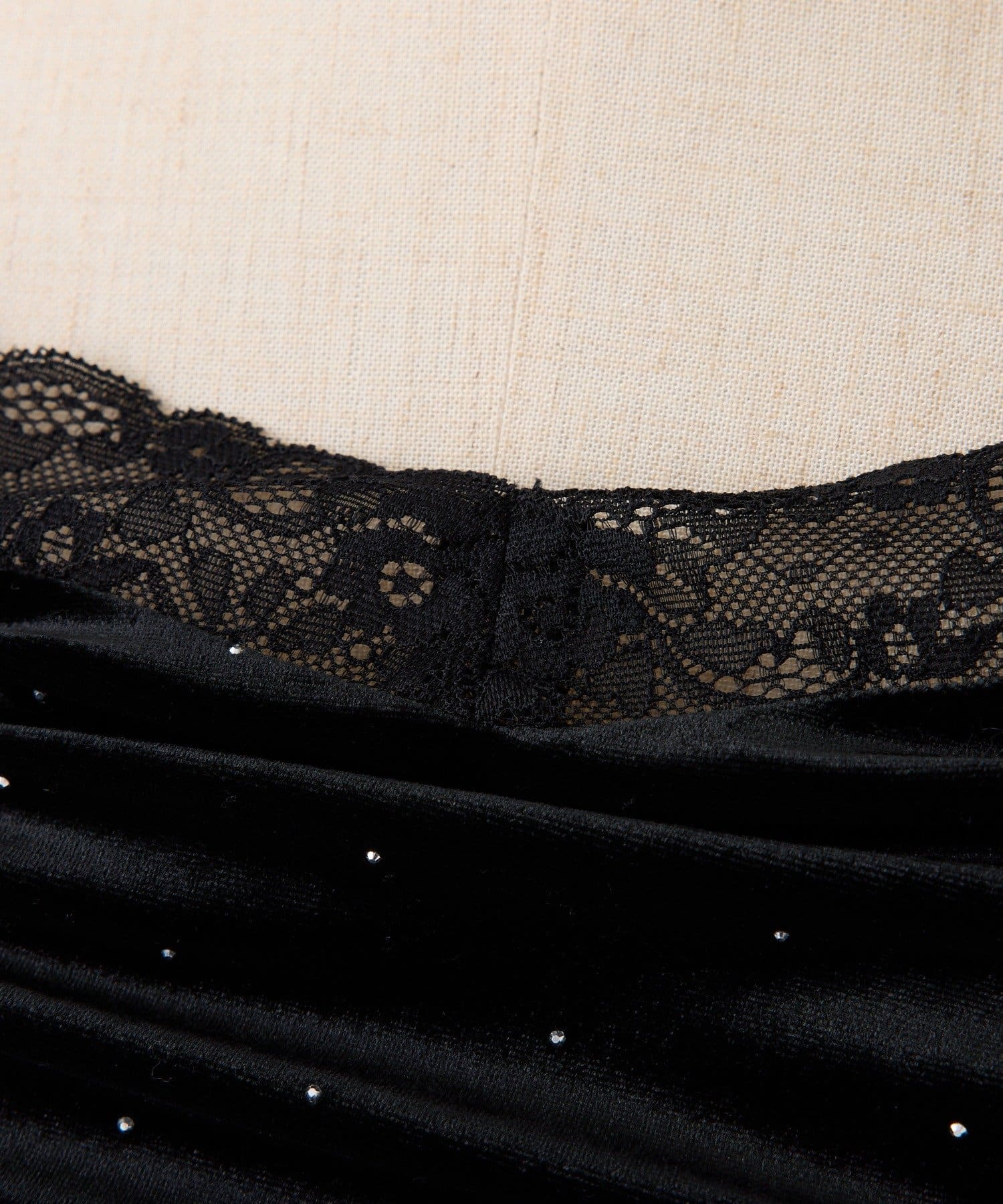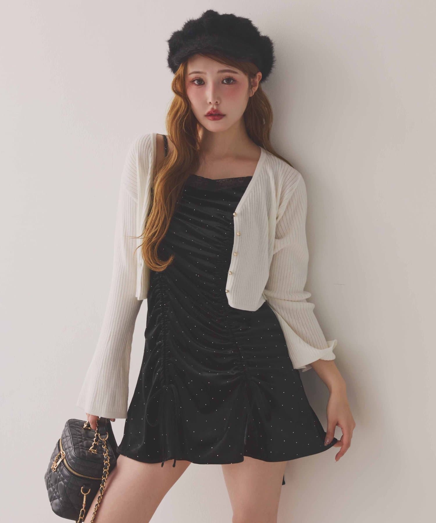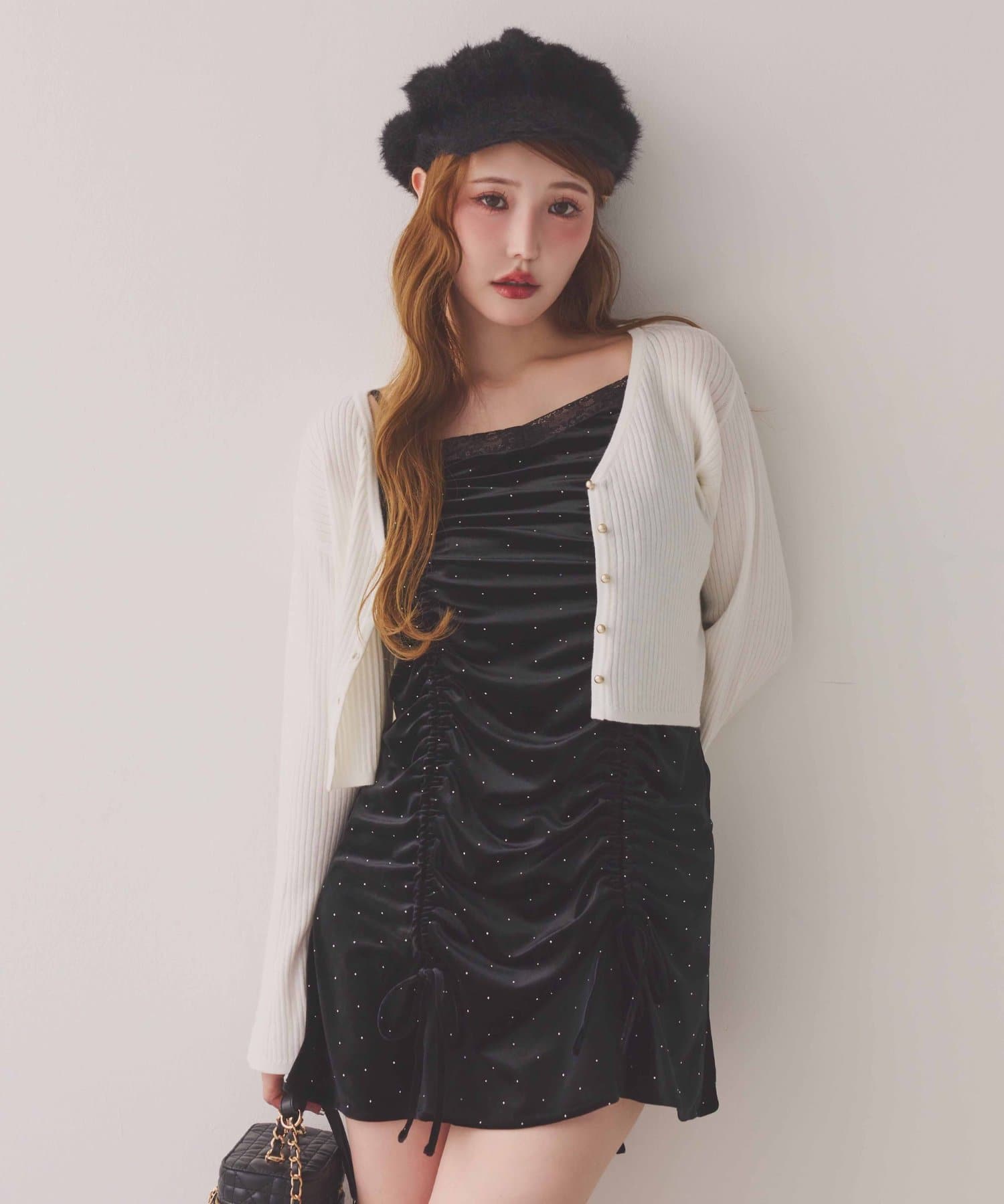キャミでミニ丈なのにベロア生地だからあったかいです(*´ ‘*)