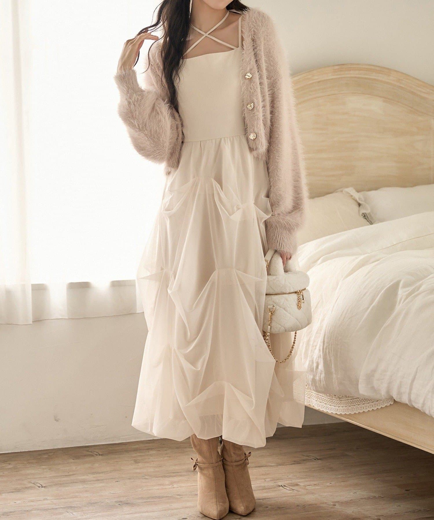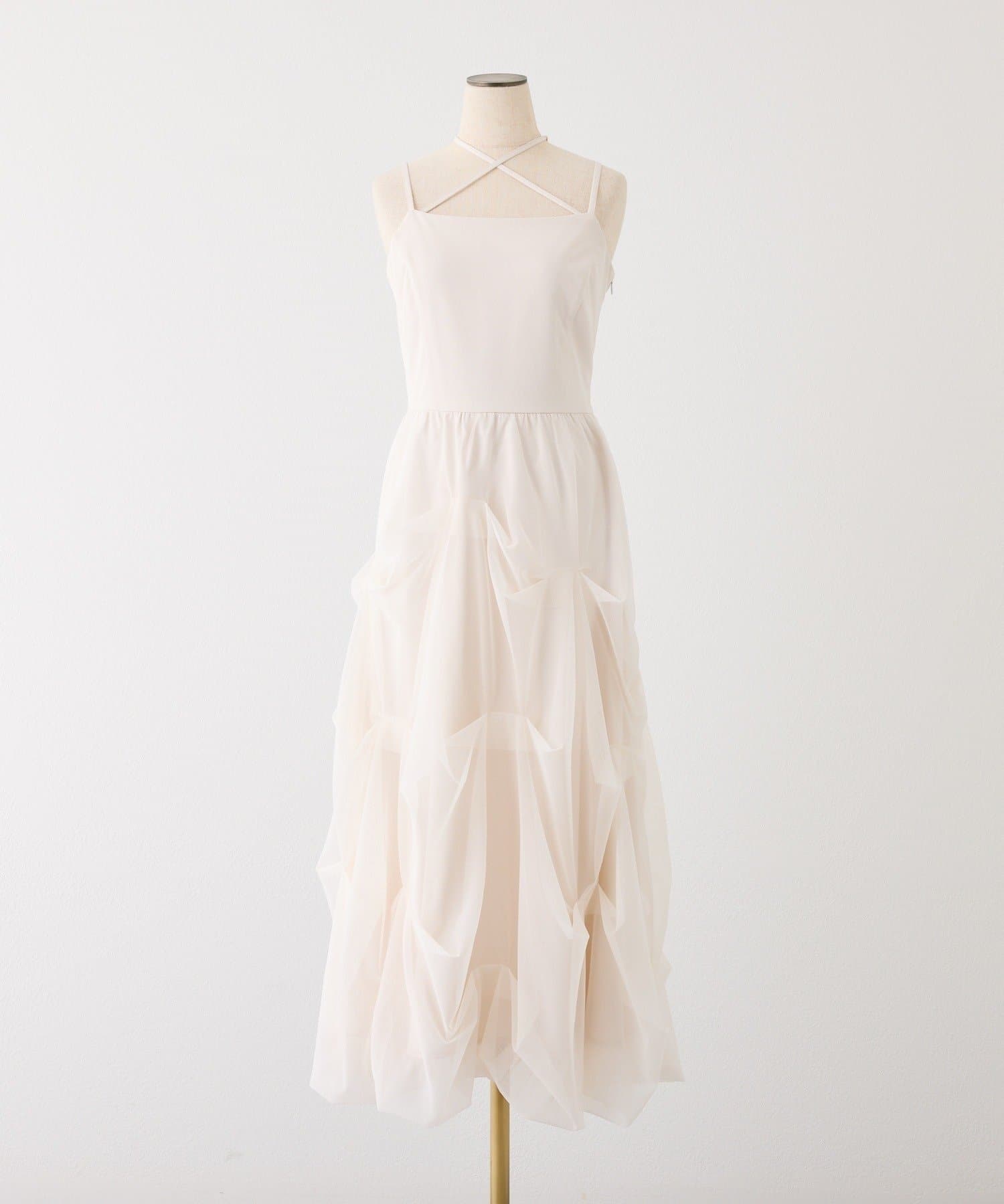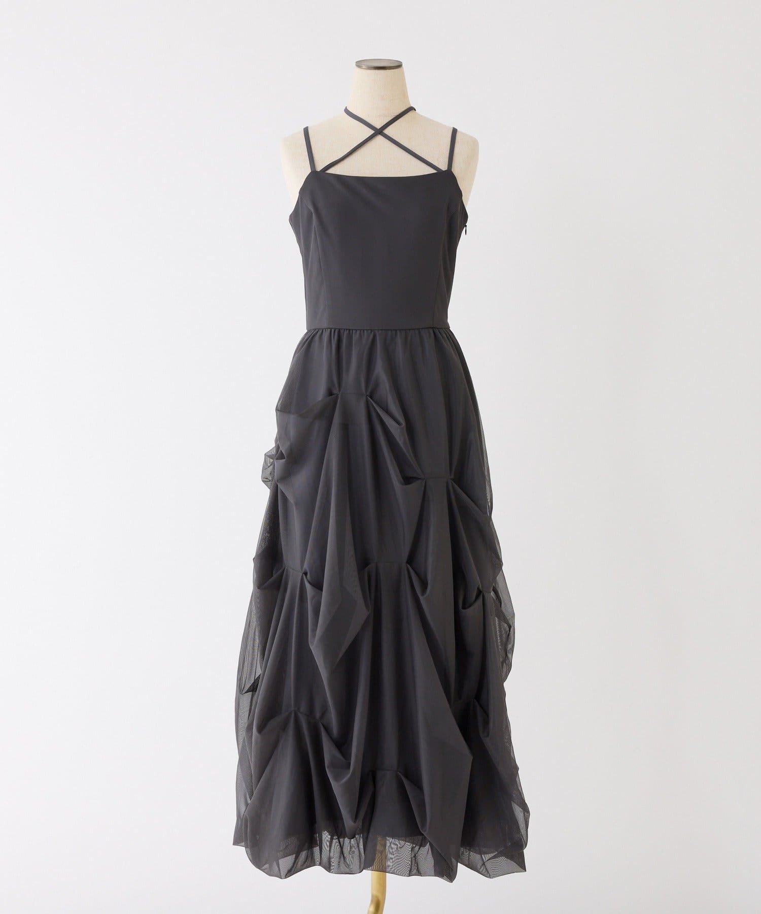 ふんわりと広がる3段バルーンデザインが華やかなキャミロングワンピ。