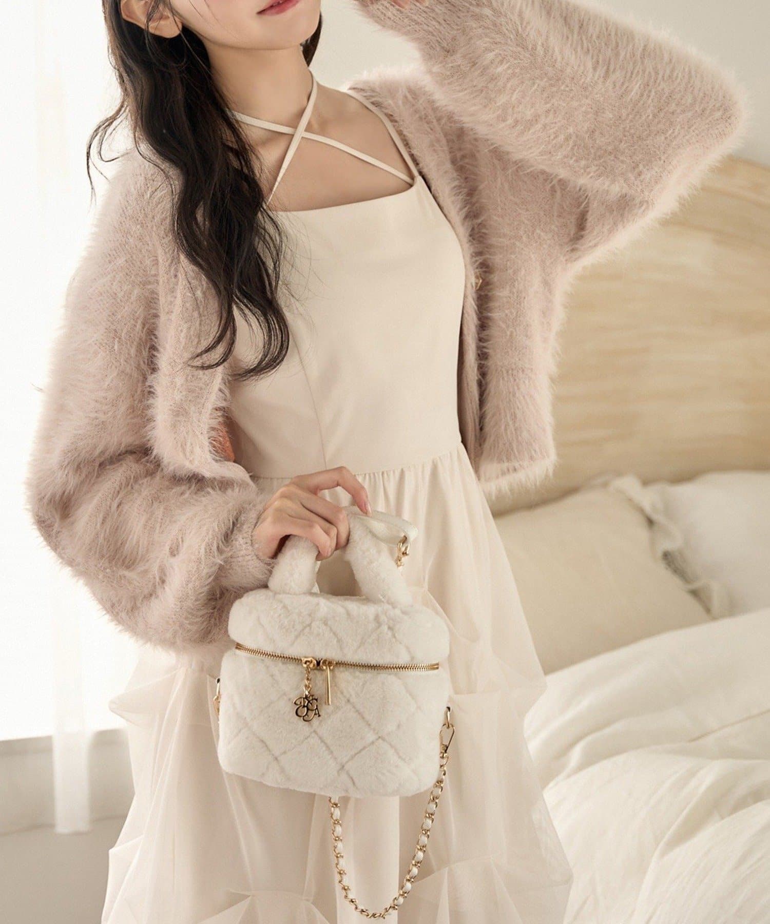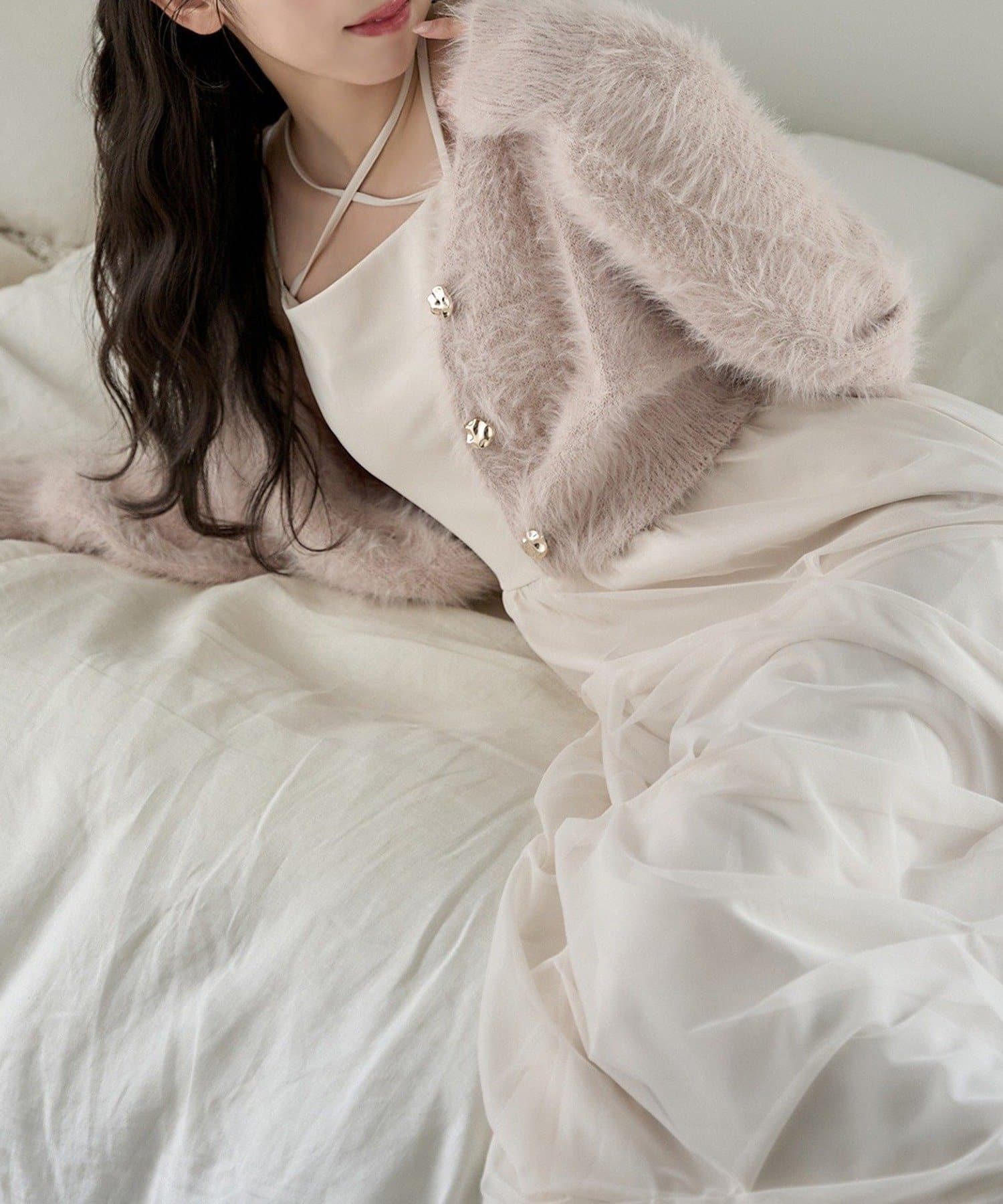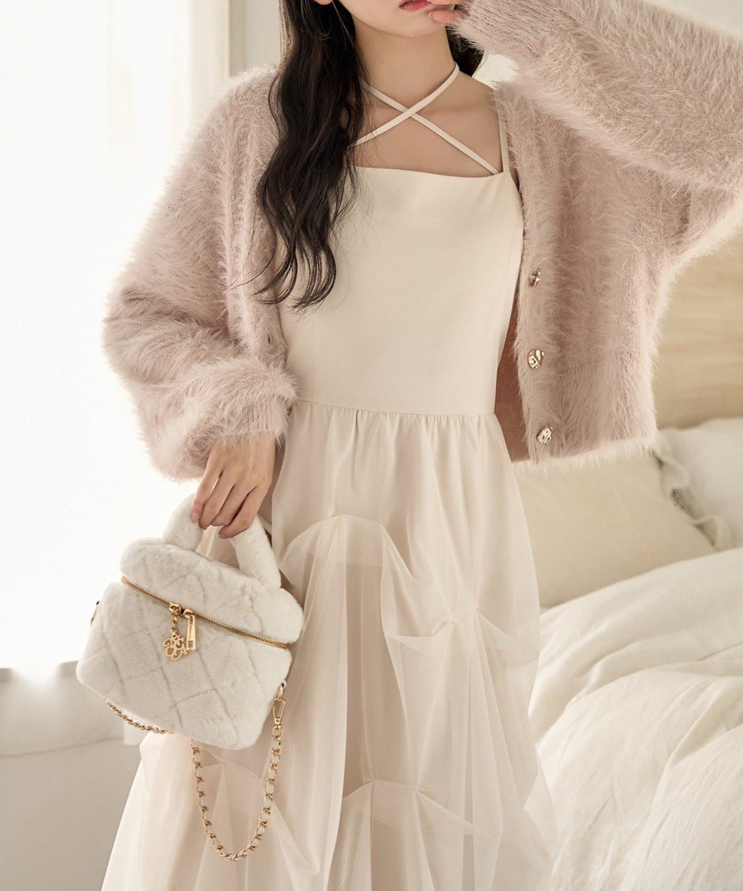肩紐は細めデザインで女性らしい印象に。