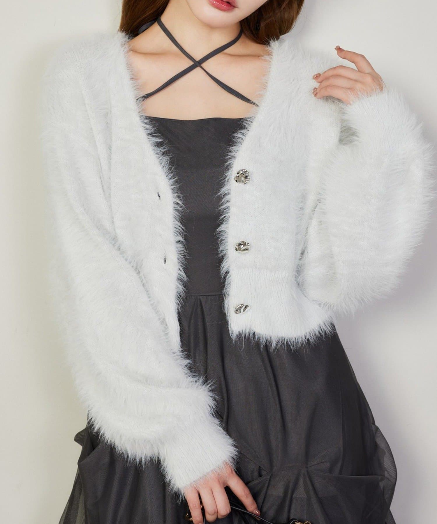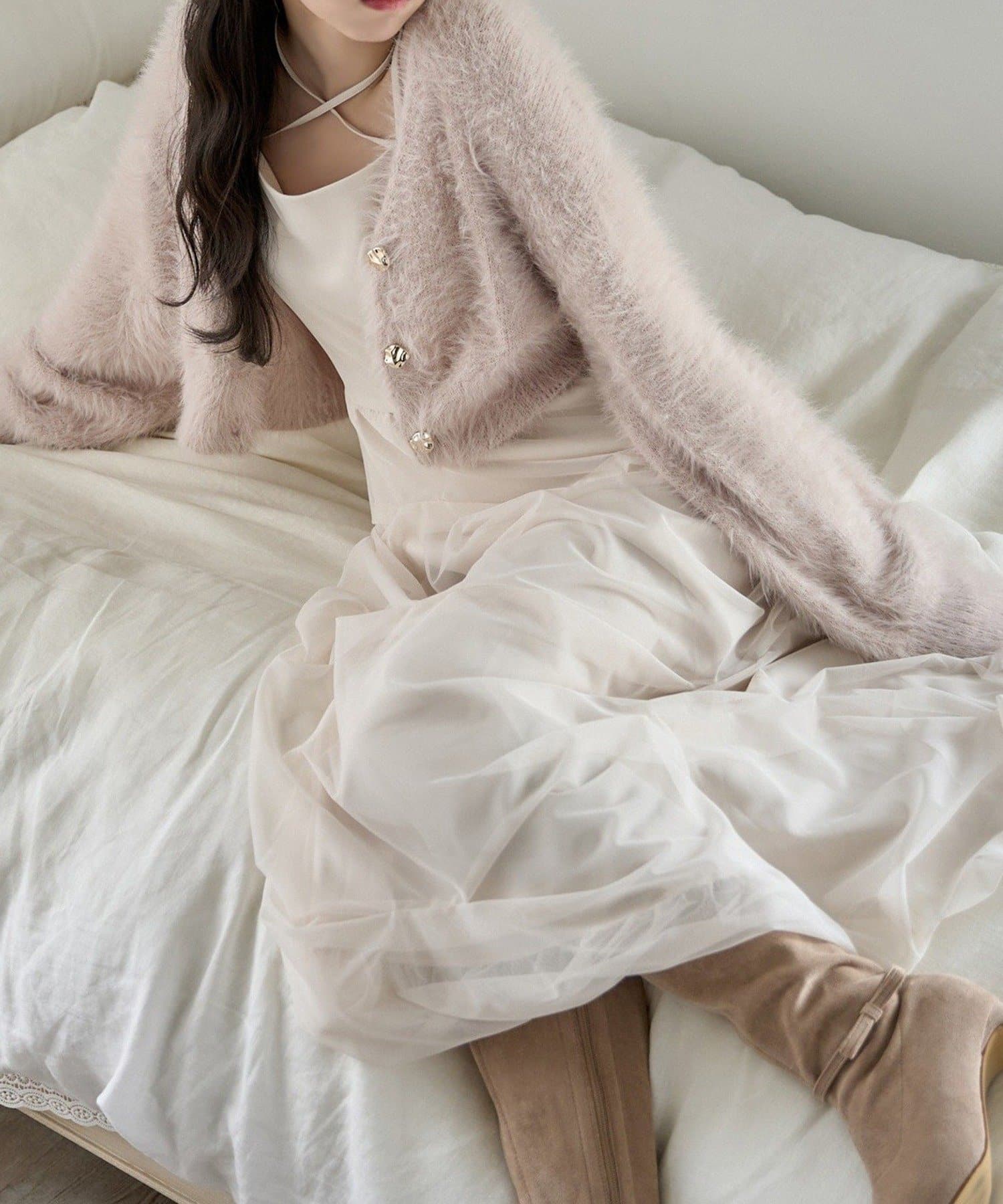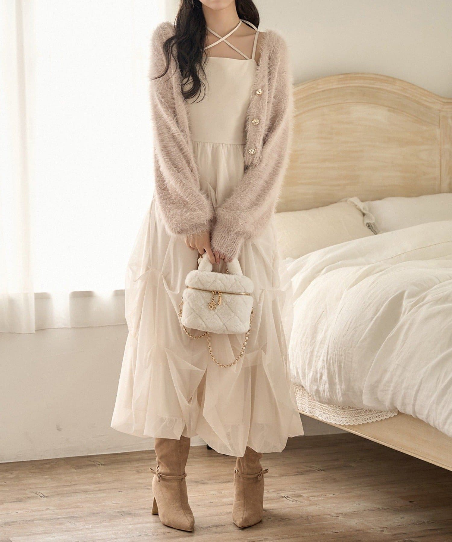 肩紐は細めデザインで女性らしい印象に。