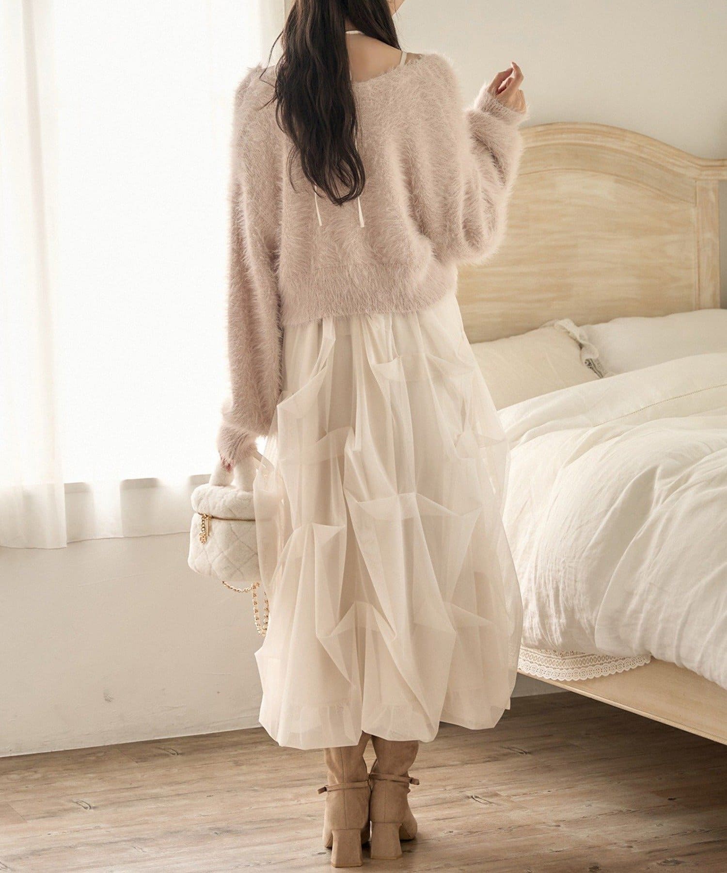 歩くたびに揺れるシルエットが可愛くて、1枚で存在感たっぷり。