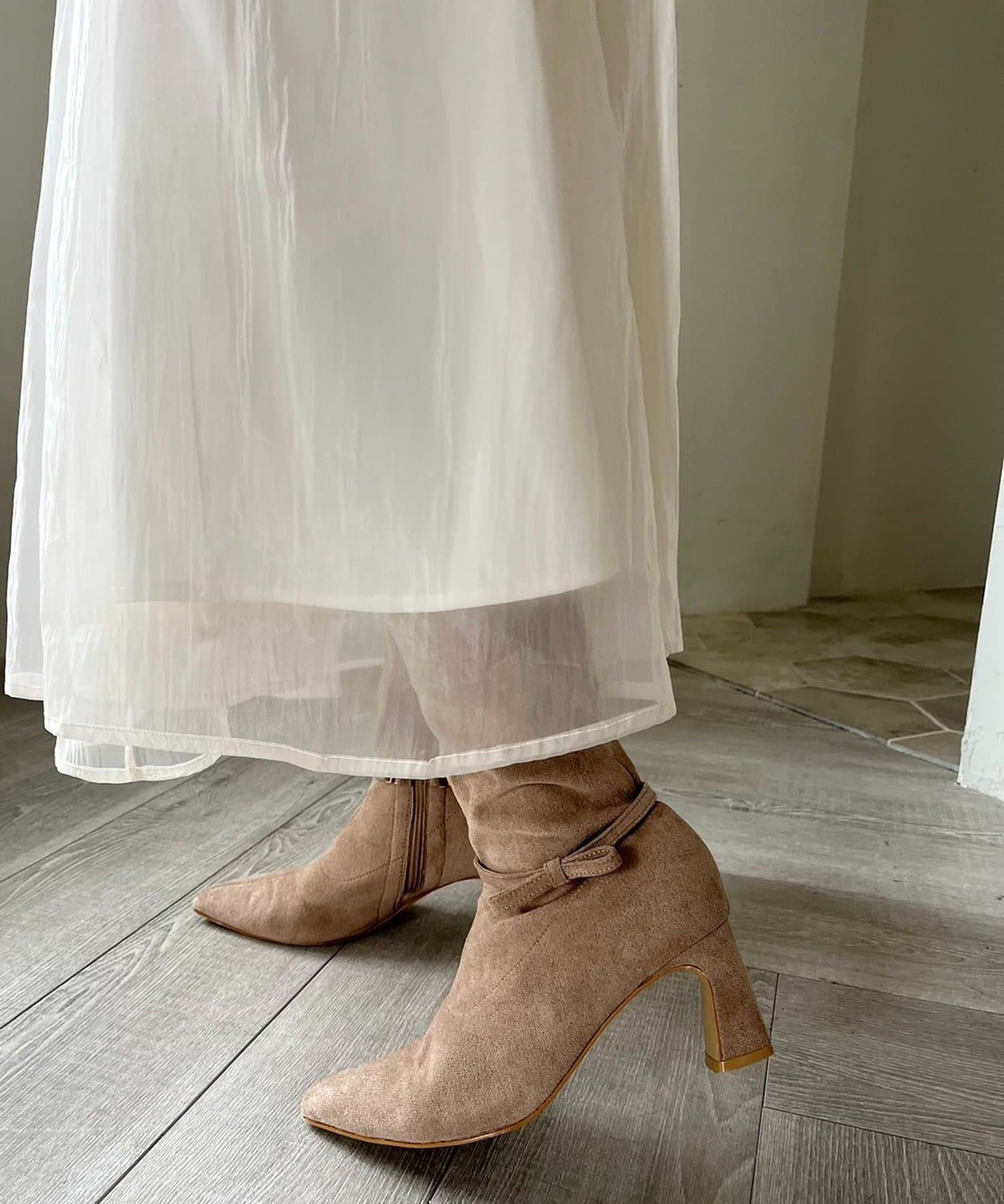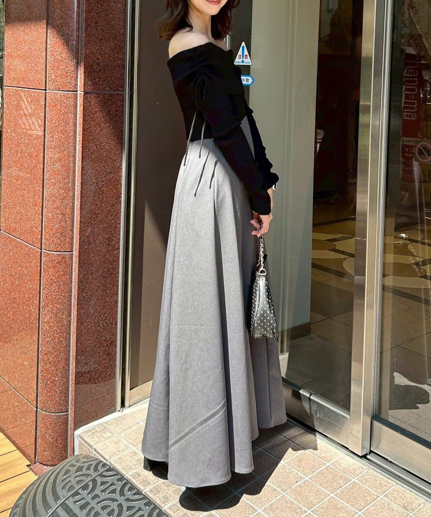 スカート部分は落ち感のある素材で、歩くたび揺れる上品なシルエットが魅力。