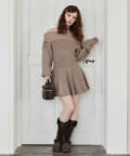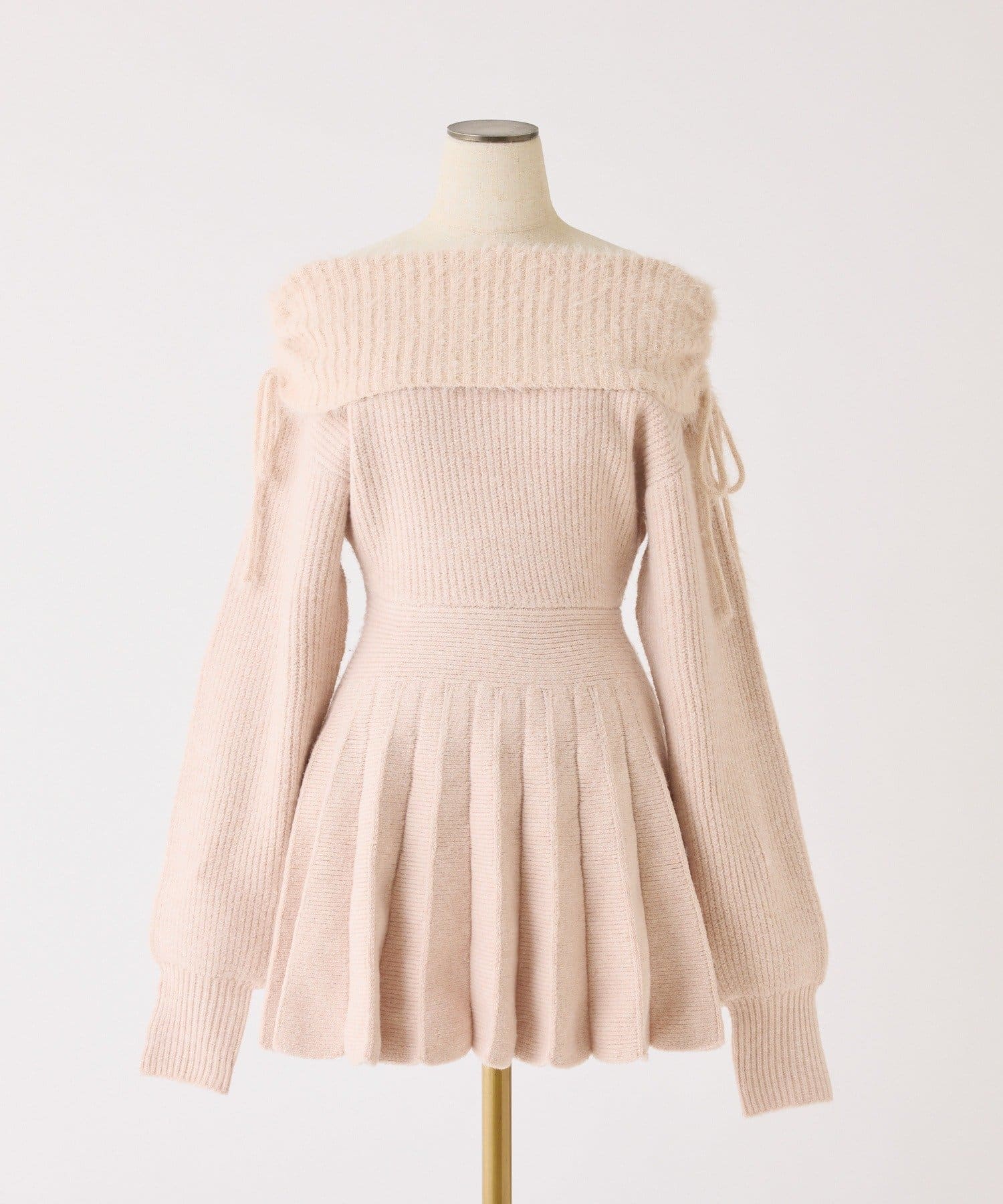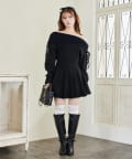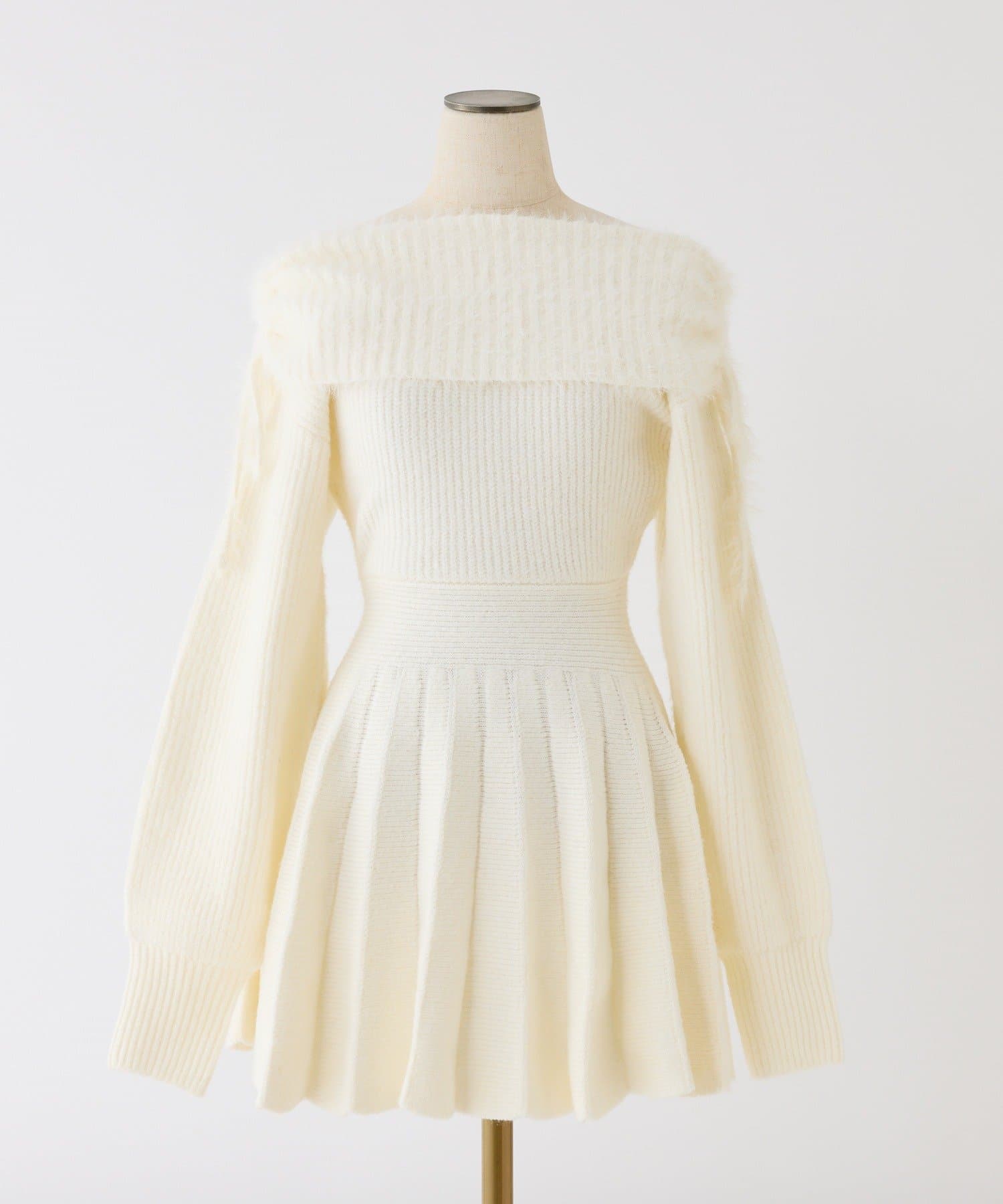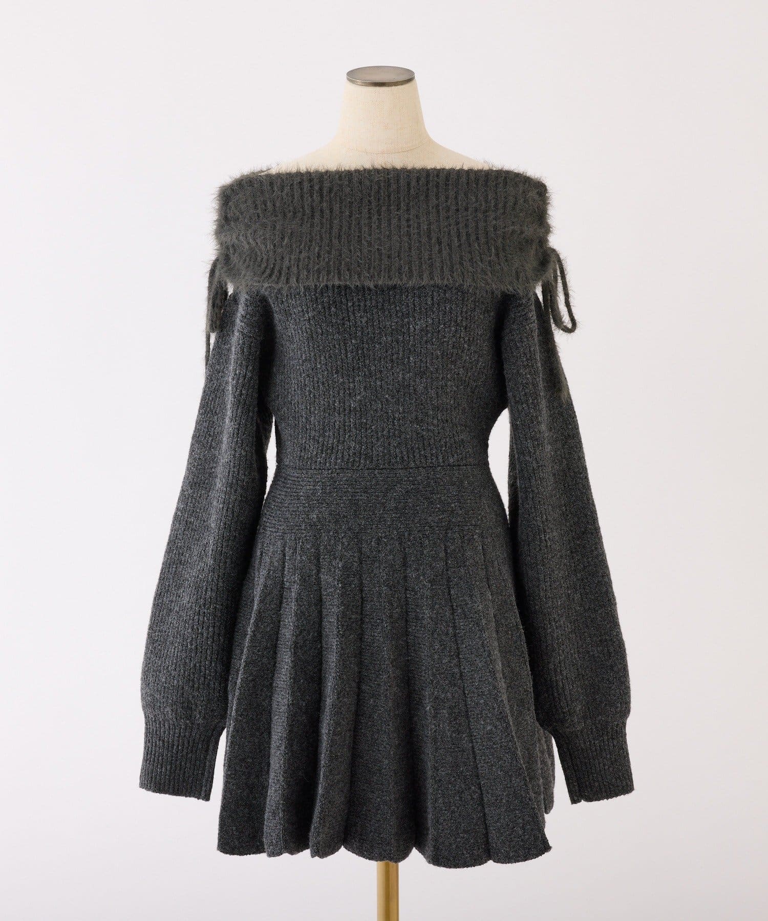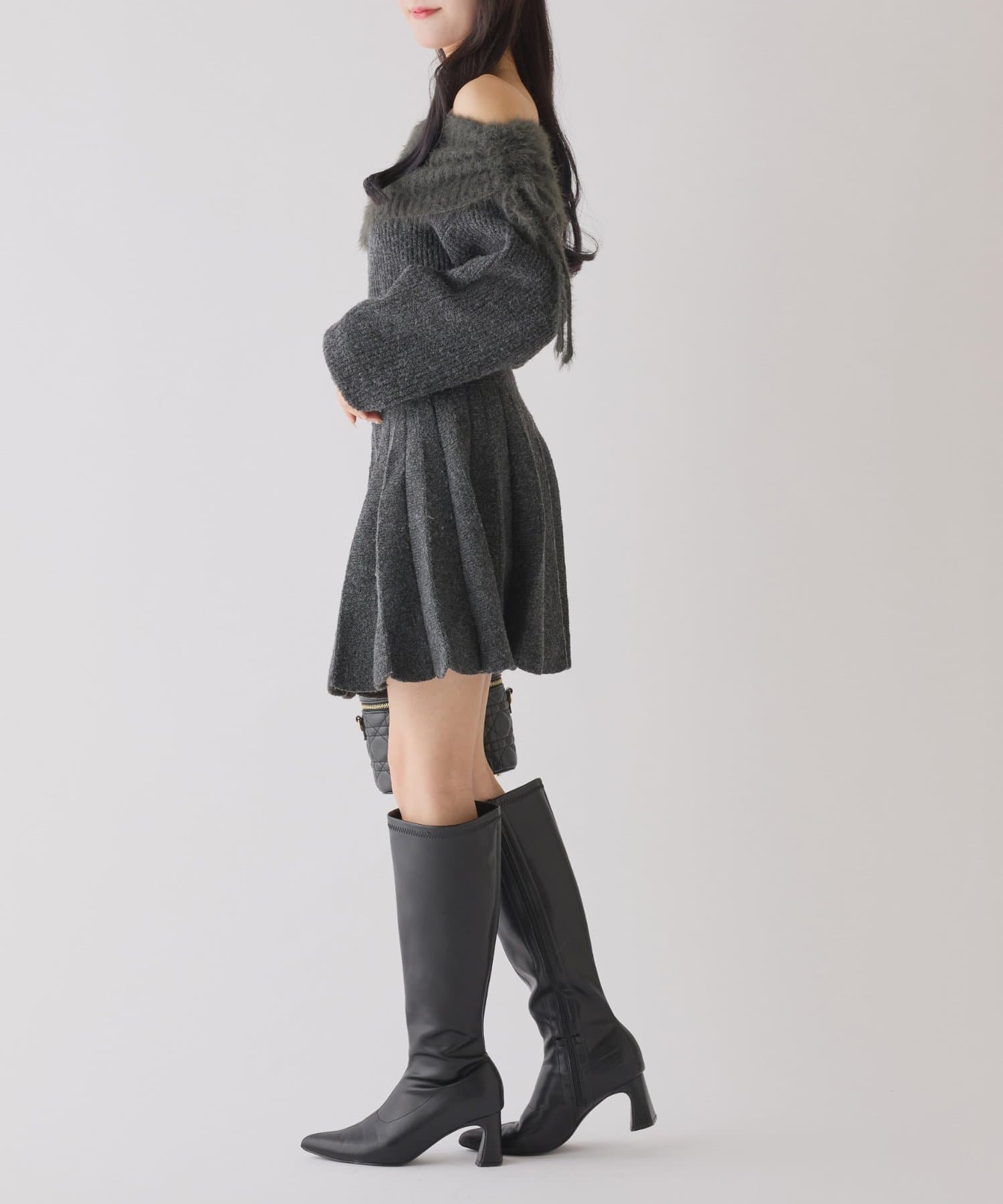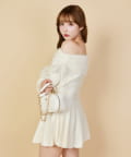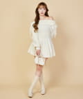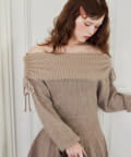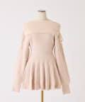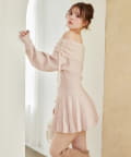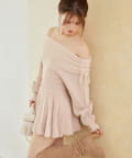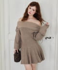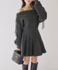 オフショルプリーツニットミニワンピ