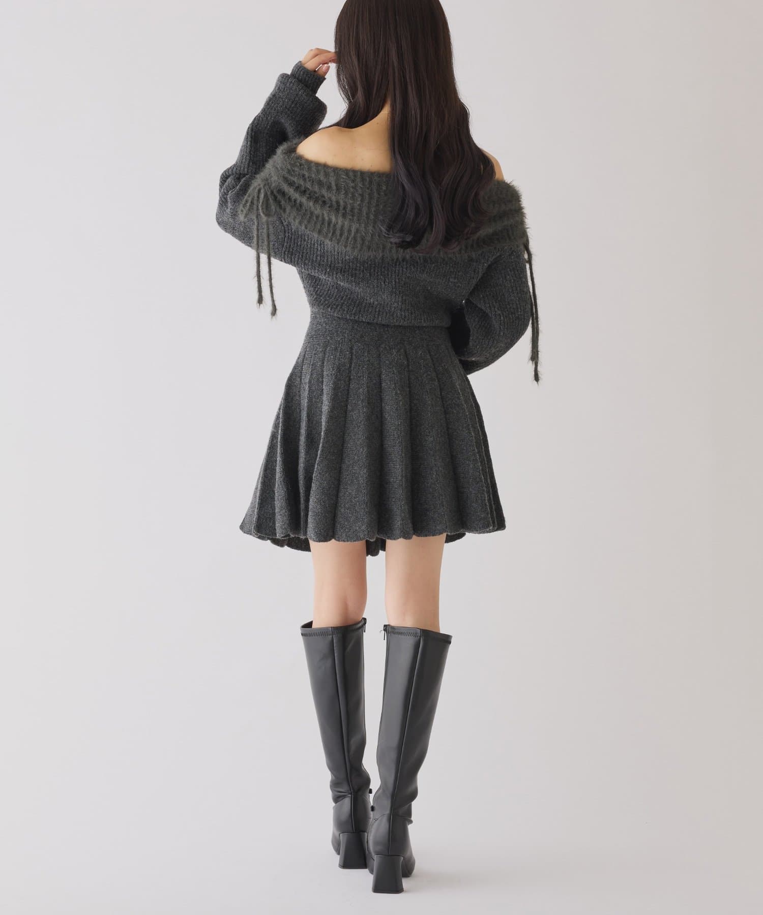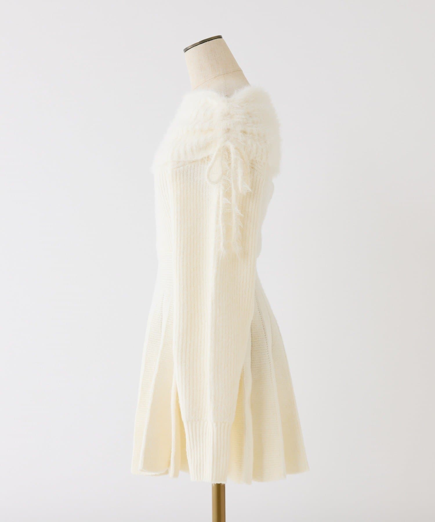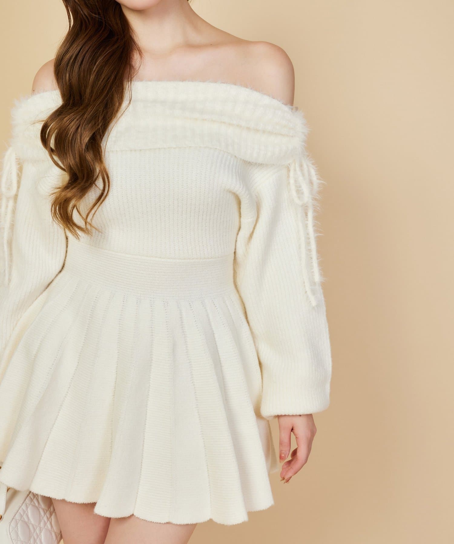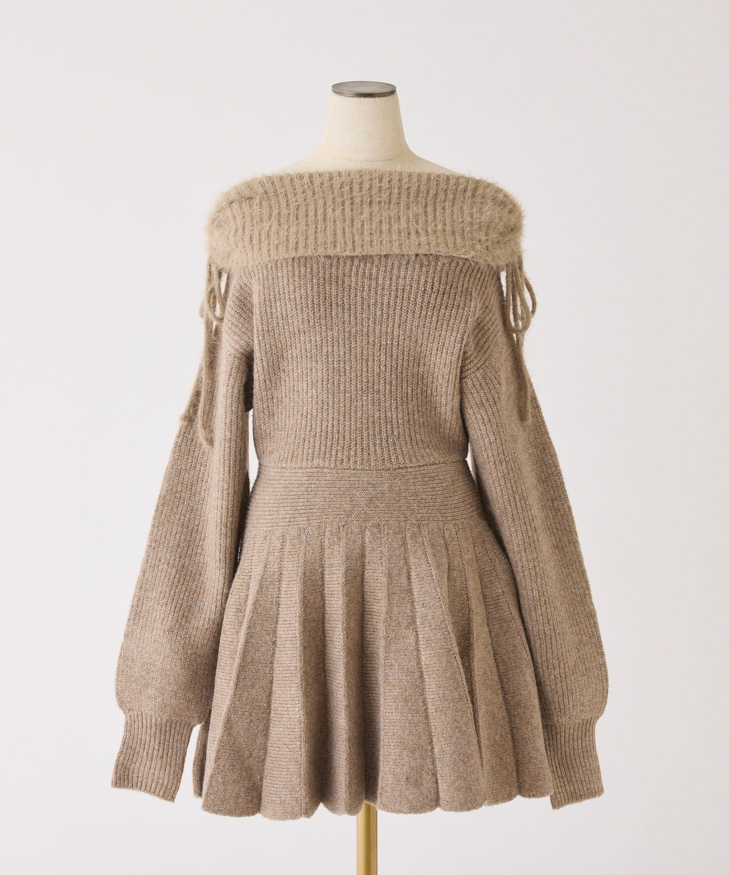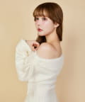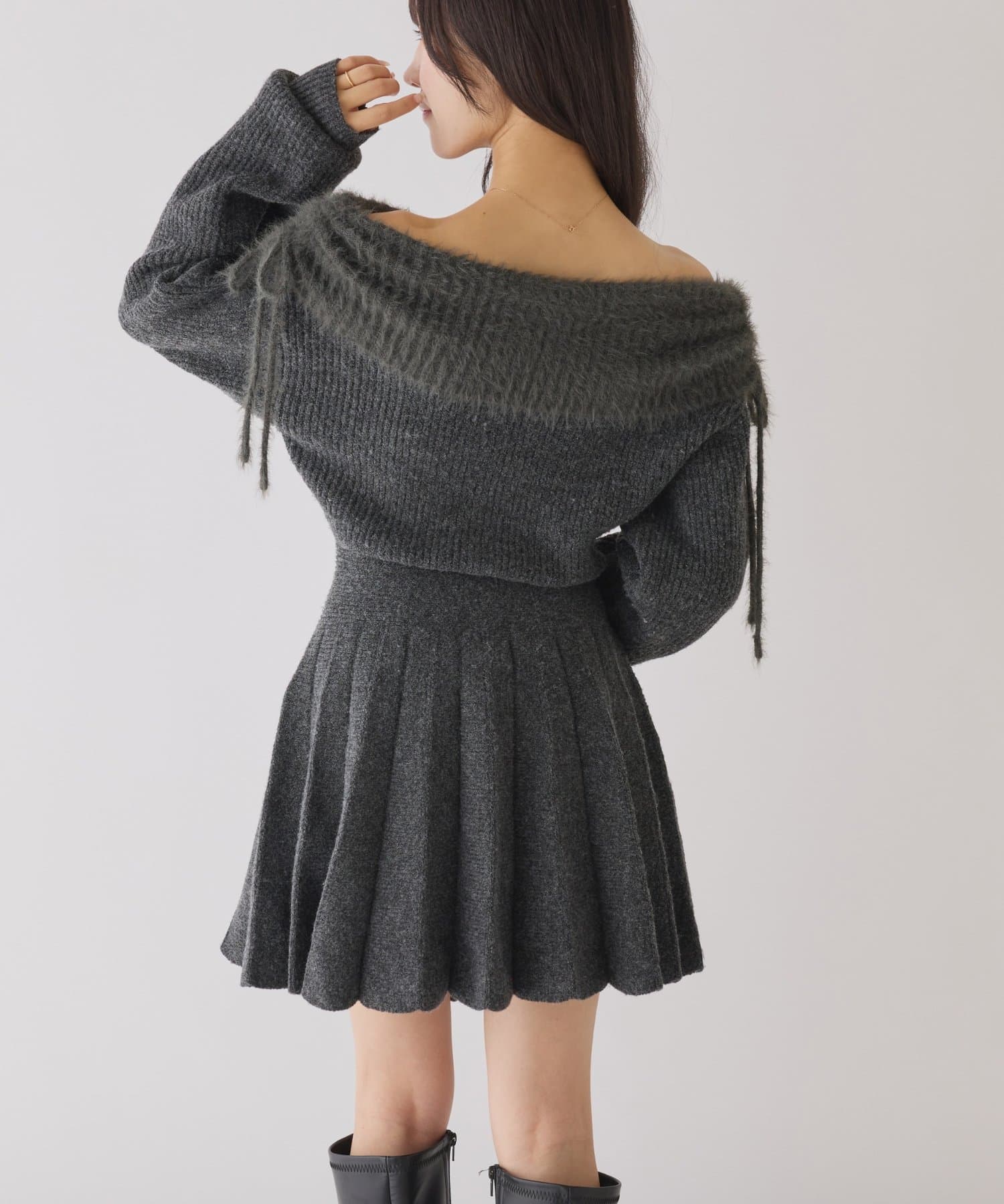 オフショルプリーツニットミニワンピ