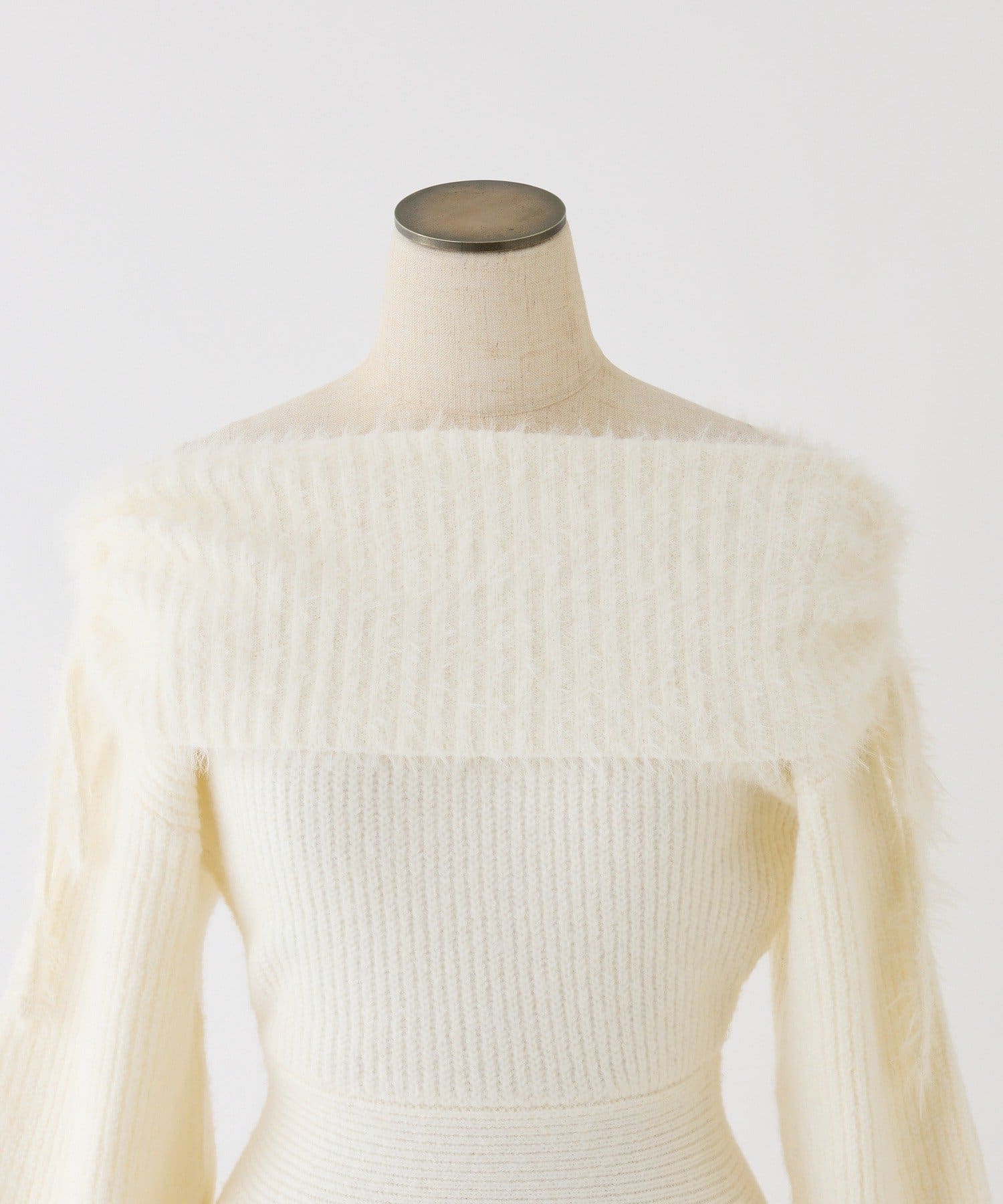 オフショル部分は大きく折り返しているのでデコルテを綺麗に見せ、