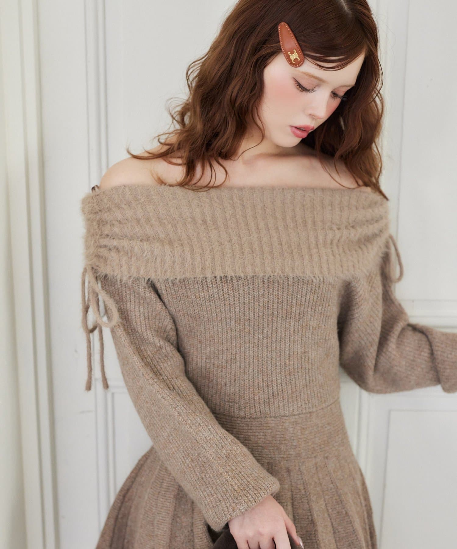 ヘルシーな肌見せが叶うオフショルニットワンピース