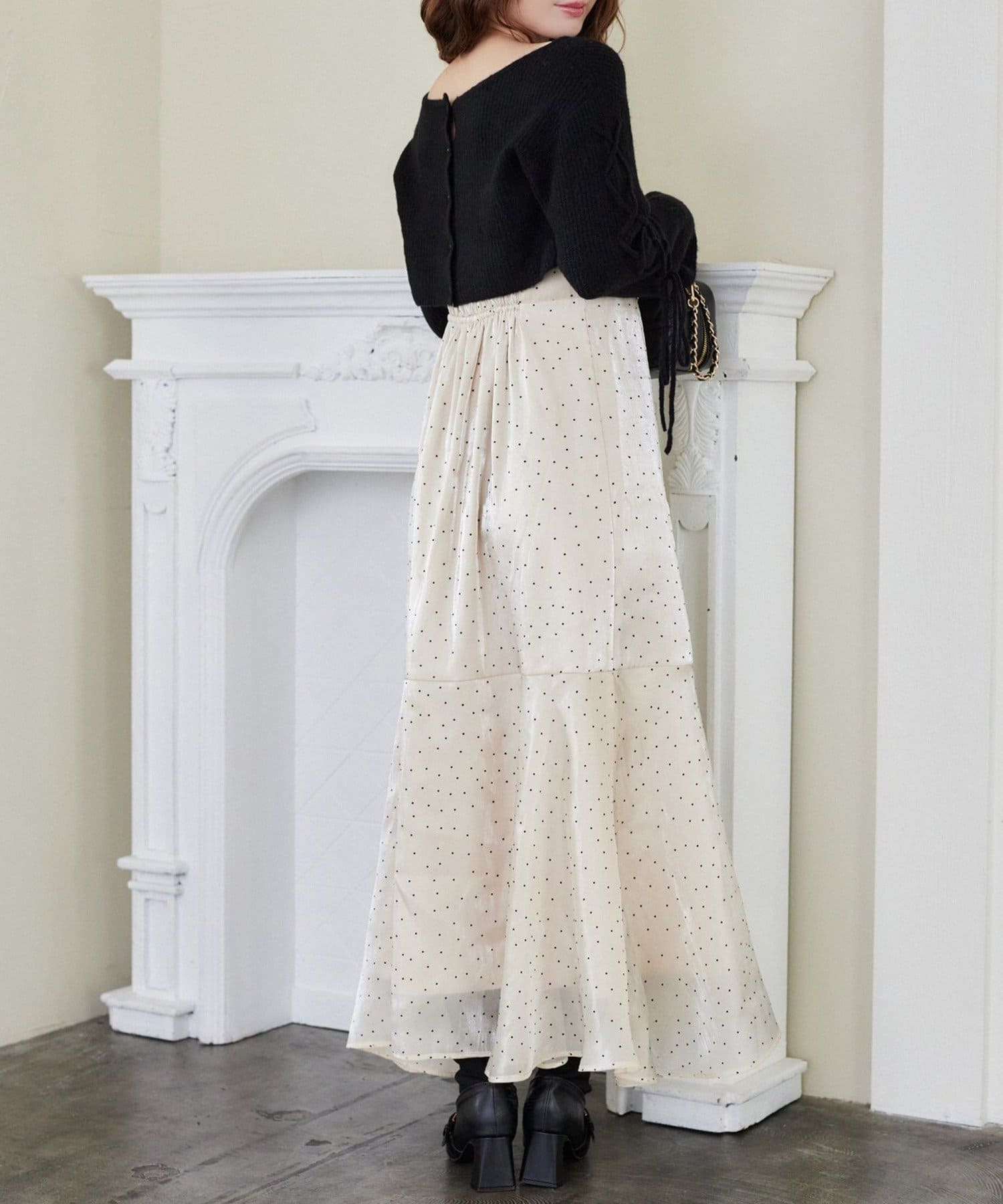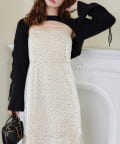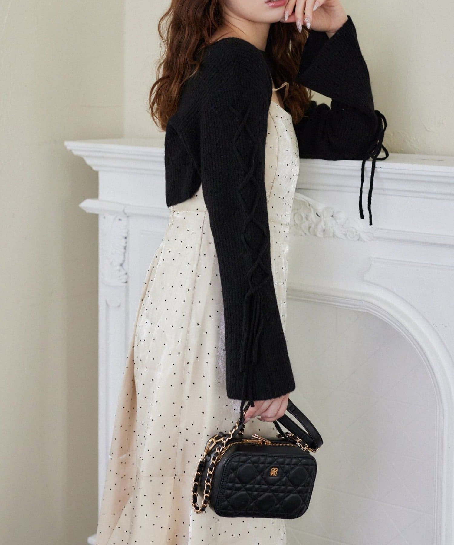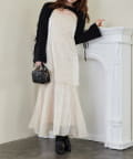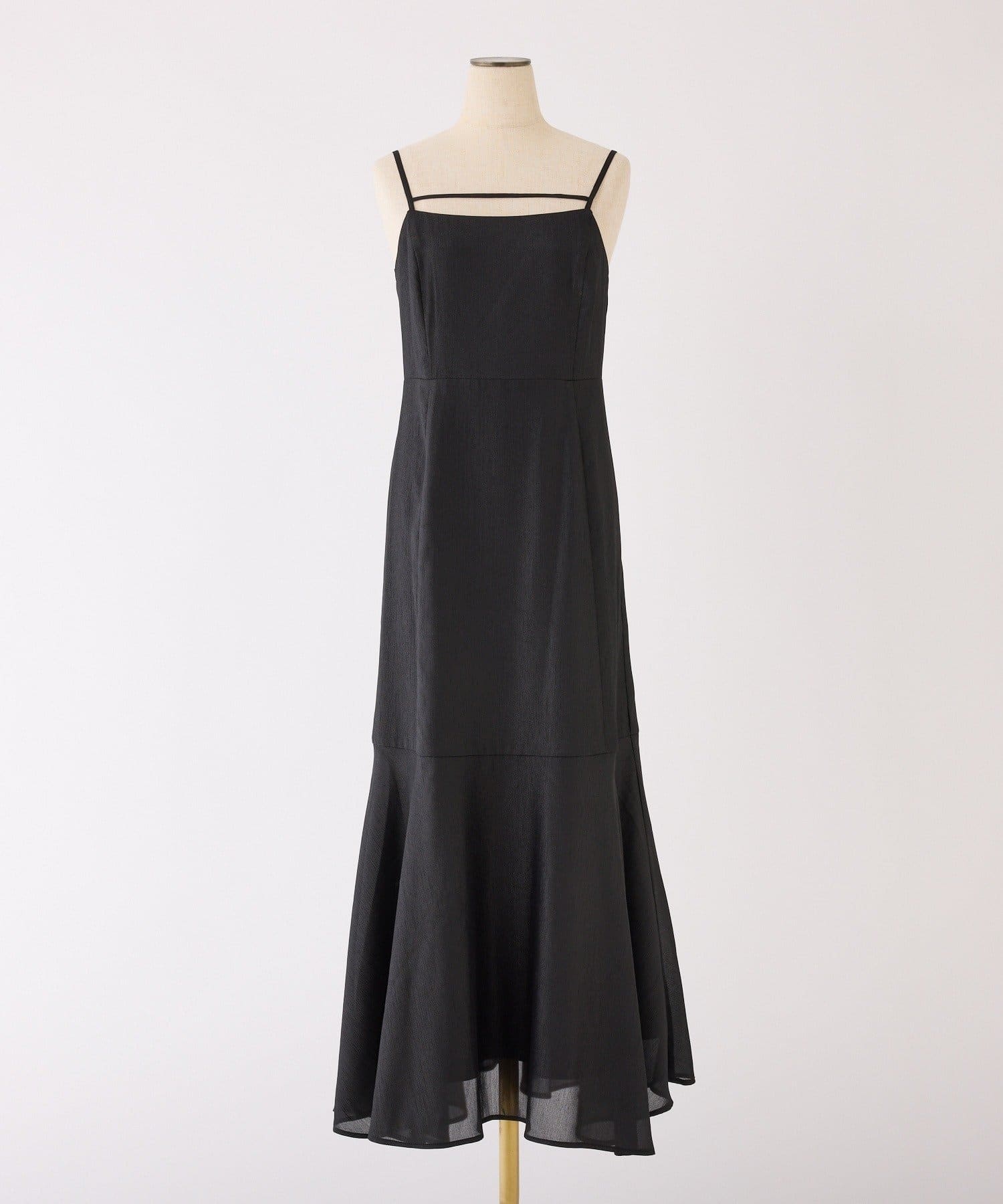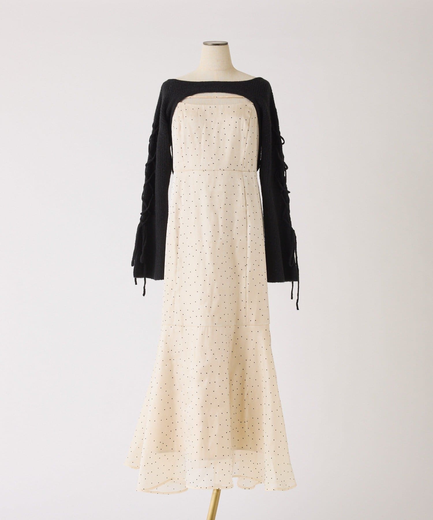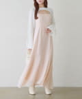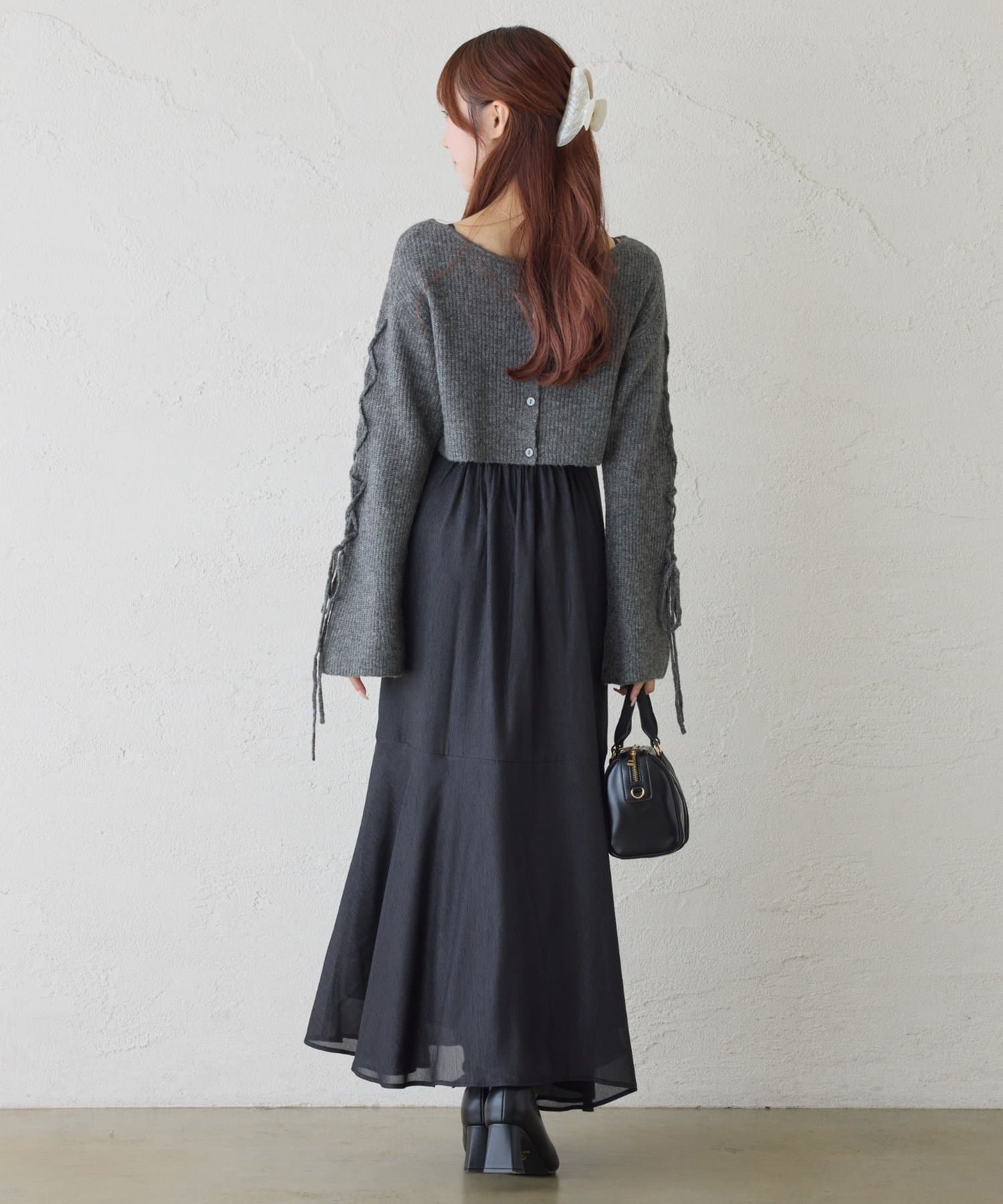 女性らしいマーメイドシルエットが魅力のキャミワンピースに、前後2WAYで着られるカーディガンがセットになったアイテム。