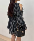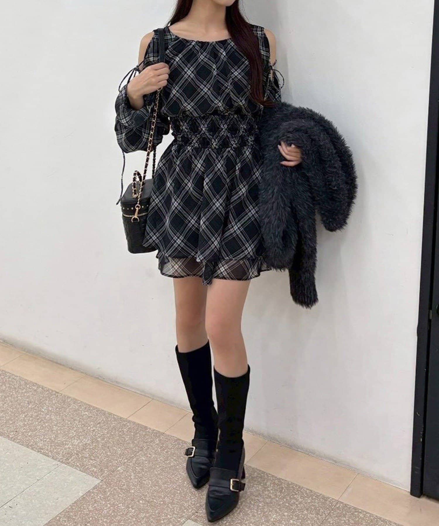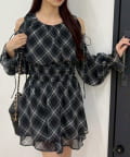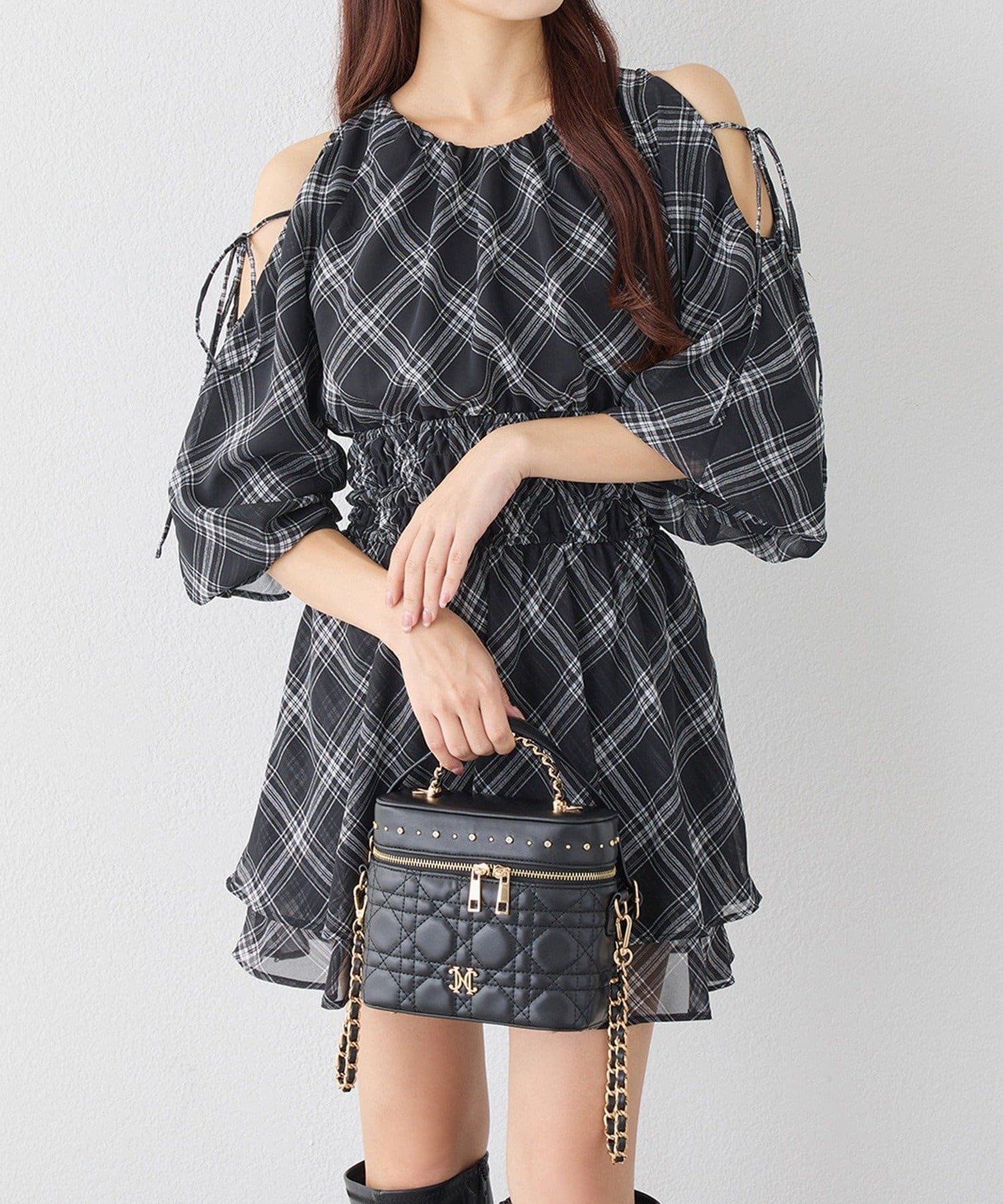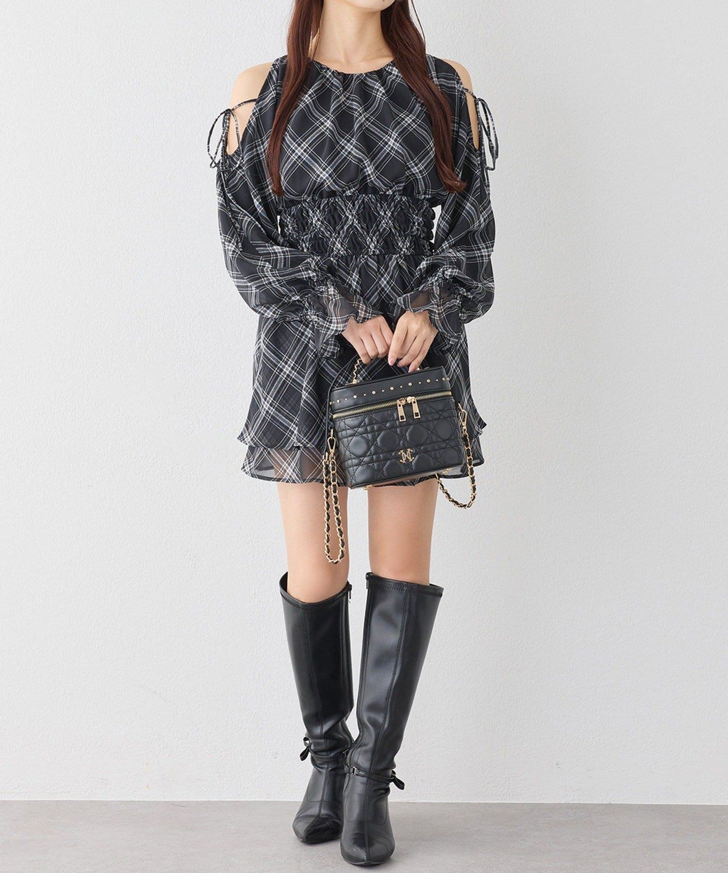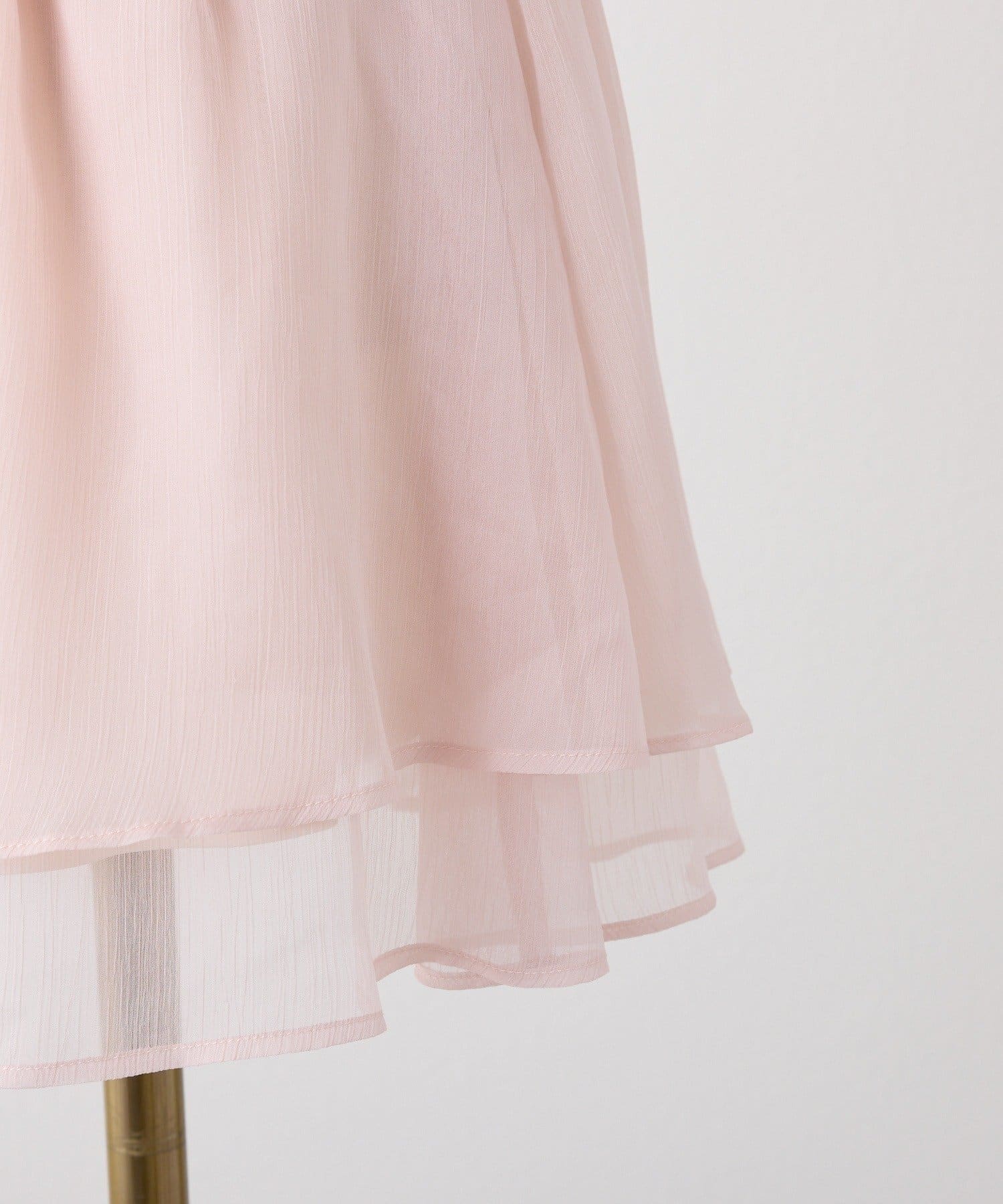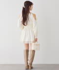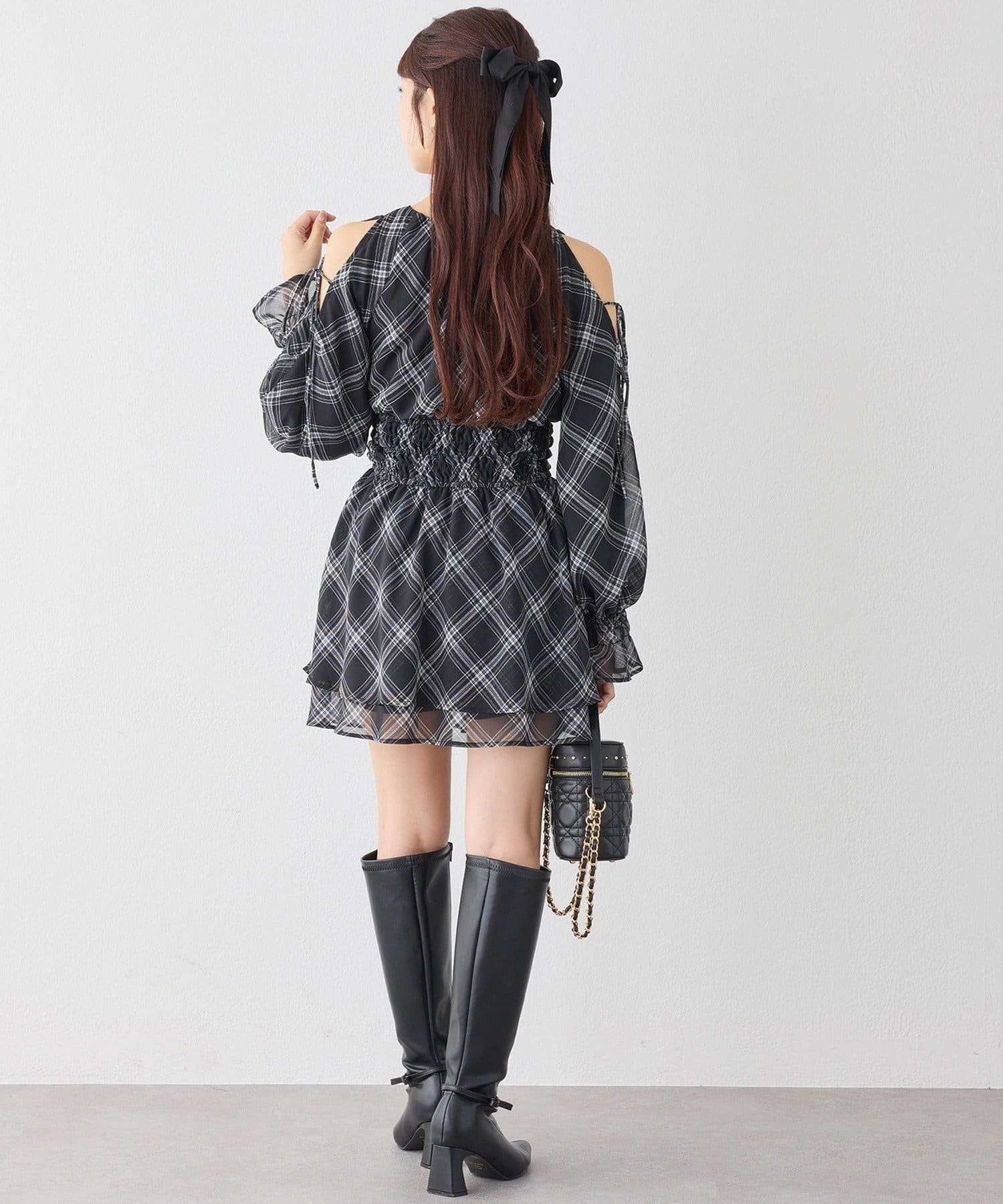 肩や腕まわりをすっきり見せつつ、ウエストのギャザーで女性らしいシルエットに仕上げました。