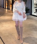 ウエストシャーリングでメリハリをつけたアメリカンスリーブチュニック。