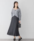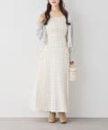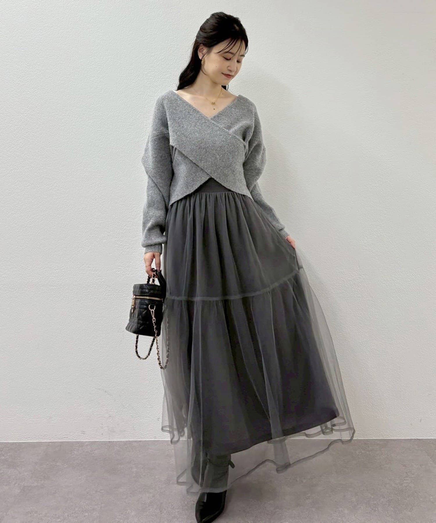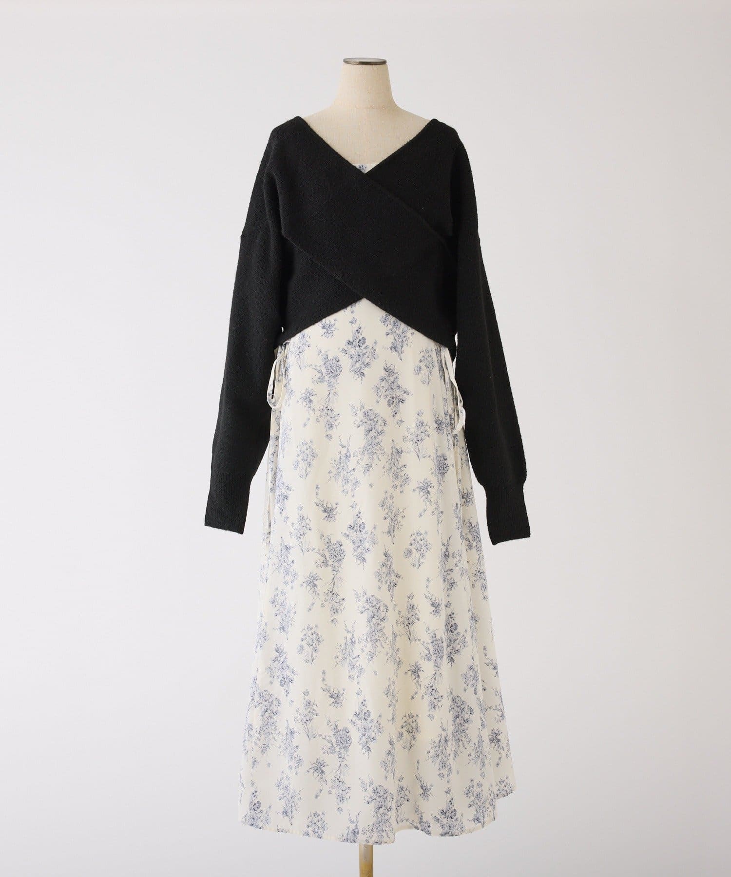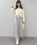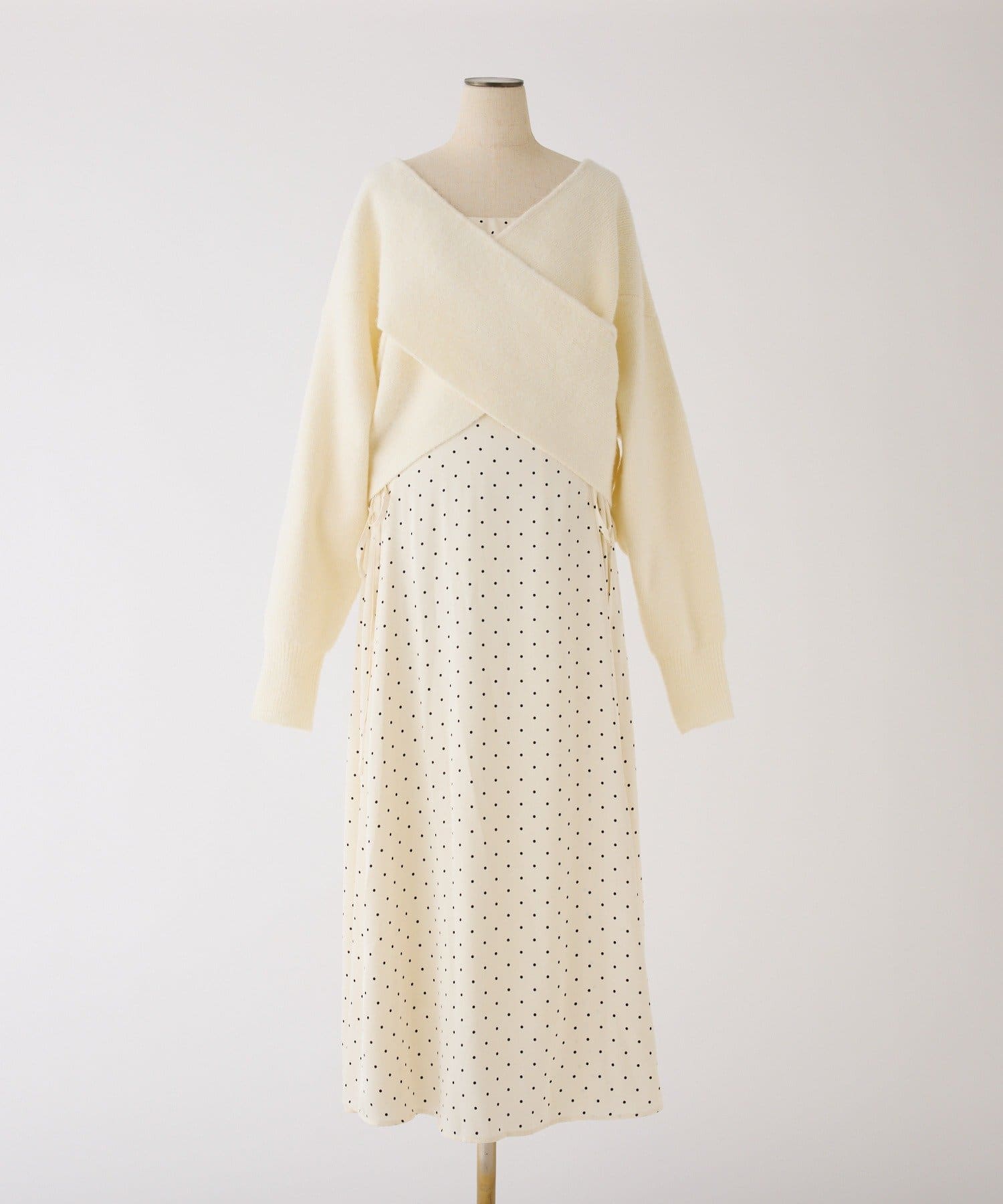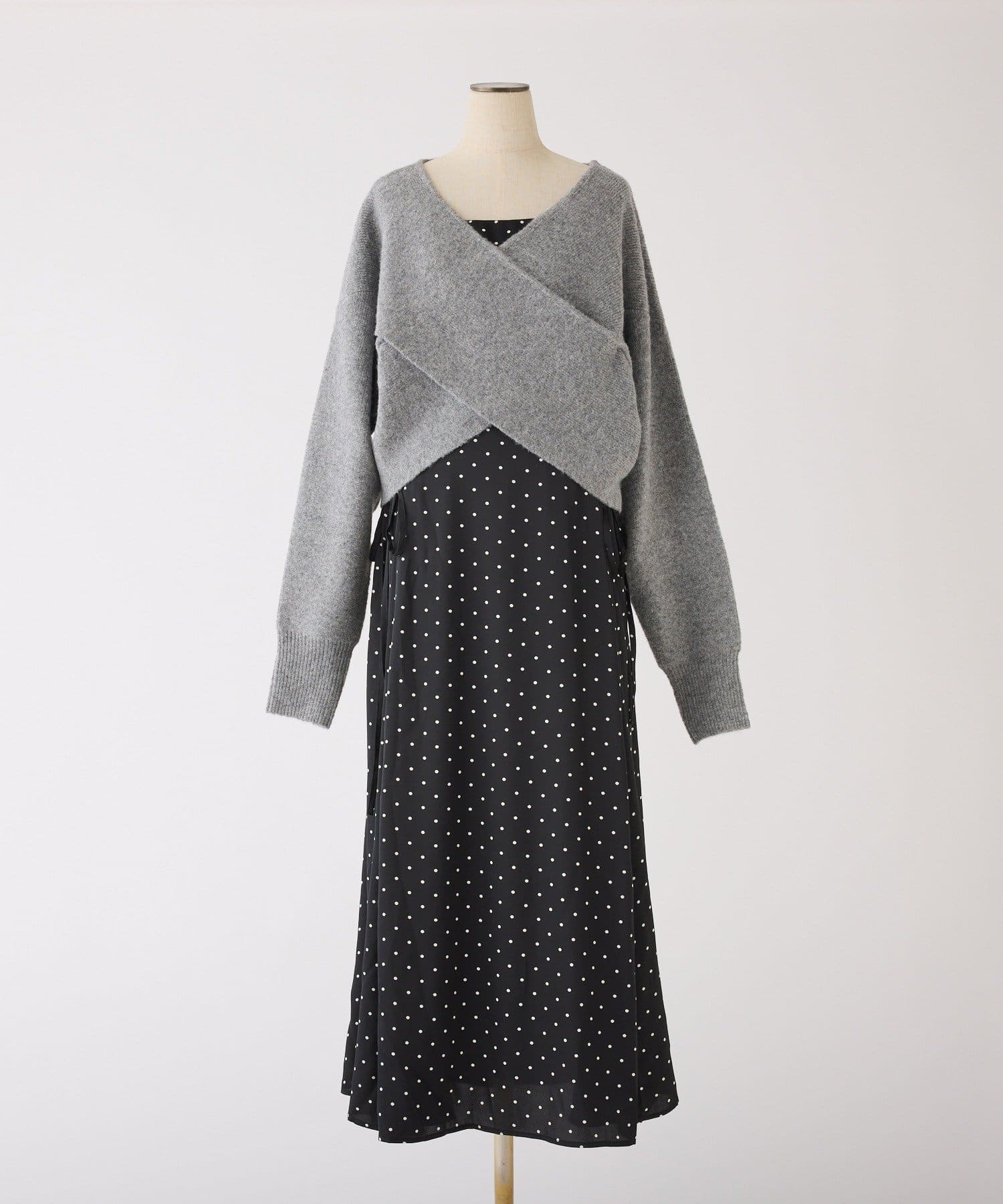 クロスデザインニットと、サイドレースアップがポイントのキャミロングワンピースのセットアイテム。