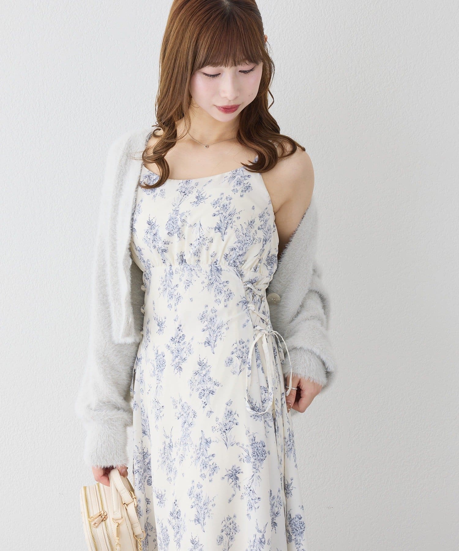 クロスニット&サイドレースアップキャミワンピセット