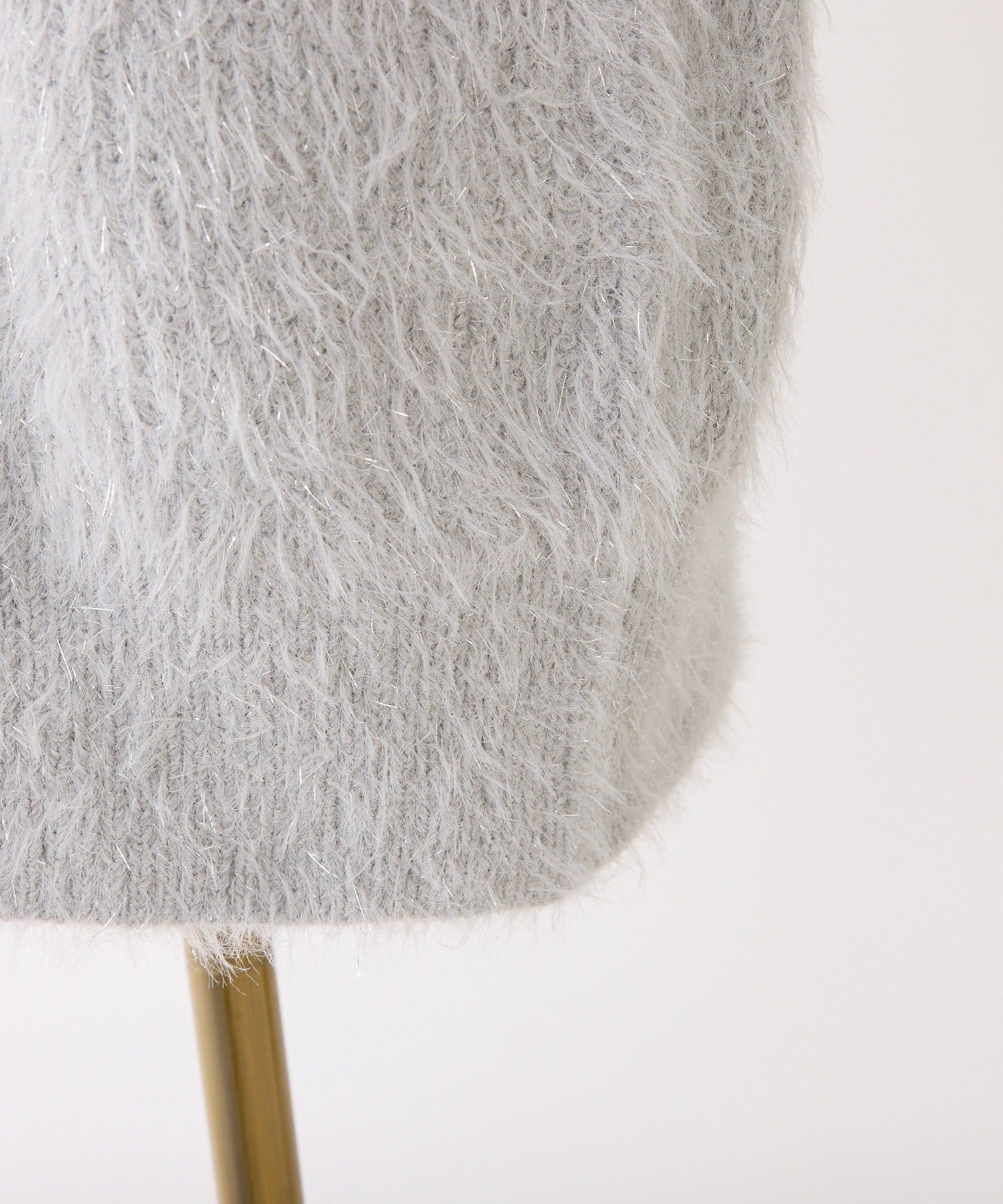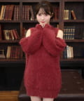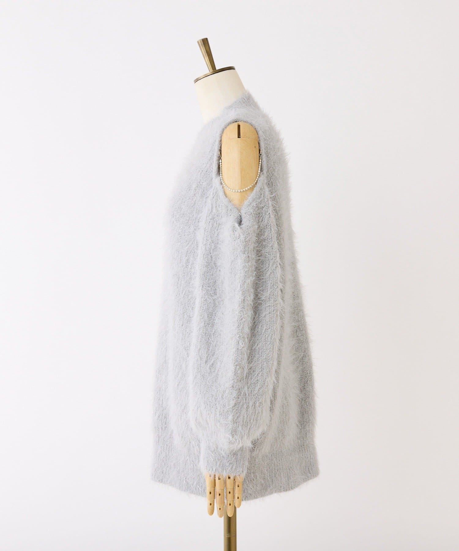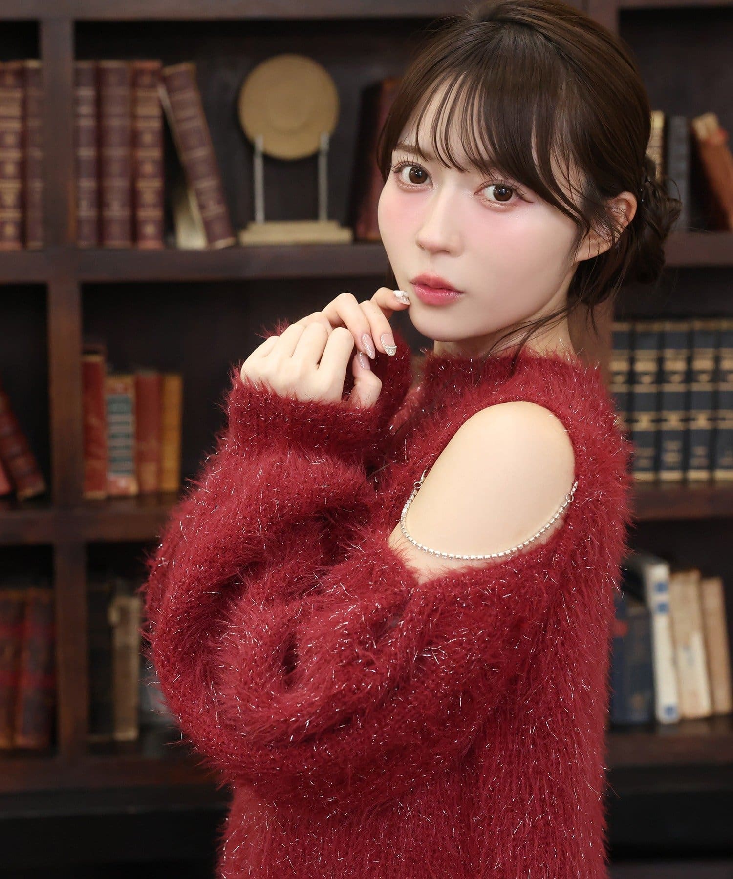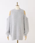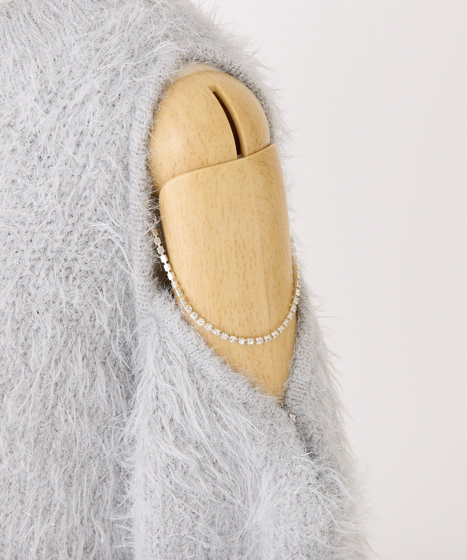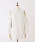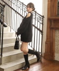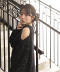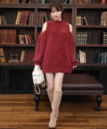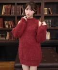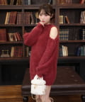 肩あきデザインにキラキラチェーンをあしらったミニニットワンピース。