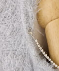 程よく肌見せする肩あきで女性らしさを演出しつつ、チェーンが華やかなアクセントに。