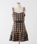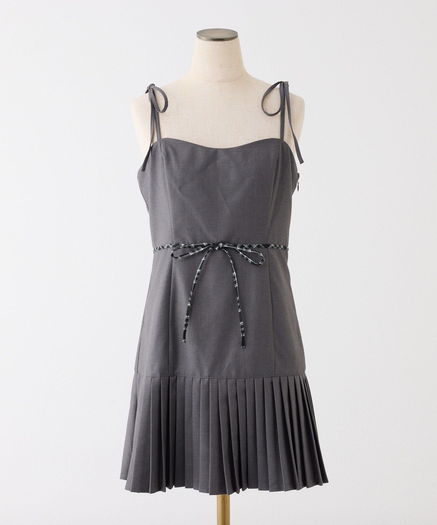 ウエストにあしらったベロアリボンがポイントのミニキャミワンピース。