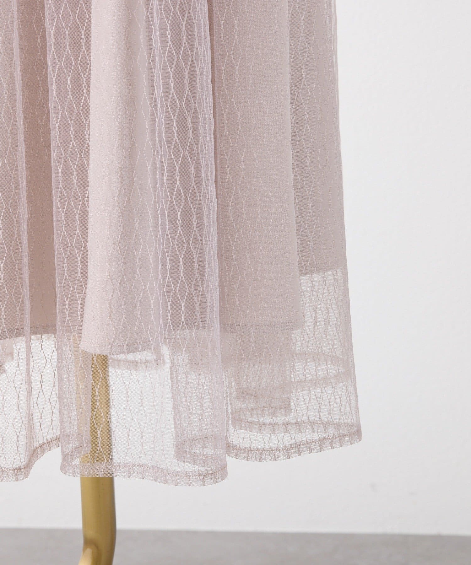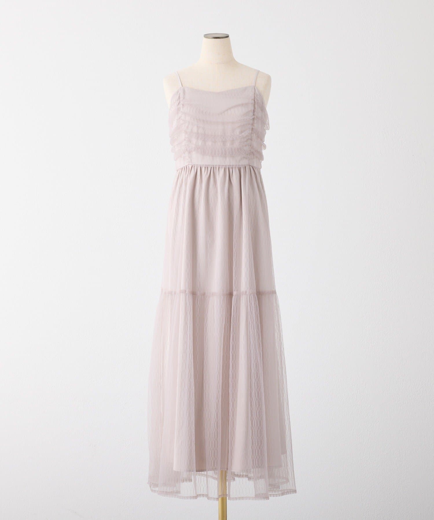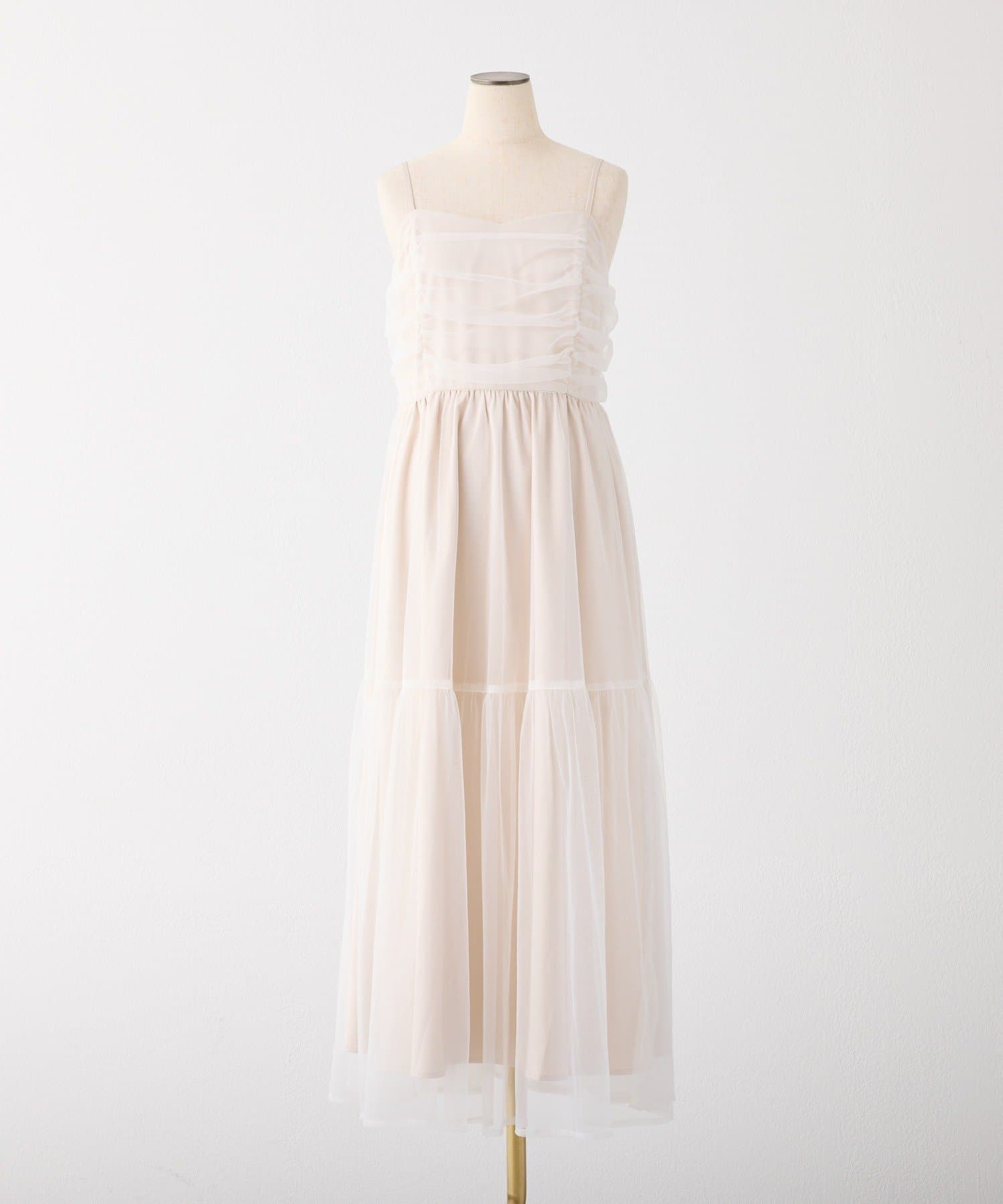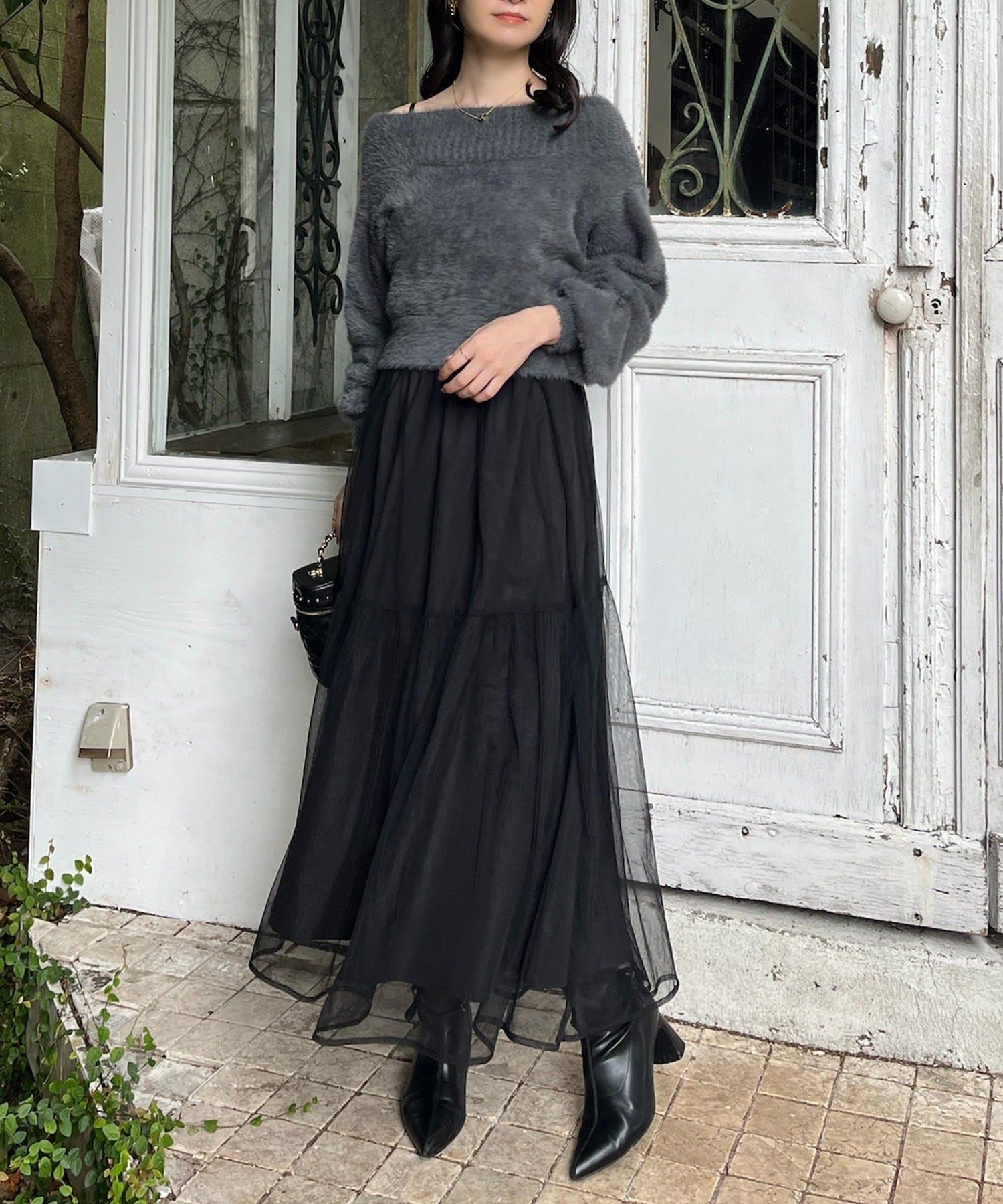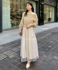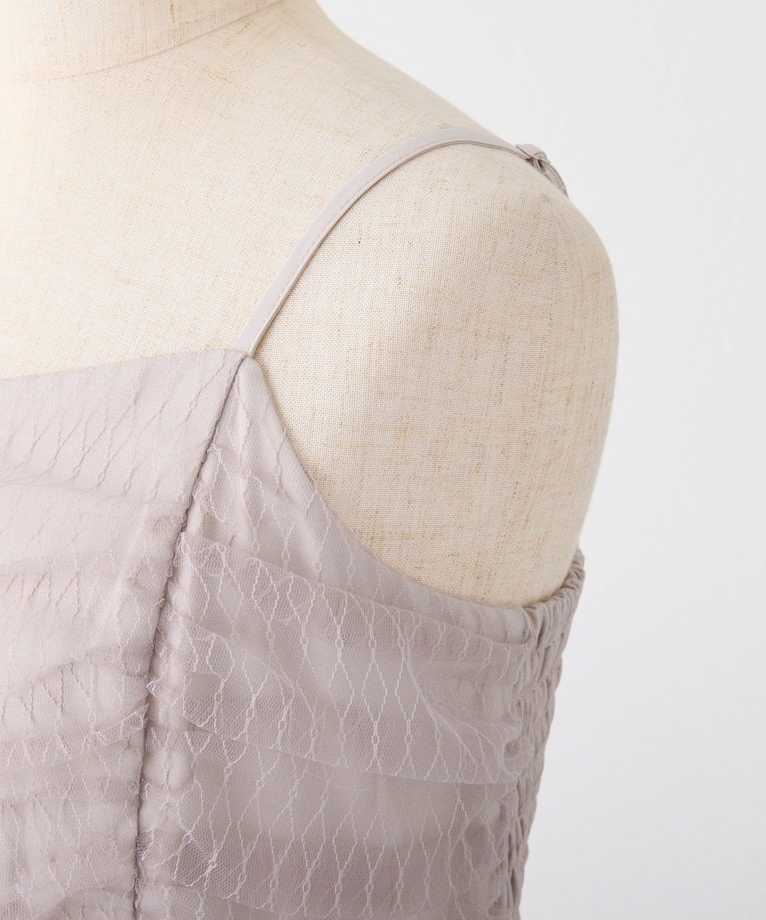チュール重ねのキャミワンピースと、フェザー素材のショートニットがセットになった主役級アイテム。