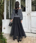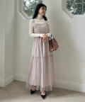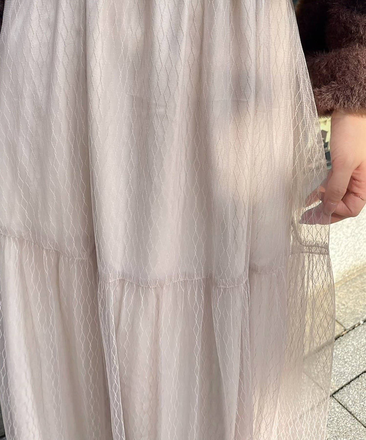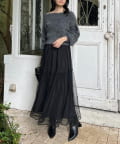 それぞれ単品でも着回し可能!チュールワンピにロングコートを羽織って上品フェミニンにも。