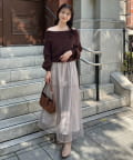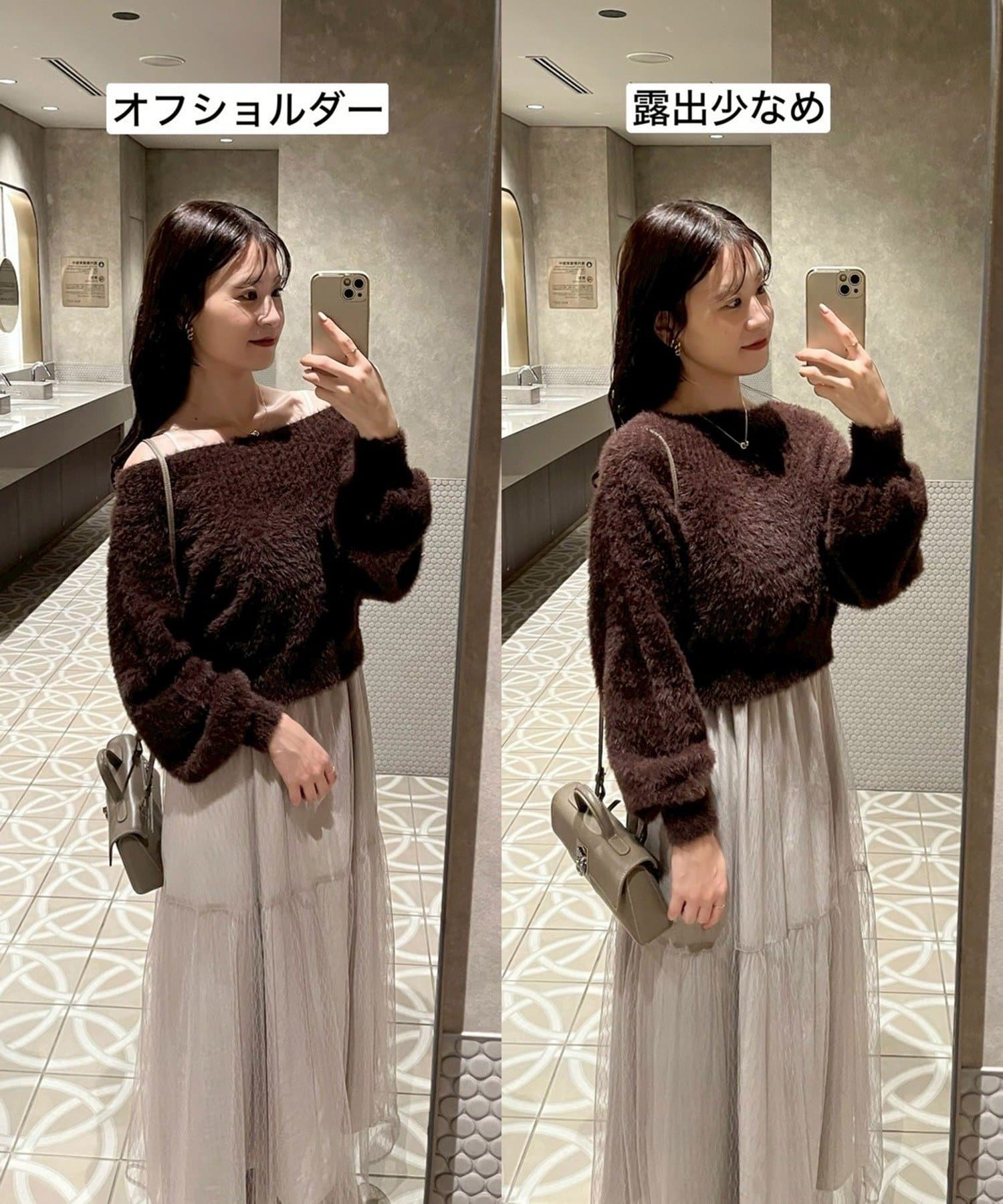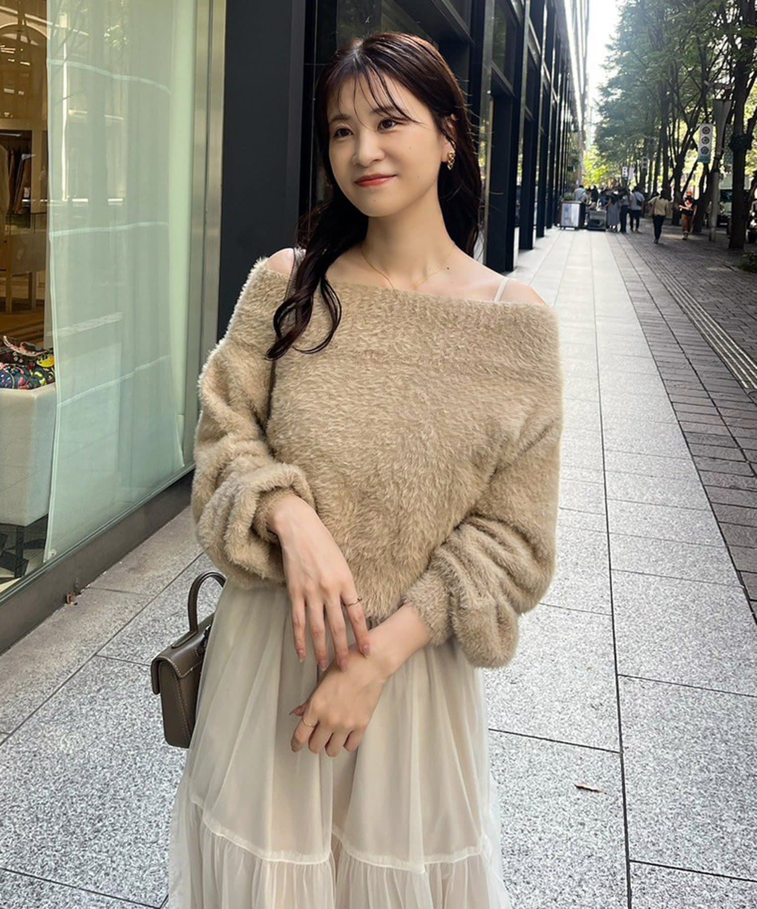 オフショルとしても着られるので、肩の落とし具合はお好みで調整してお楽しみください。