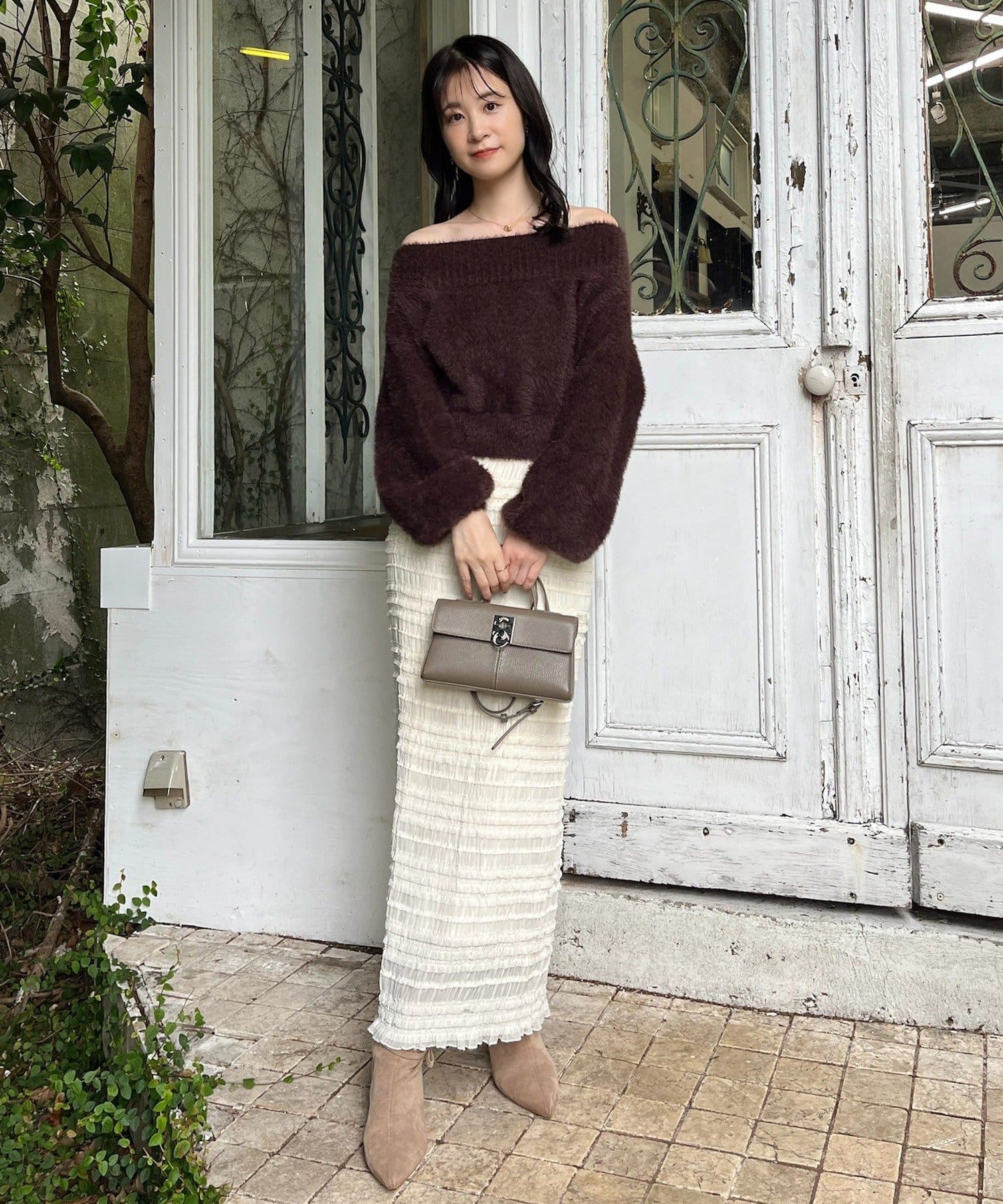 セットで着て、ミニバッグ&ショートブーツを合わせれば、デートやお出かけにぴったりな華やかスタイルに。