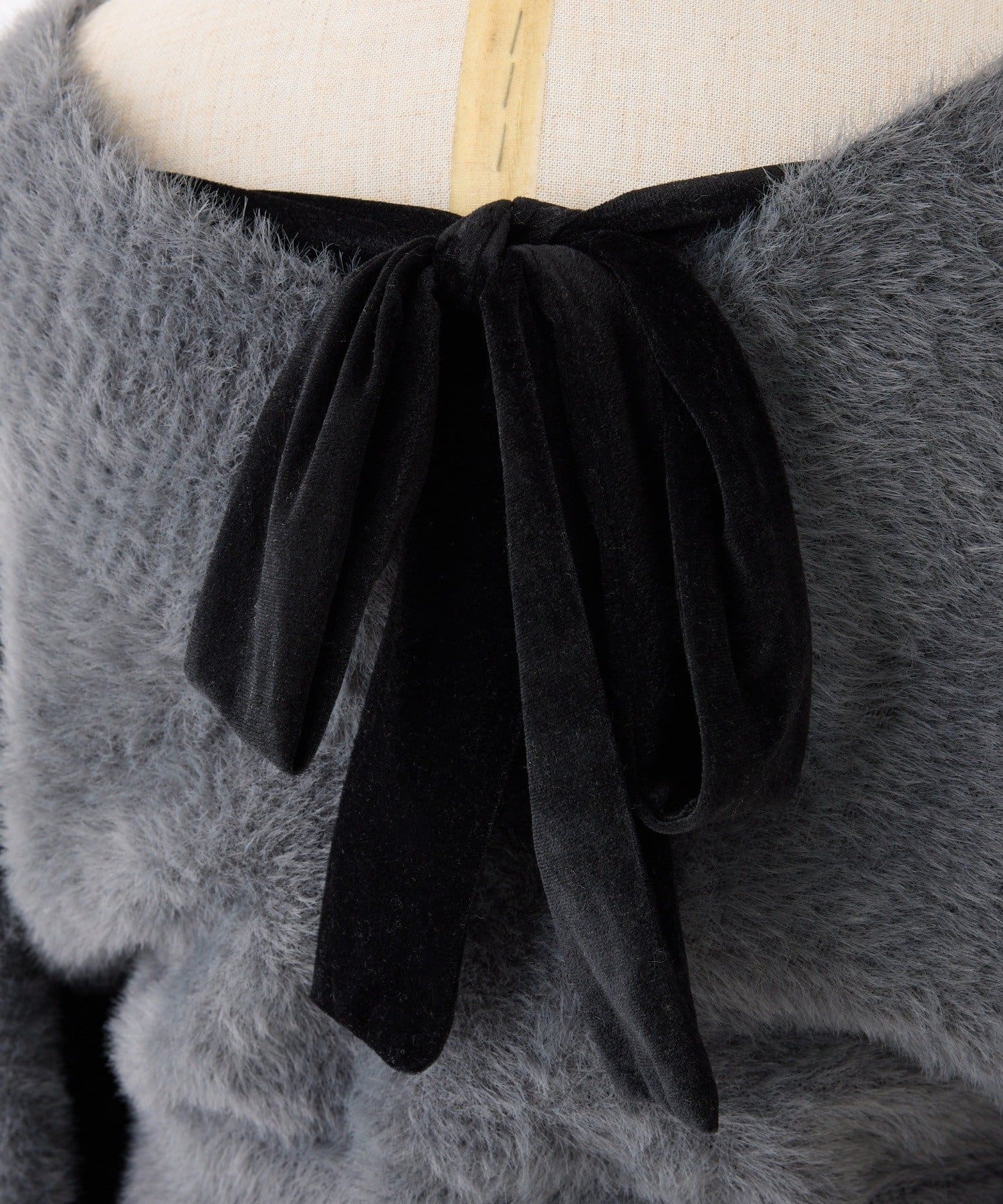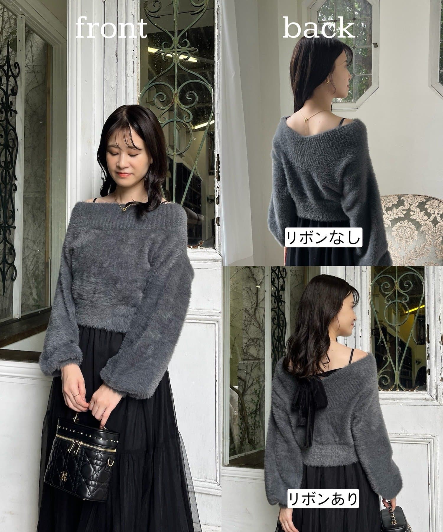 (フロント)ボートネック×(バック)Vネックでリボンあり