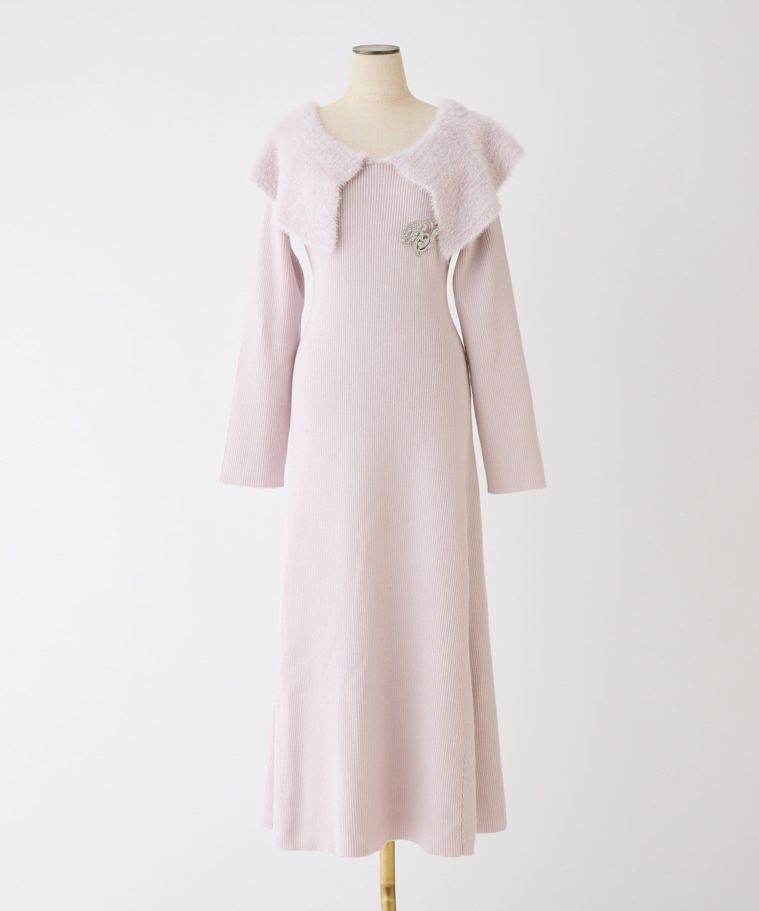 ブローチ付きニットワンピース