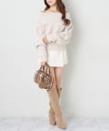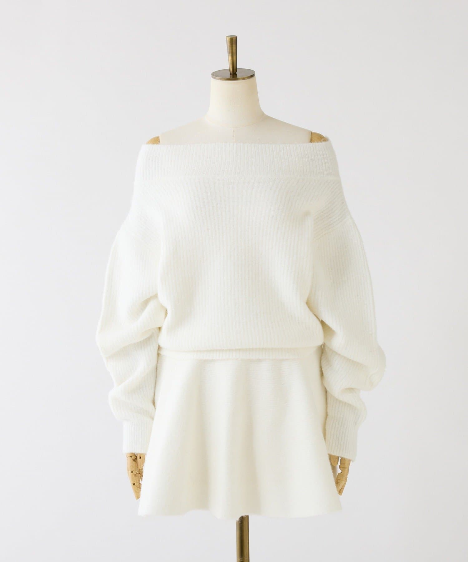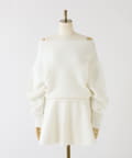 裾に向かってふんわり広がるフレアミニスカートがセットになったフェミニンなアイテム。