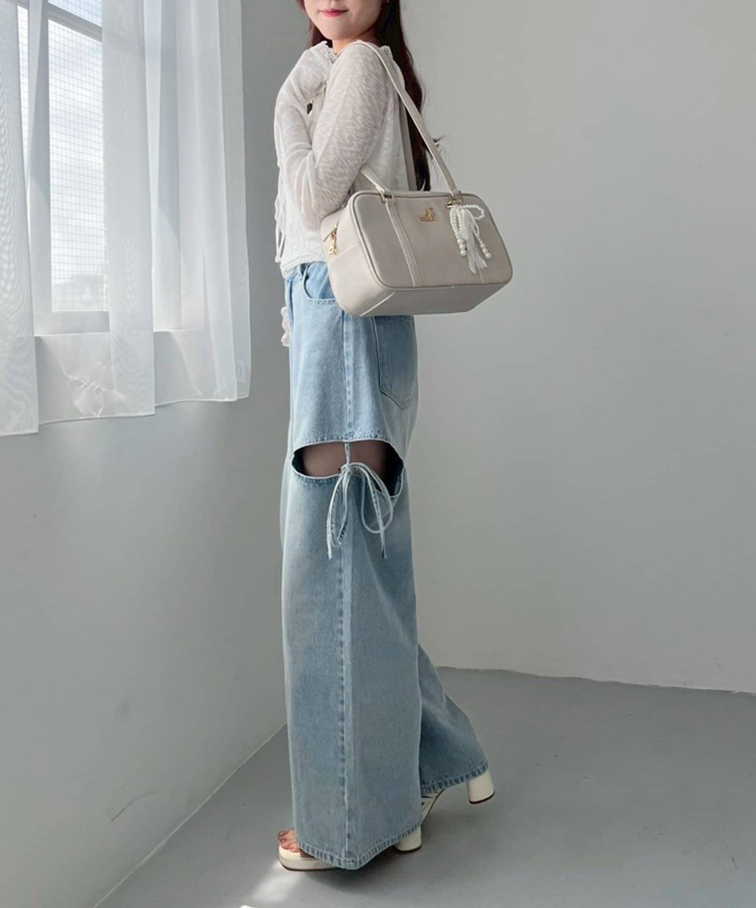 ミニポーチは取り外しができるので、お好きなチャームやキーホルダーを付けても◎