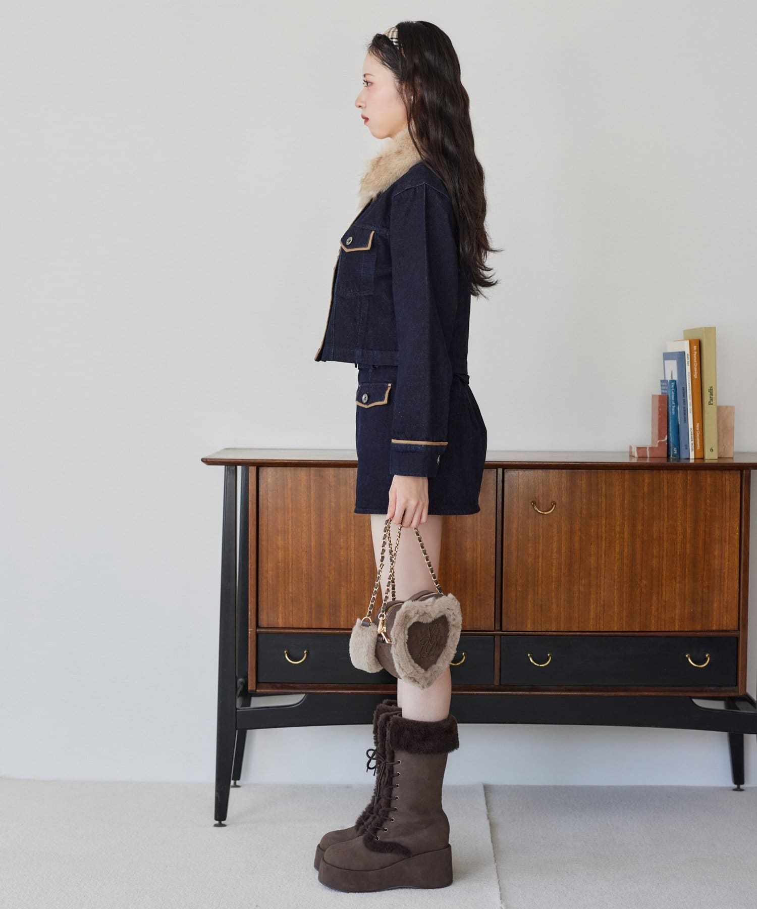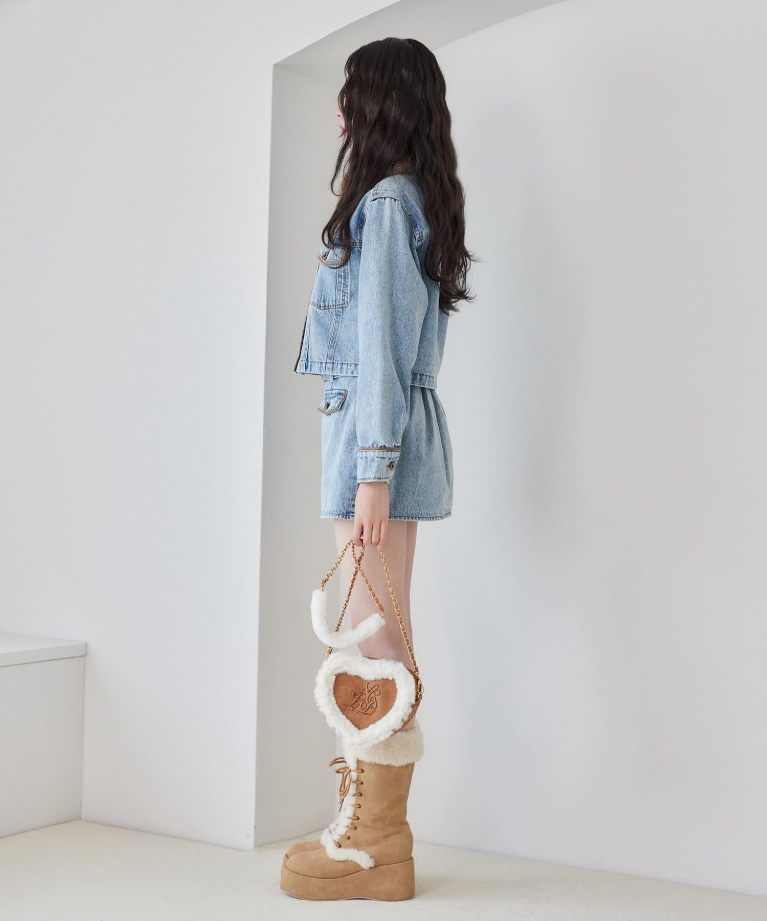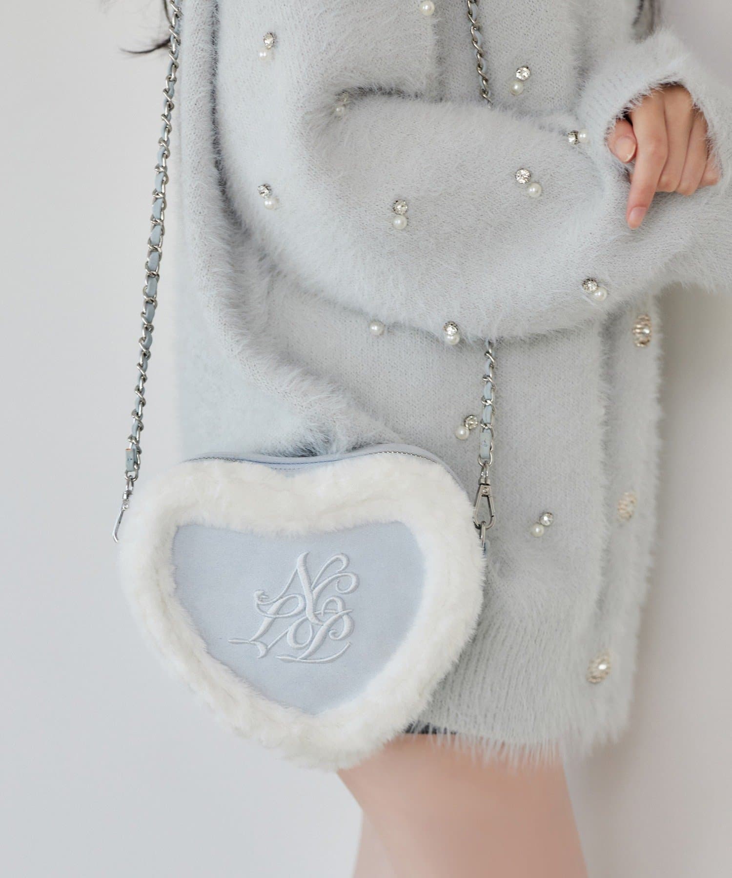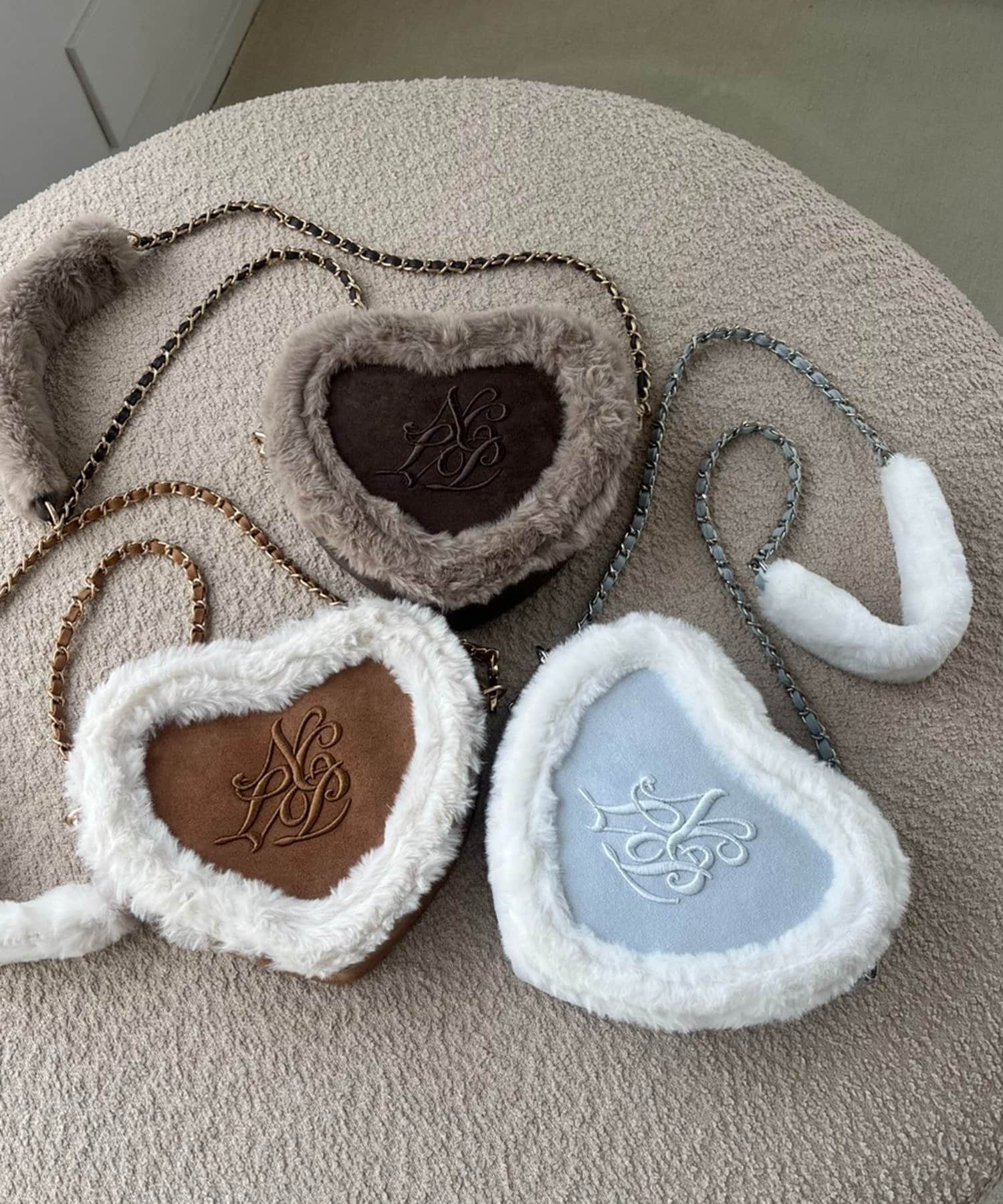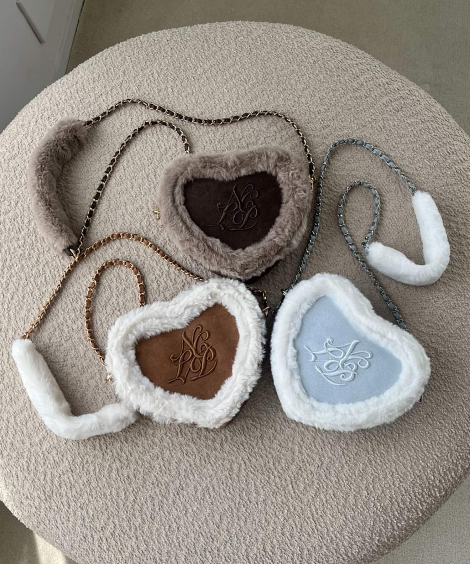 ふわふわのムートン素材とファーを重ねた高見え感たっぷりのハート型ショルダーバッグ♡