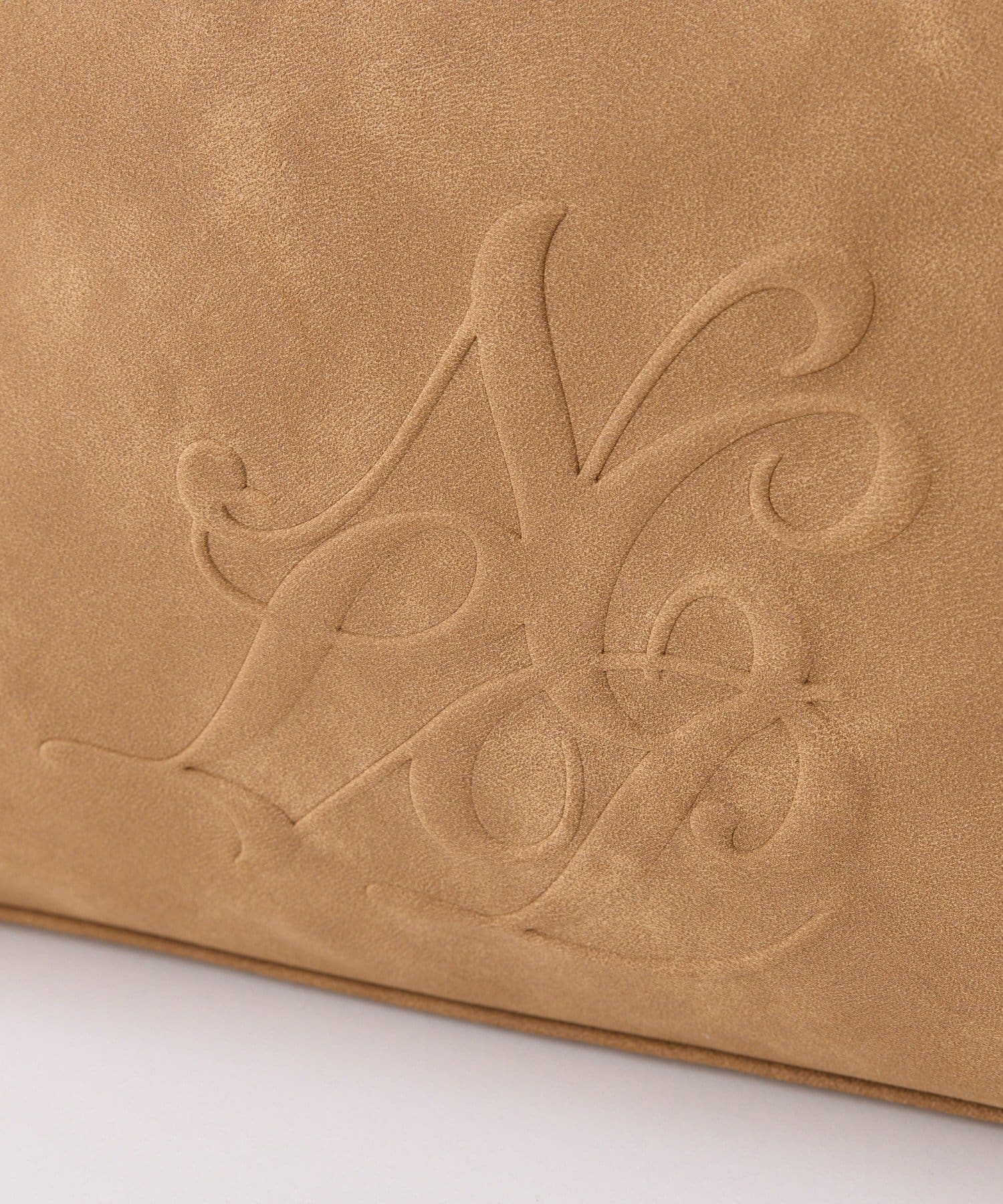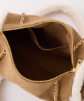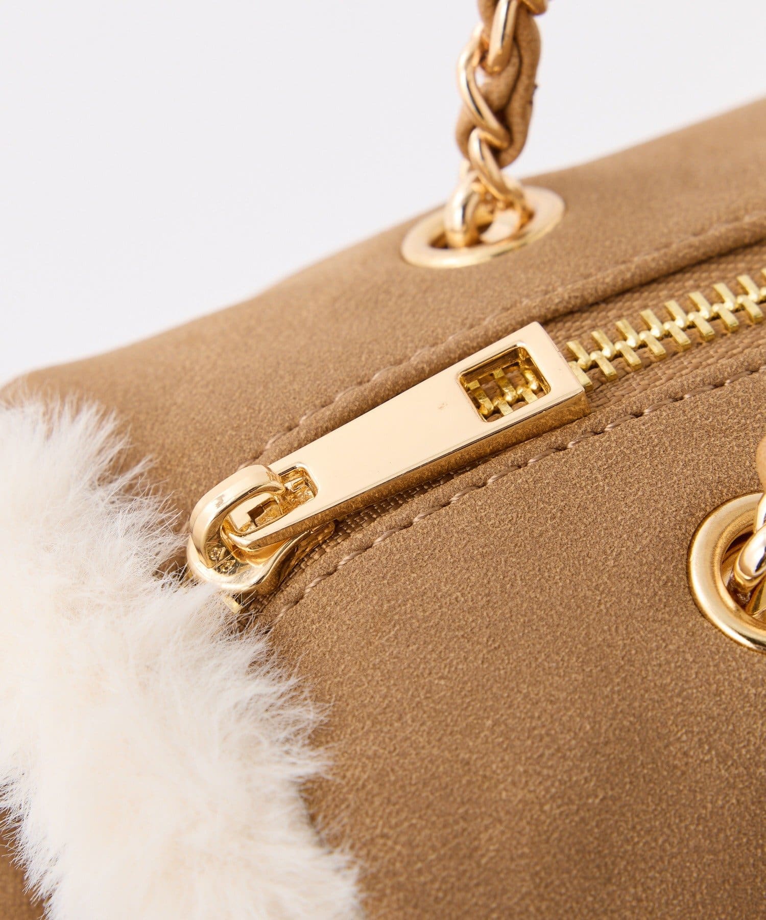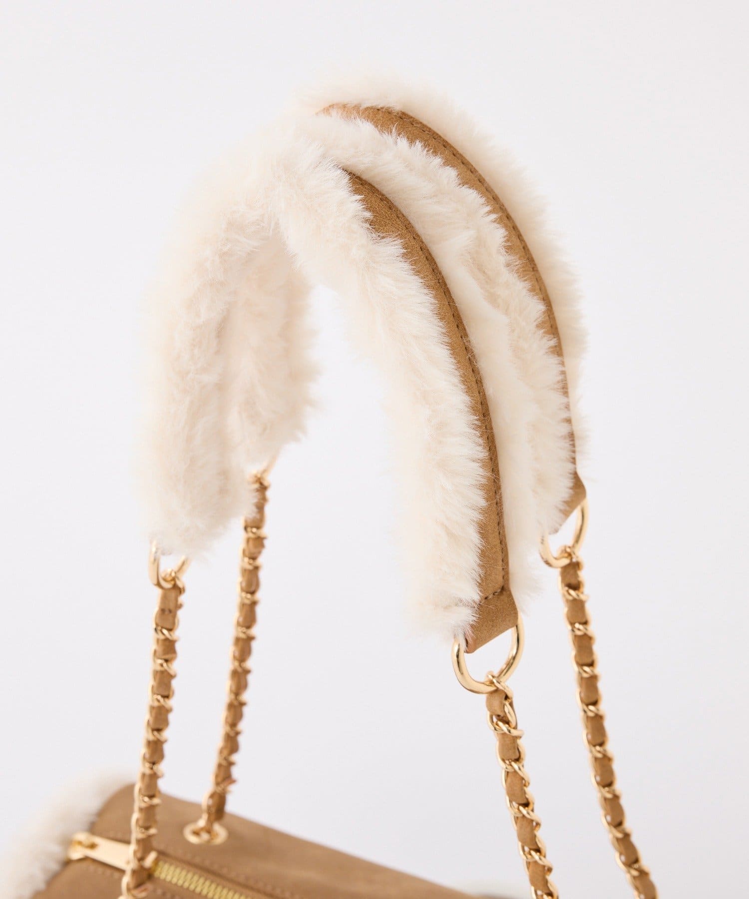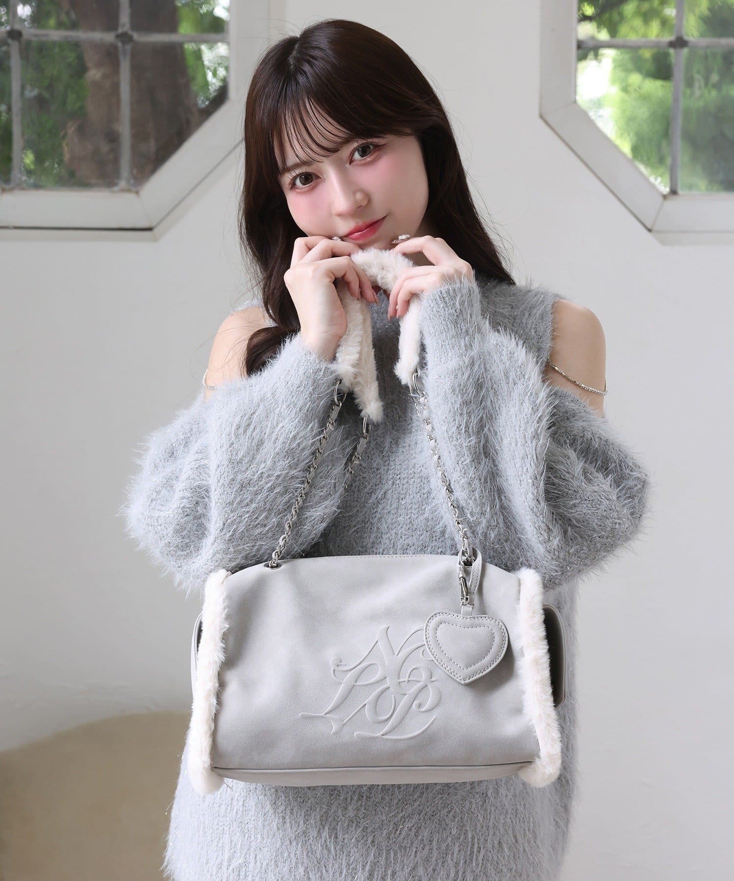 ふんわりとしたムートン素材に、エンボス加工でアクセントを効かせたバッグ。