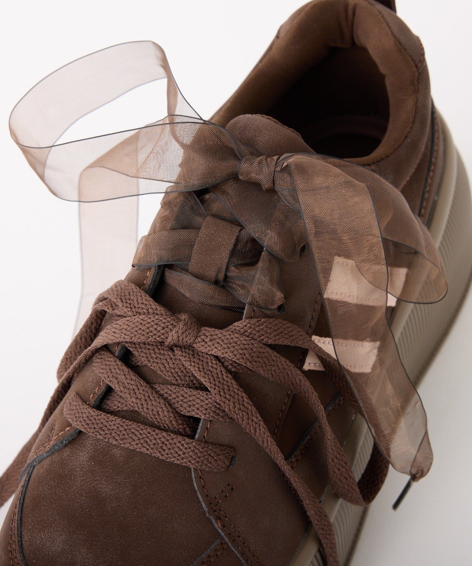 靴紐とリボンがセットになっているので気分によって付け方を変えられます◎