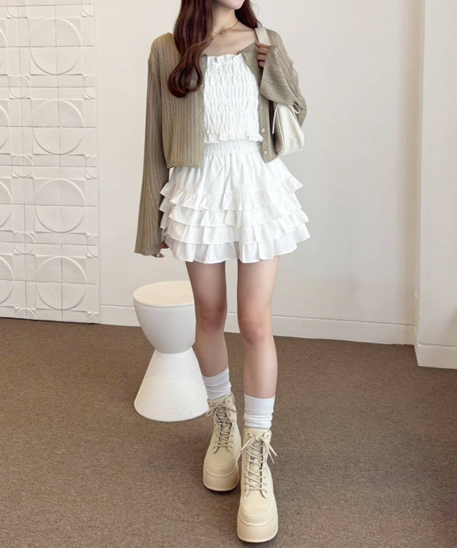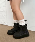 トレンドのソールボリュームのあるデザインが足元にアクセントを加えてくれ、