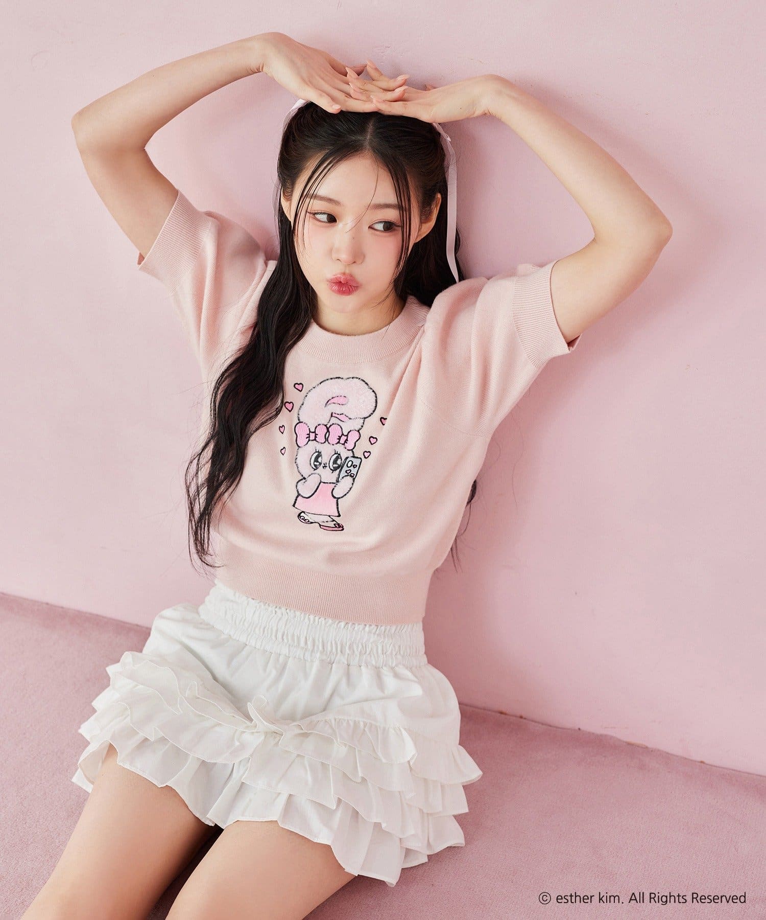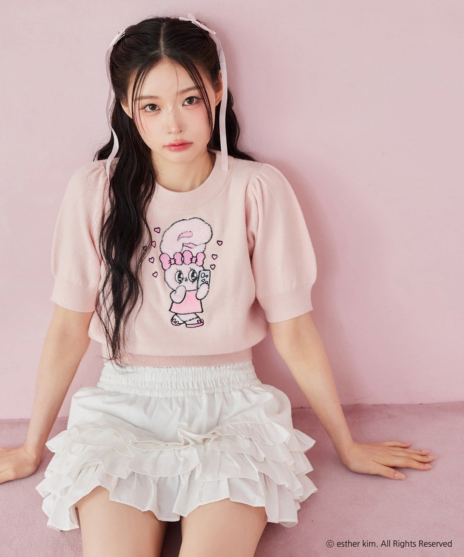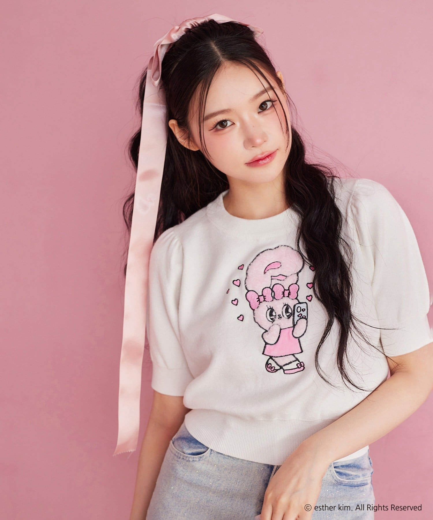 【Esther Bunny コラボ】アップリケ半袖ニット