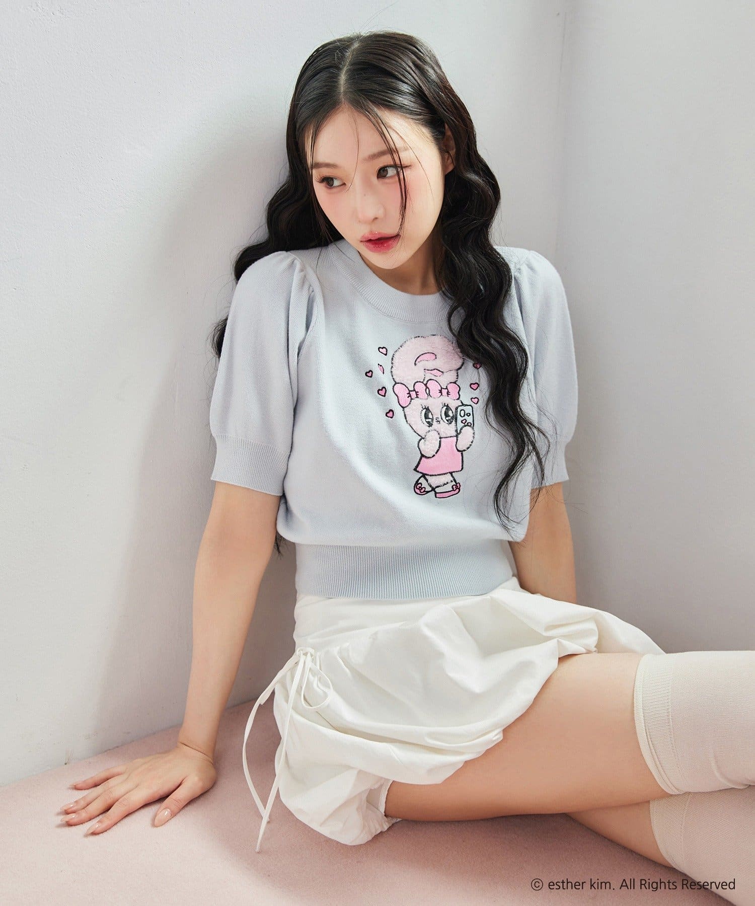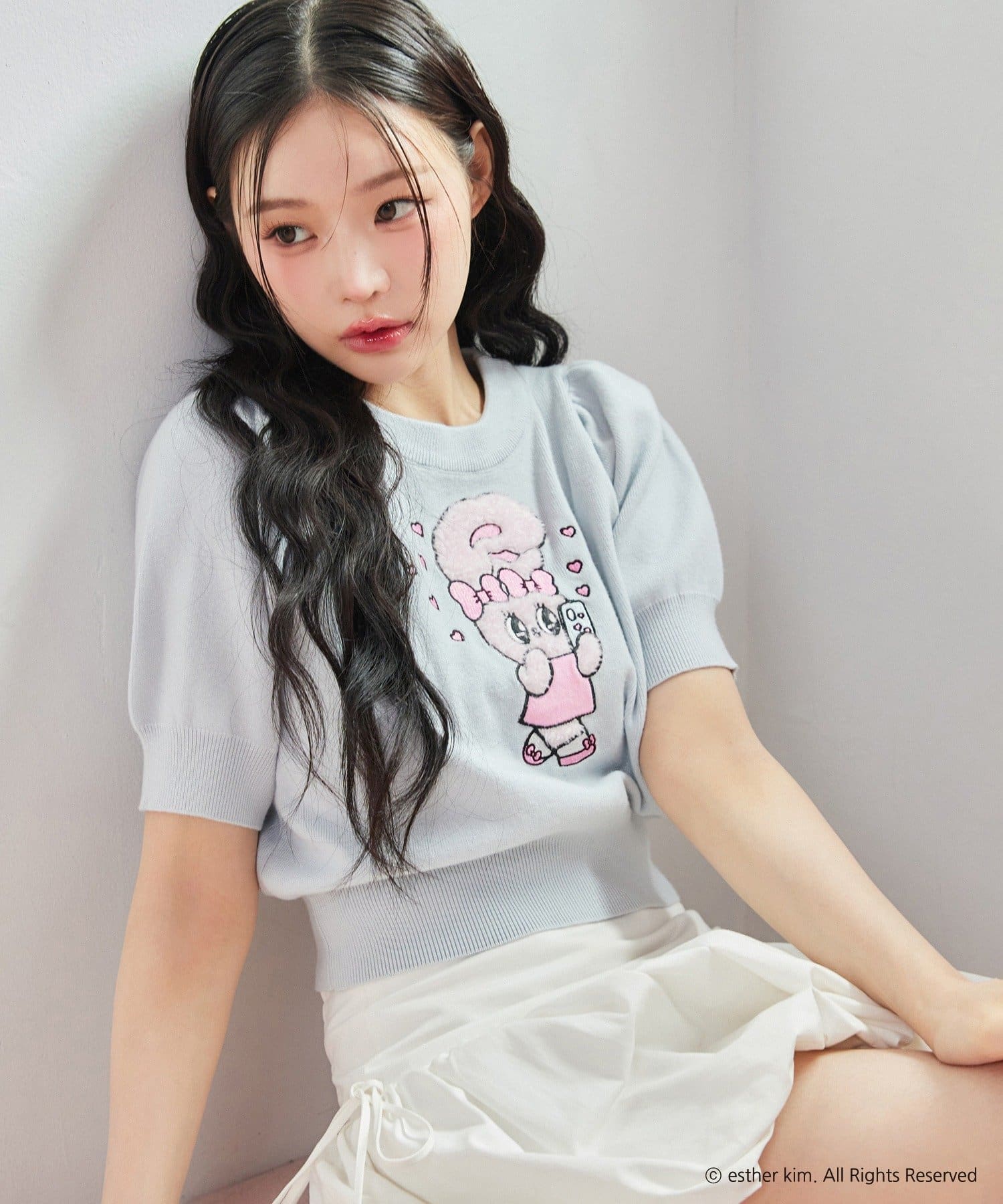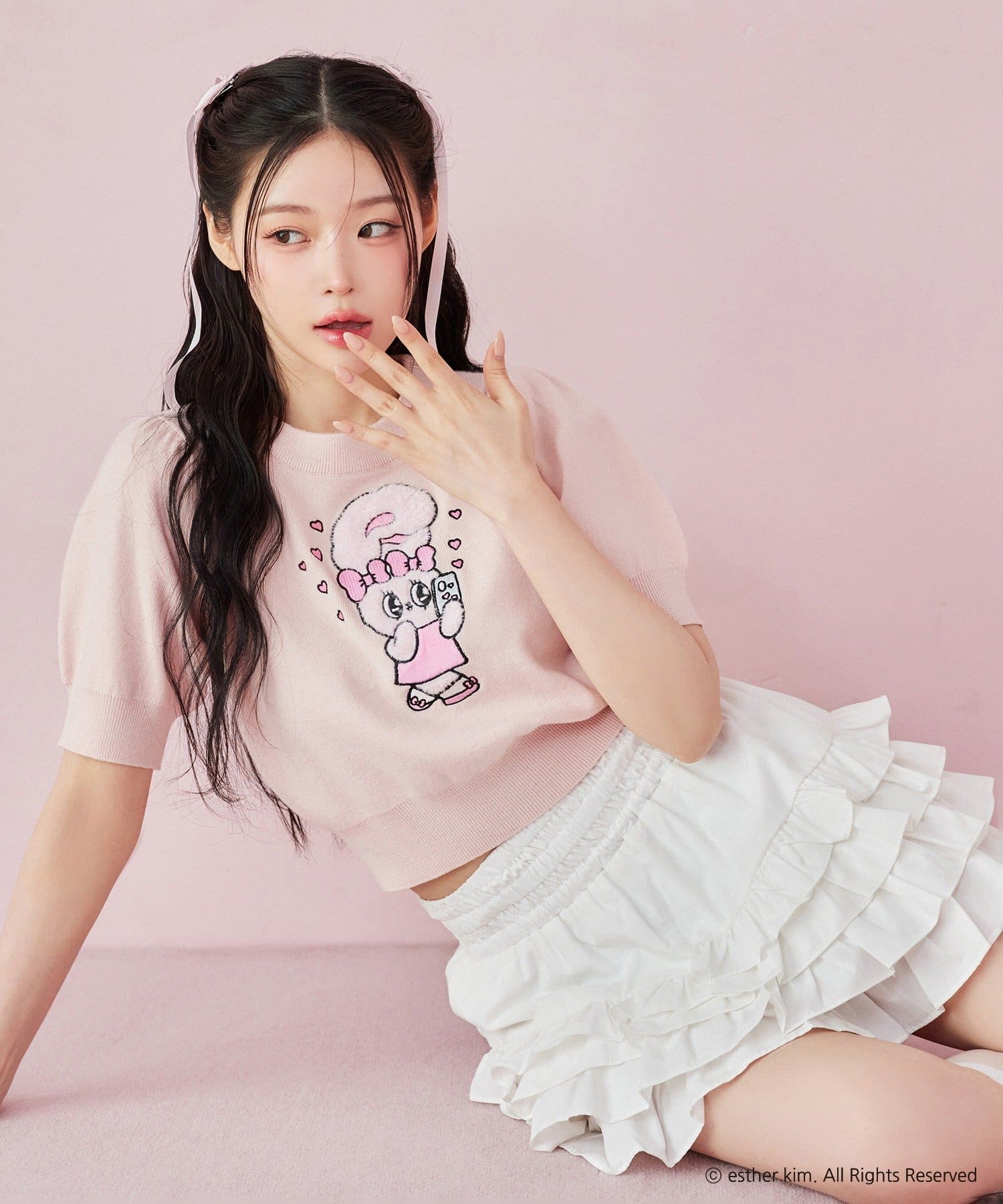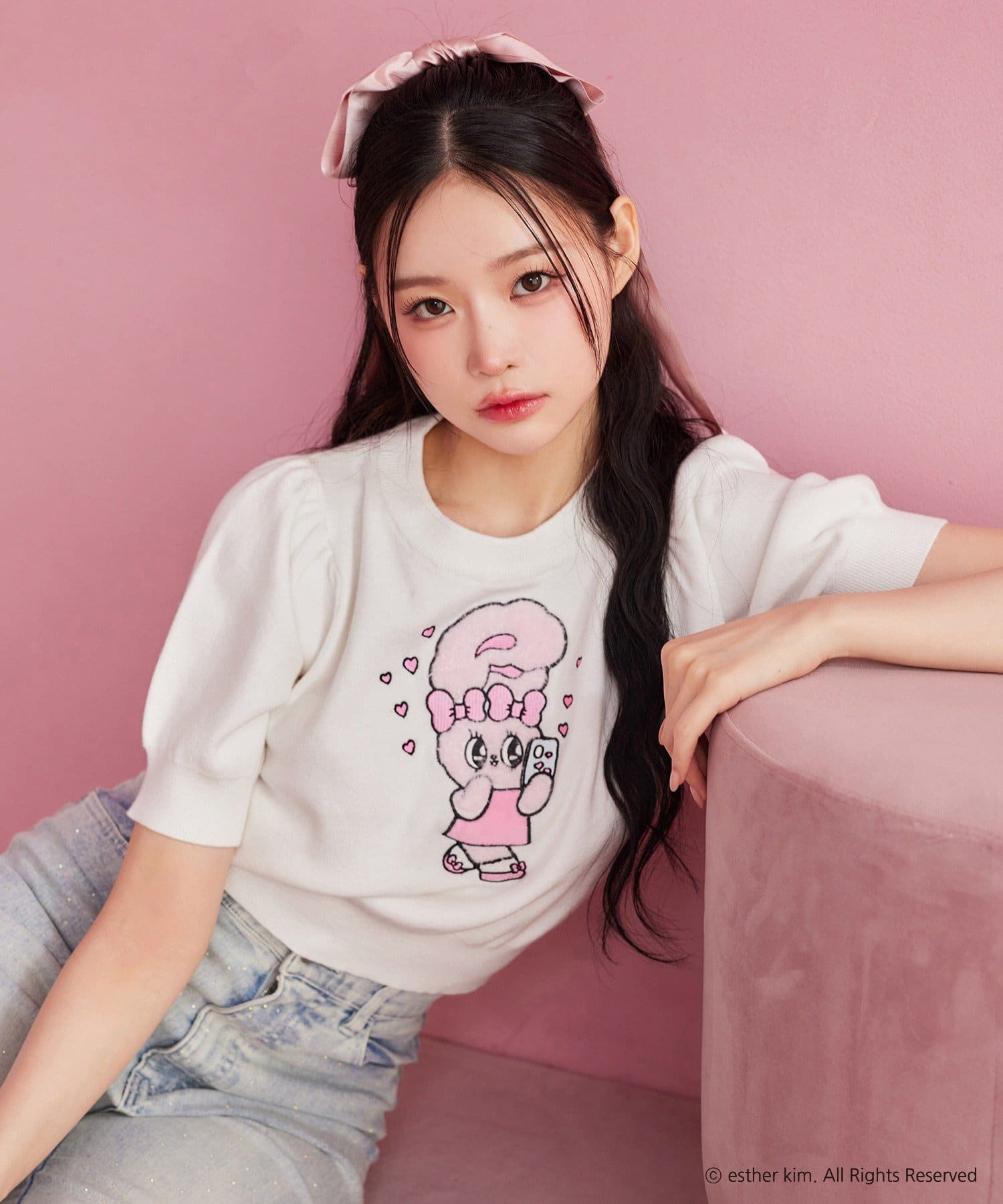 【Esther Bunny コラボ】アップリケ半袖ニット
