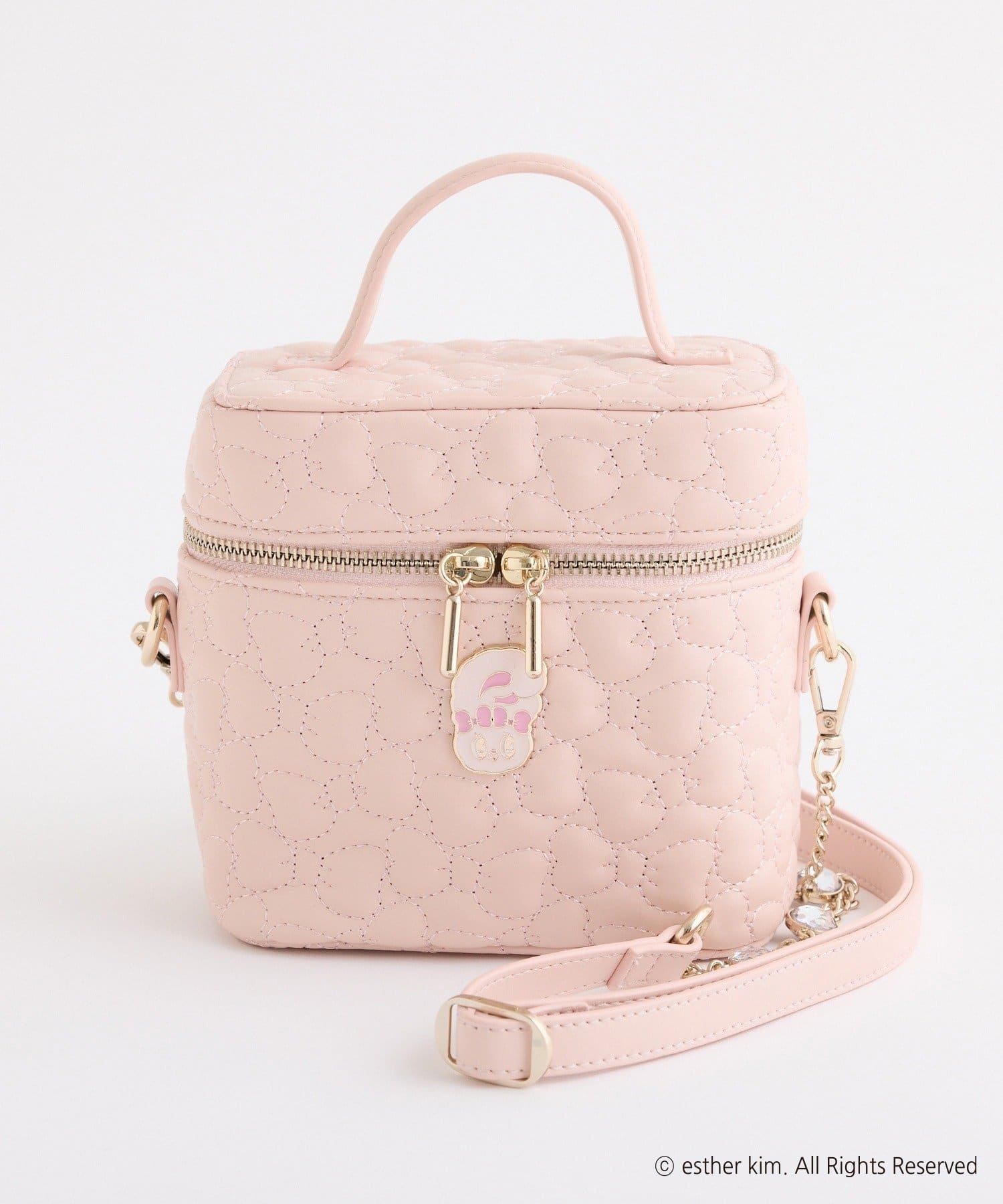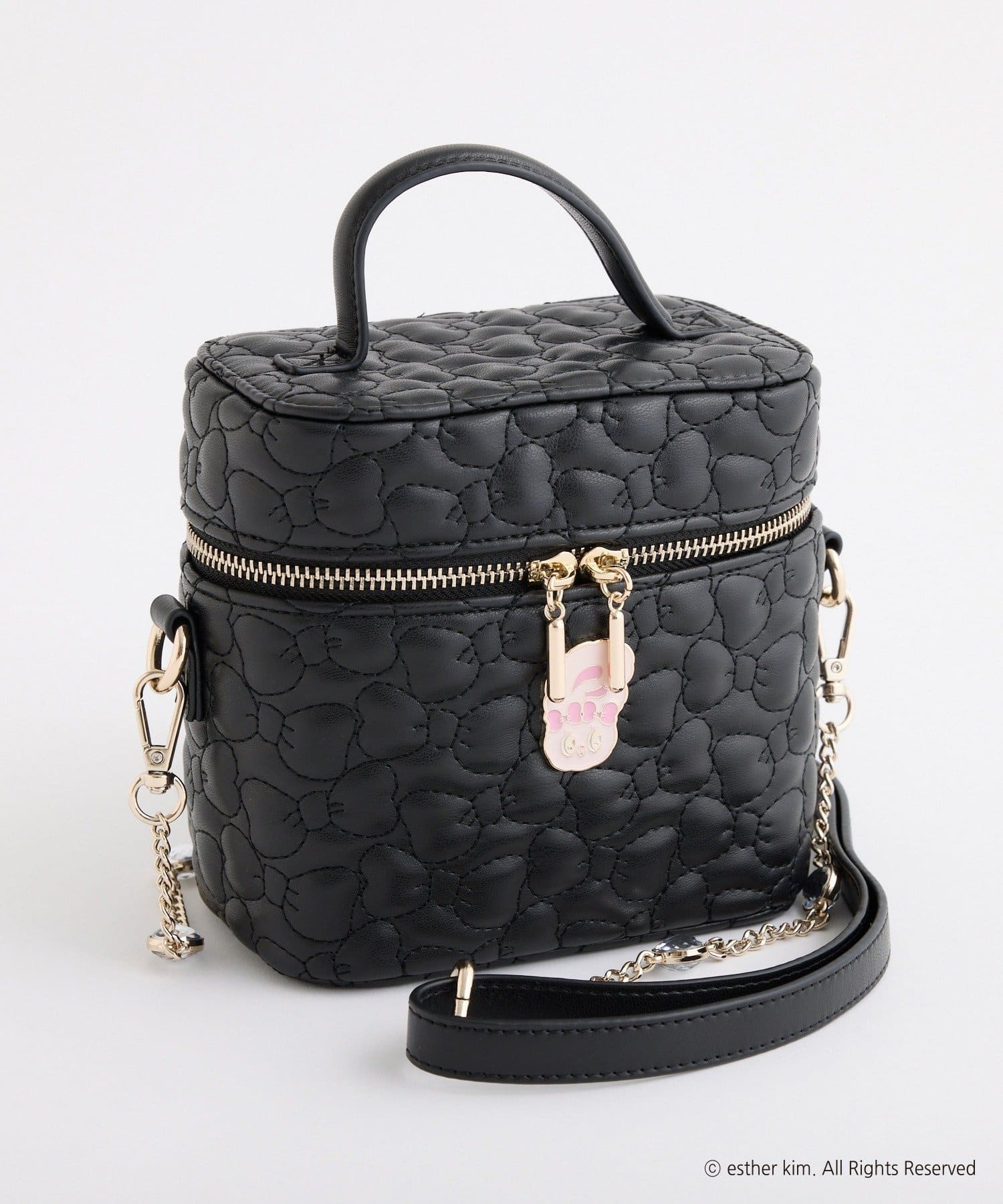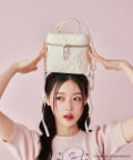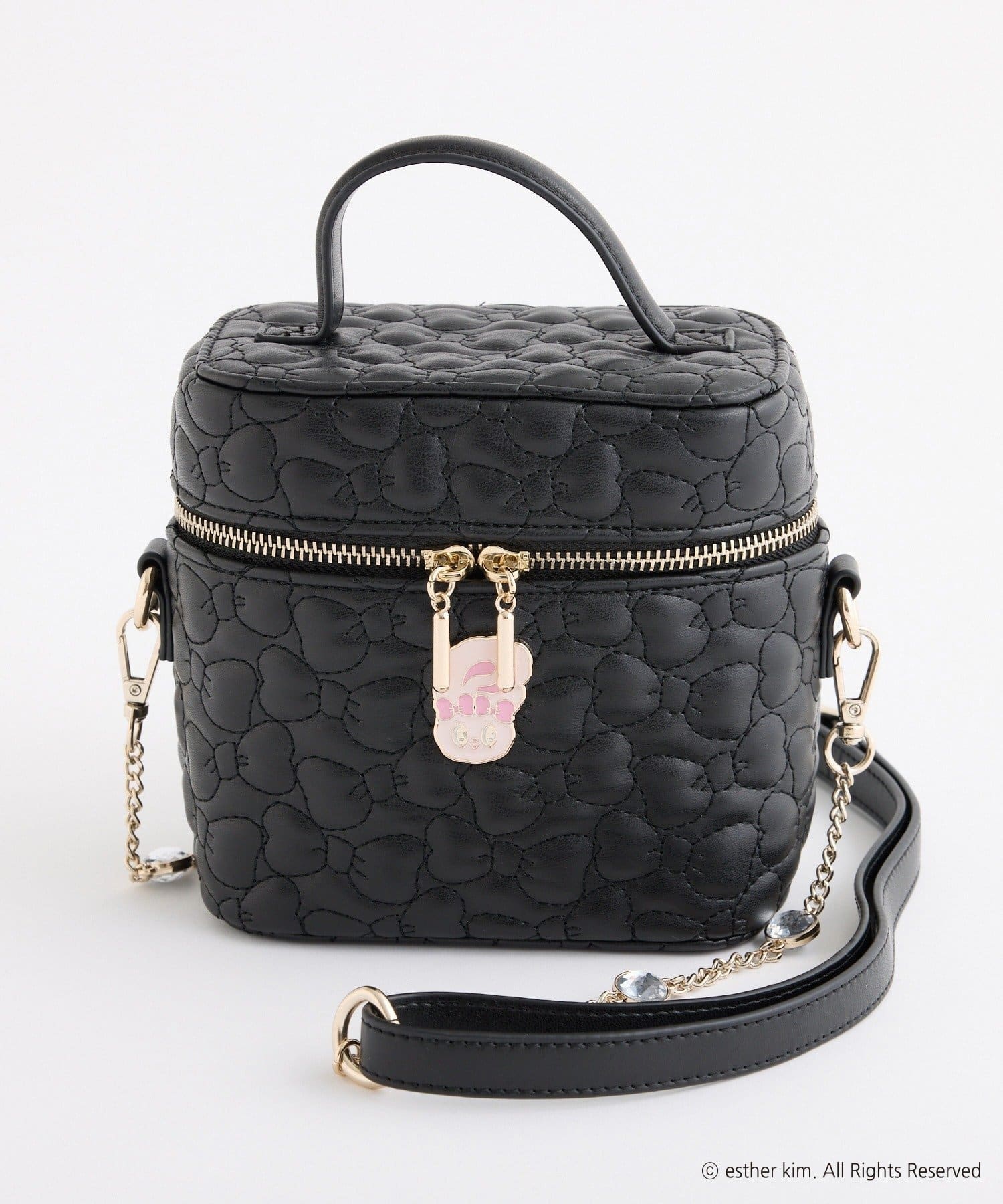 リボンバニーのエンブレム付きのリボンキルティングバニティバッグ