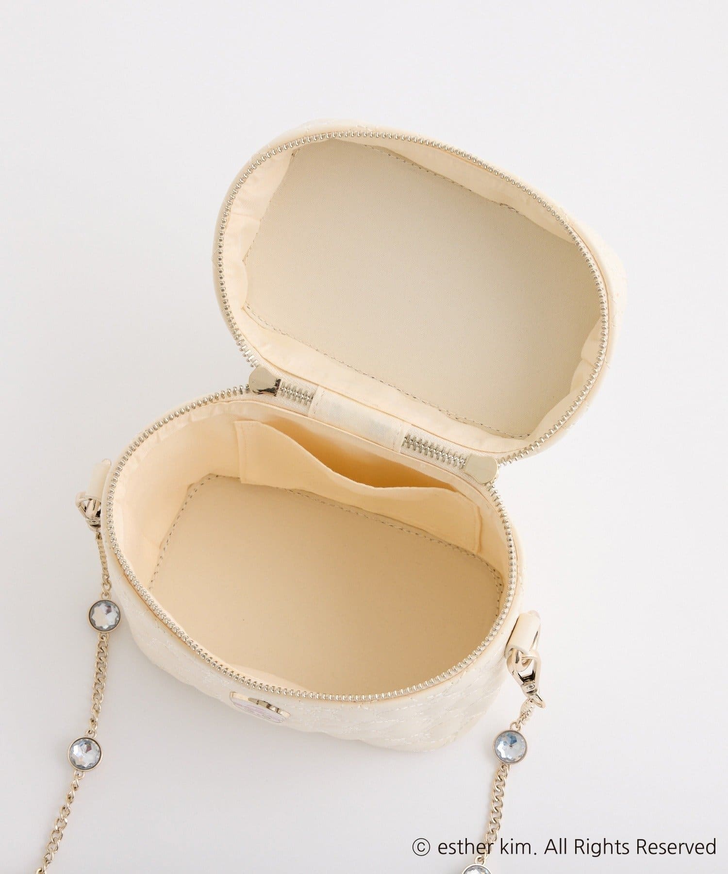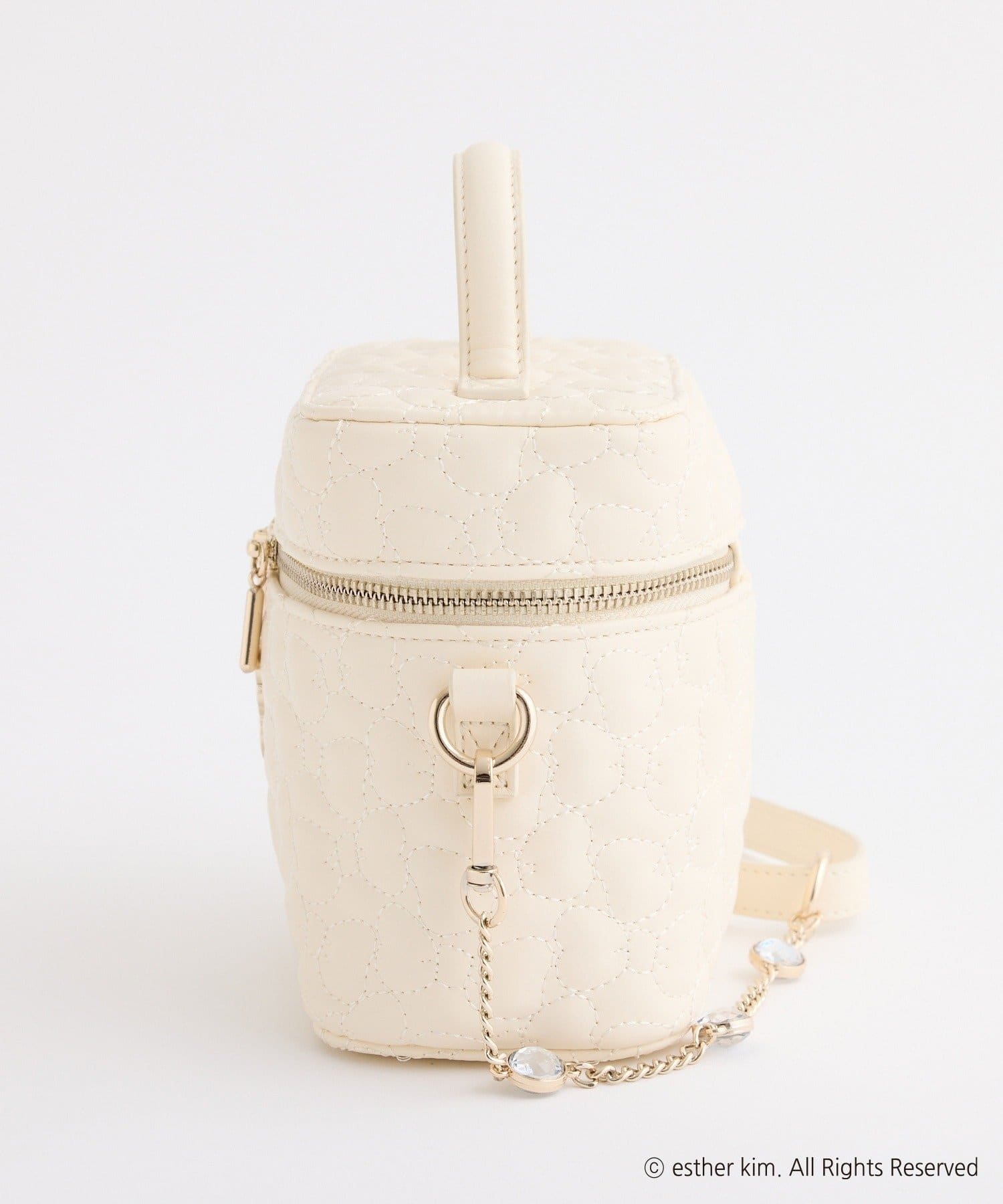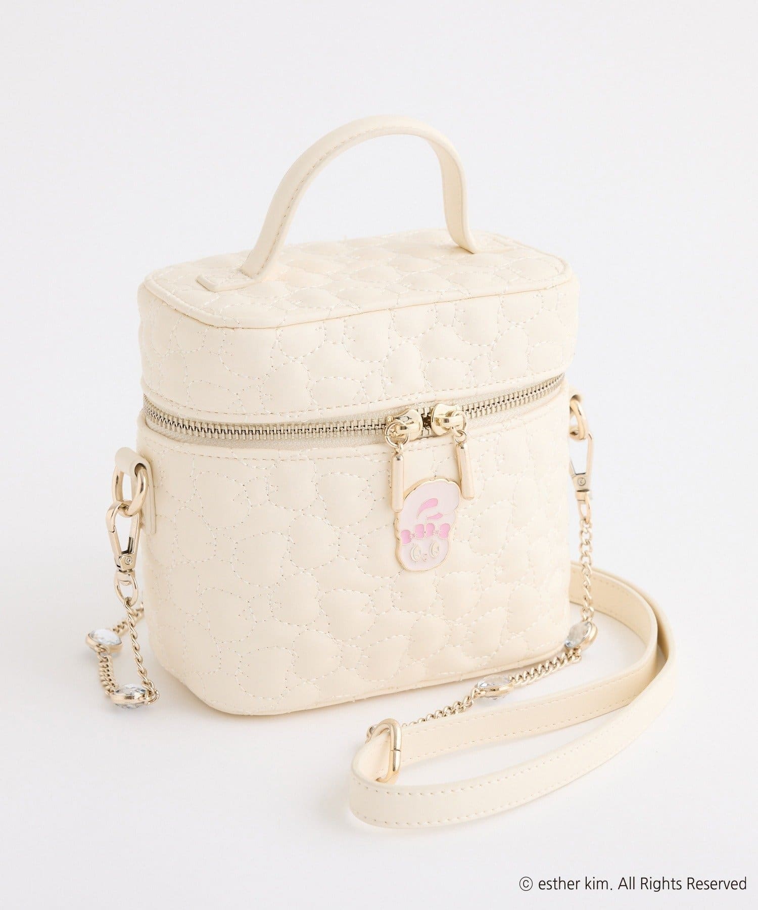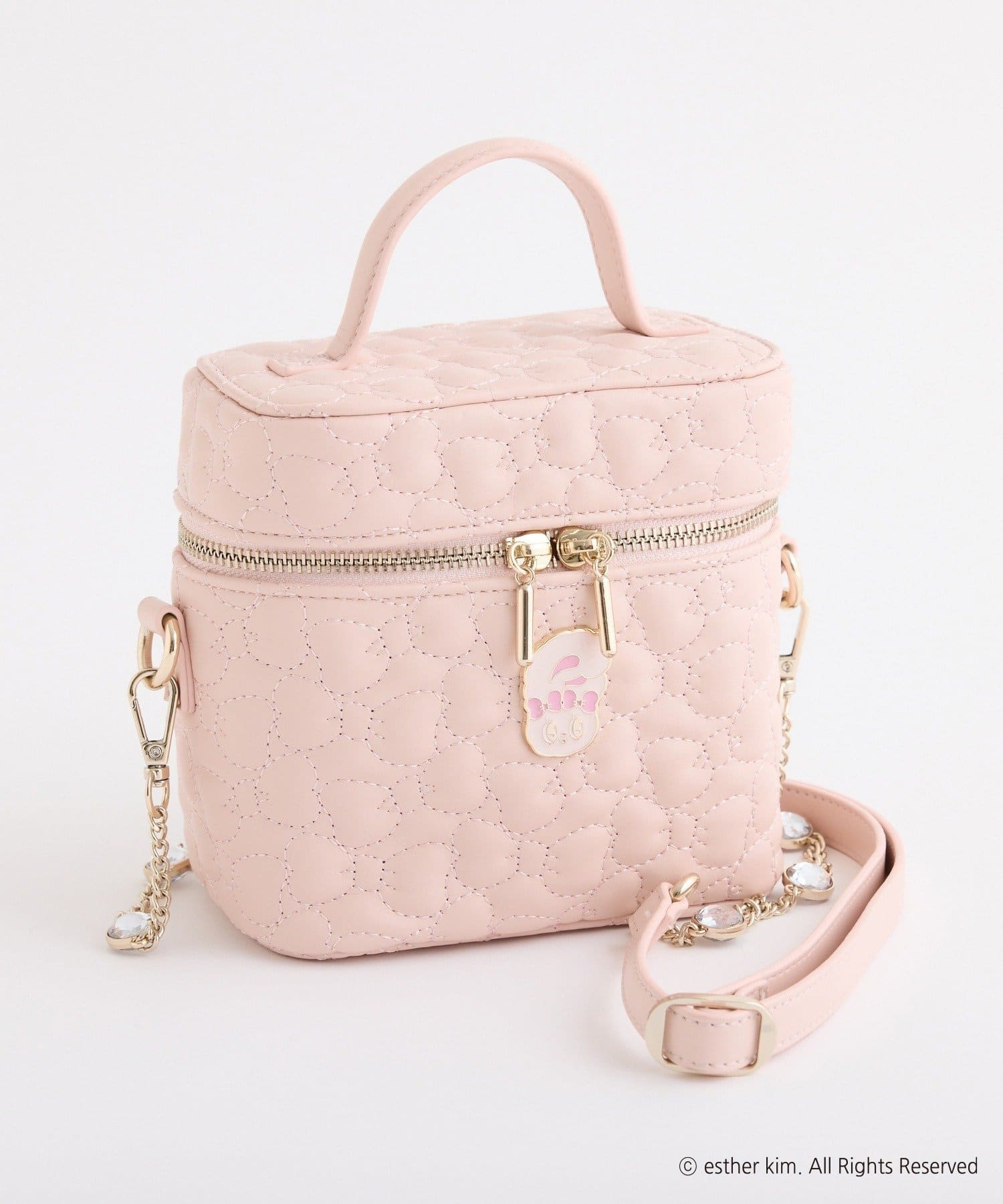 リボンバニーのエンブレム付きのリボンキルティングバニティバッグ